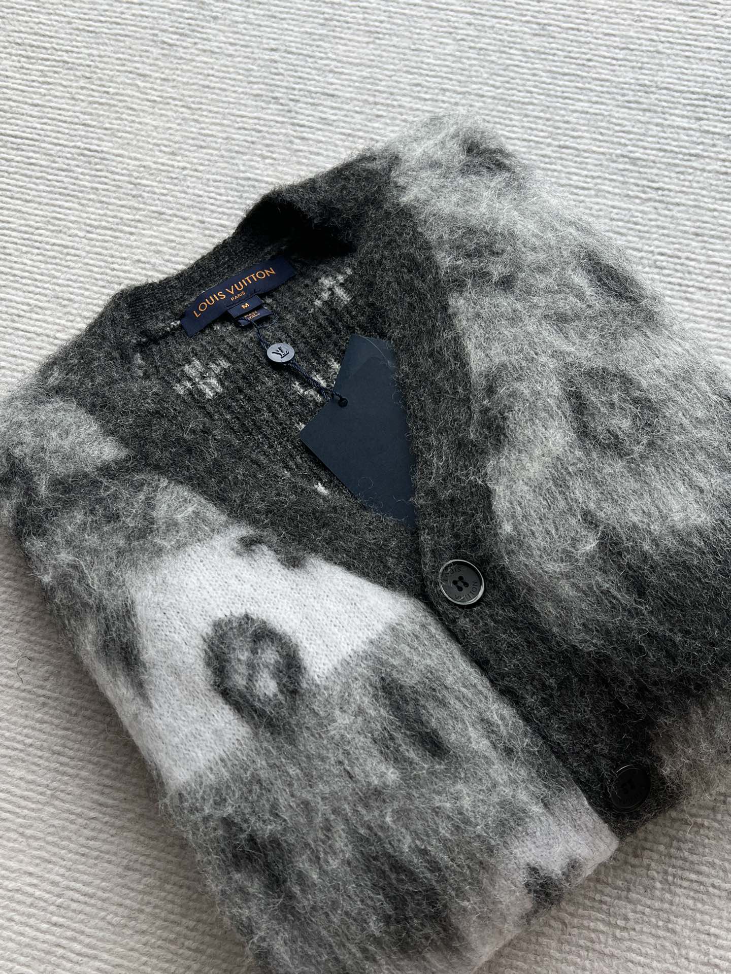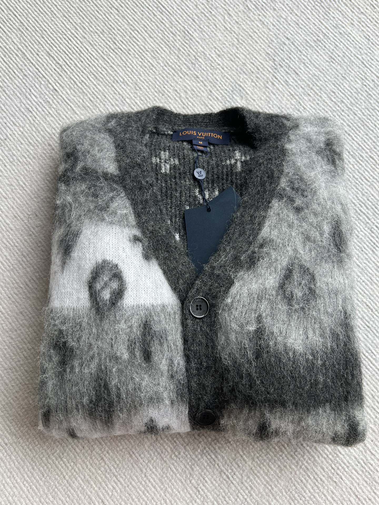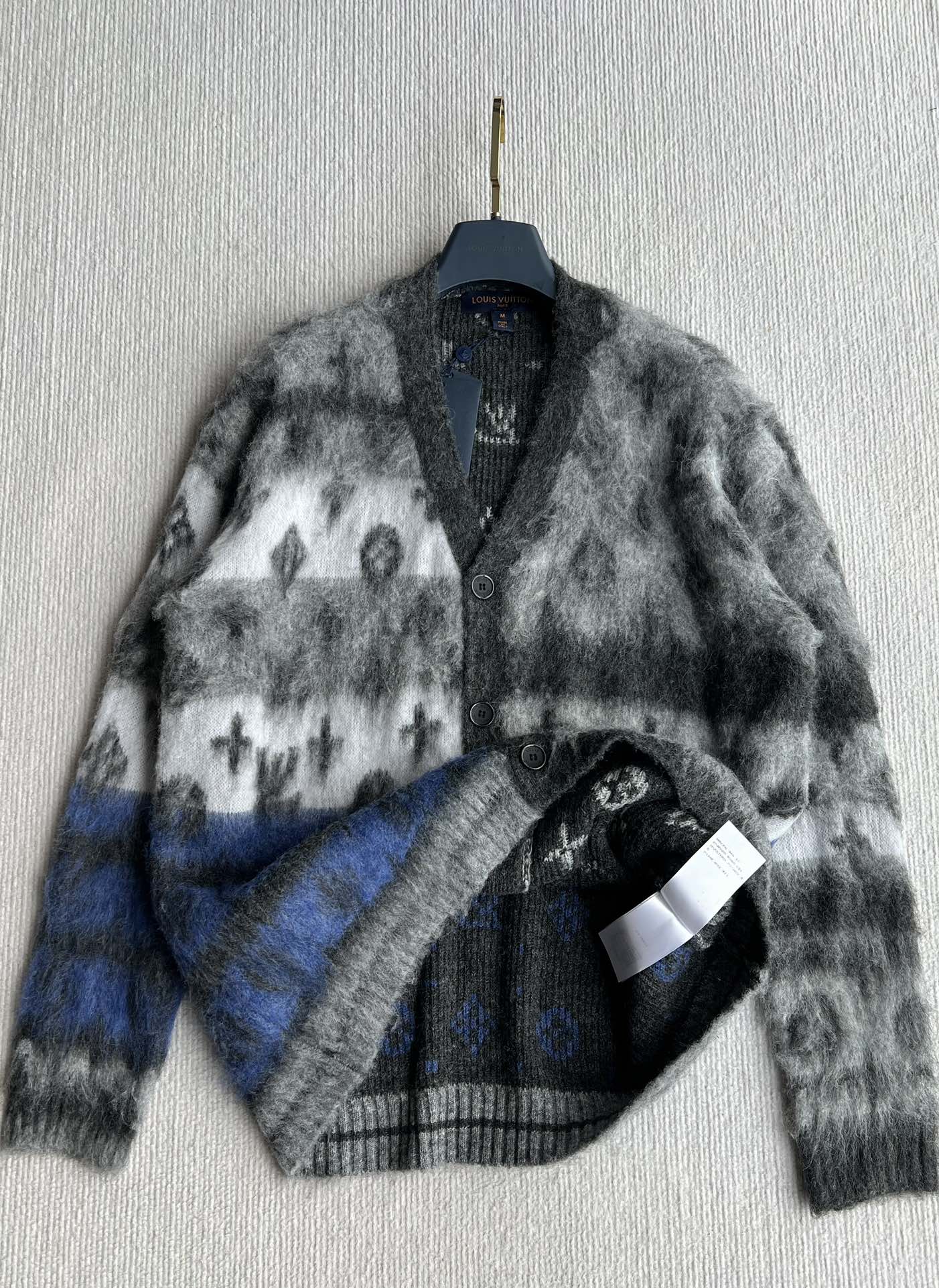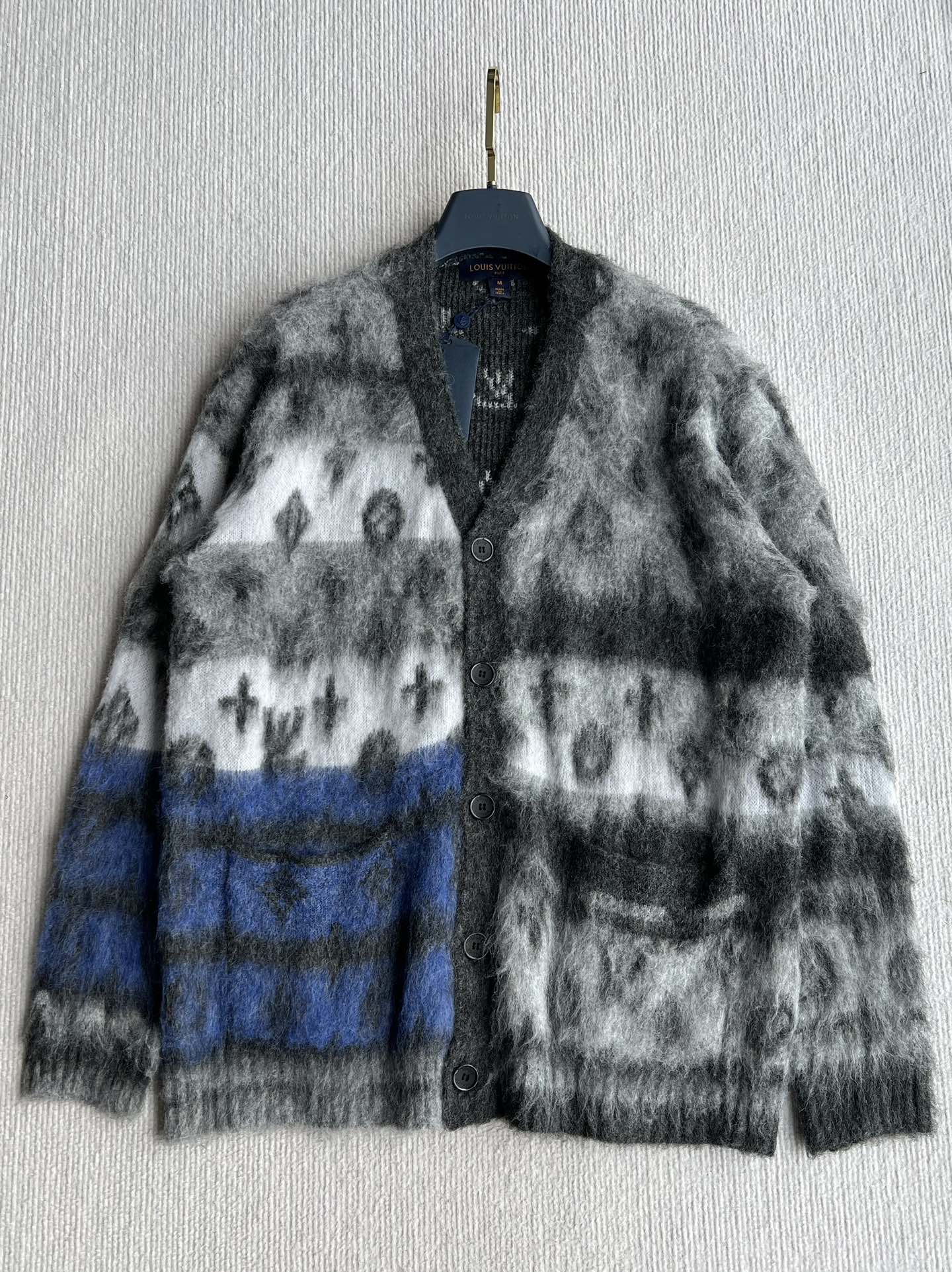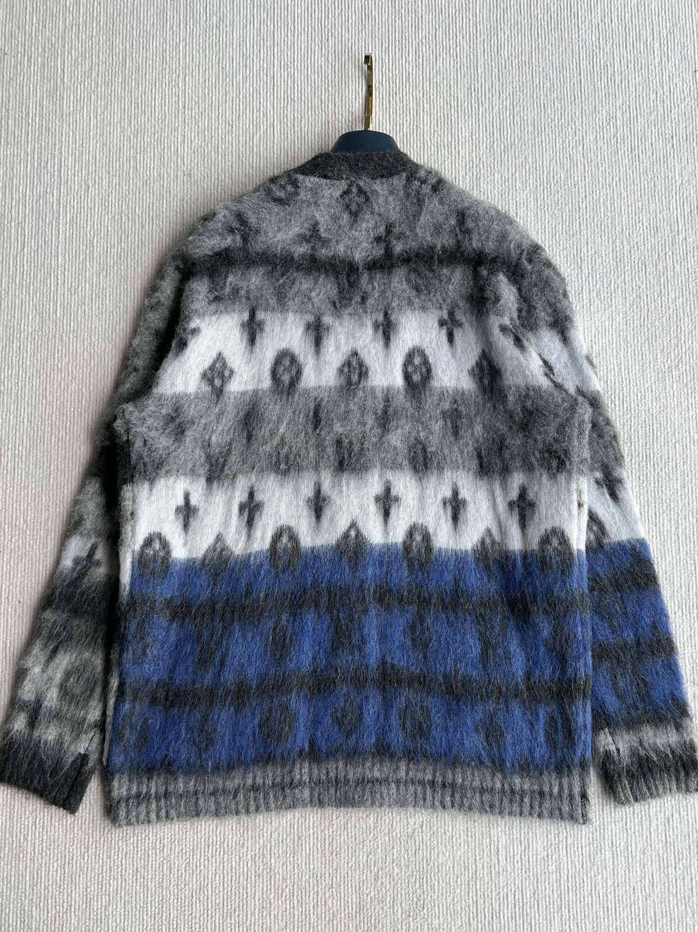 Donkey brand 25fw💙 Autumn and winter new series Gradient mohair cardigan jacket ~ Custom mohair and lambswool blend material The body features gradient colors and monogram patterns Loose fit, suitable for couples Custom pockets Classic style that suits everyone ✌️ SML ✈️ M Bust 110 Length 66 Shoulder 46