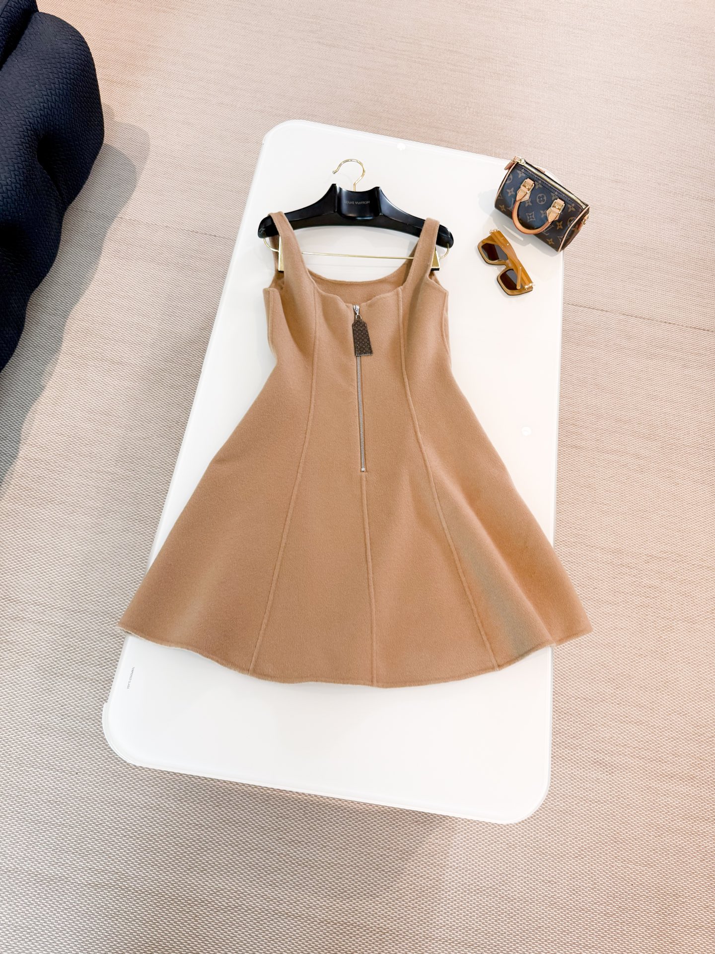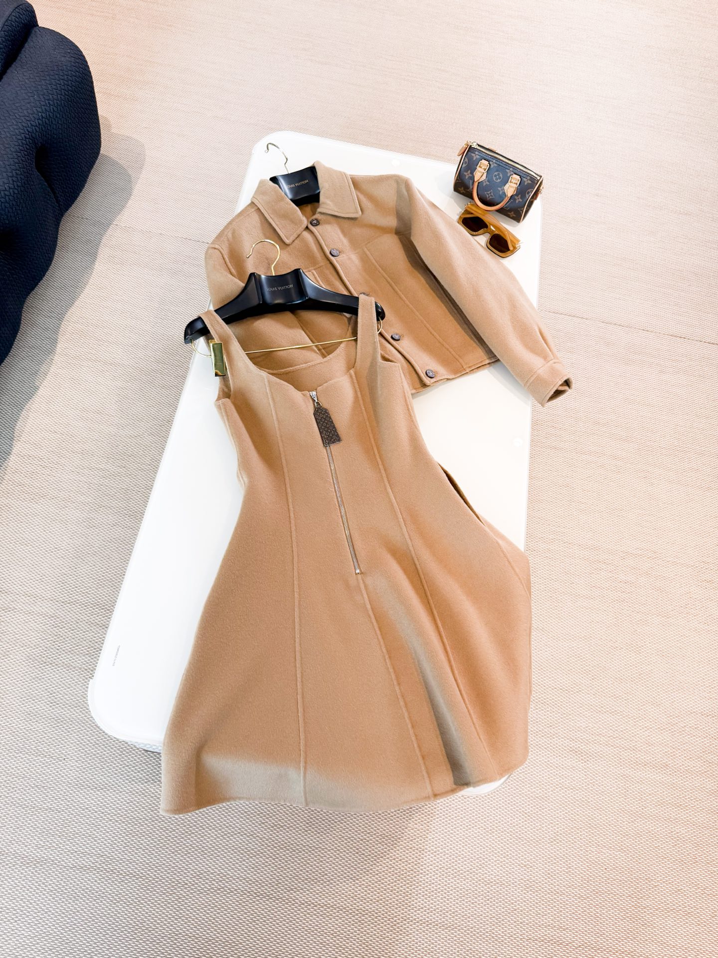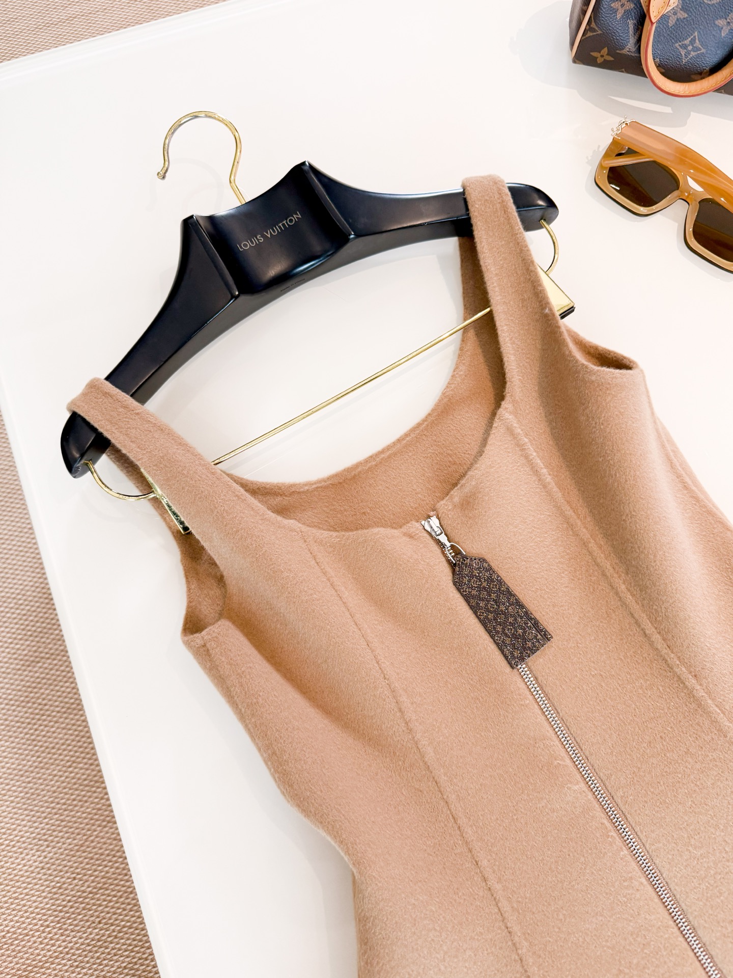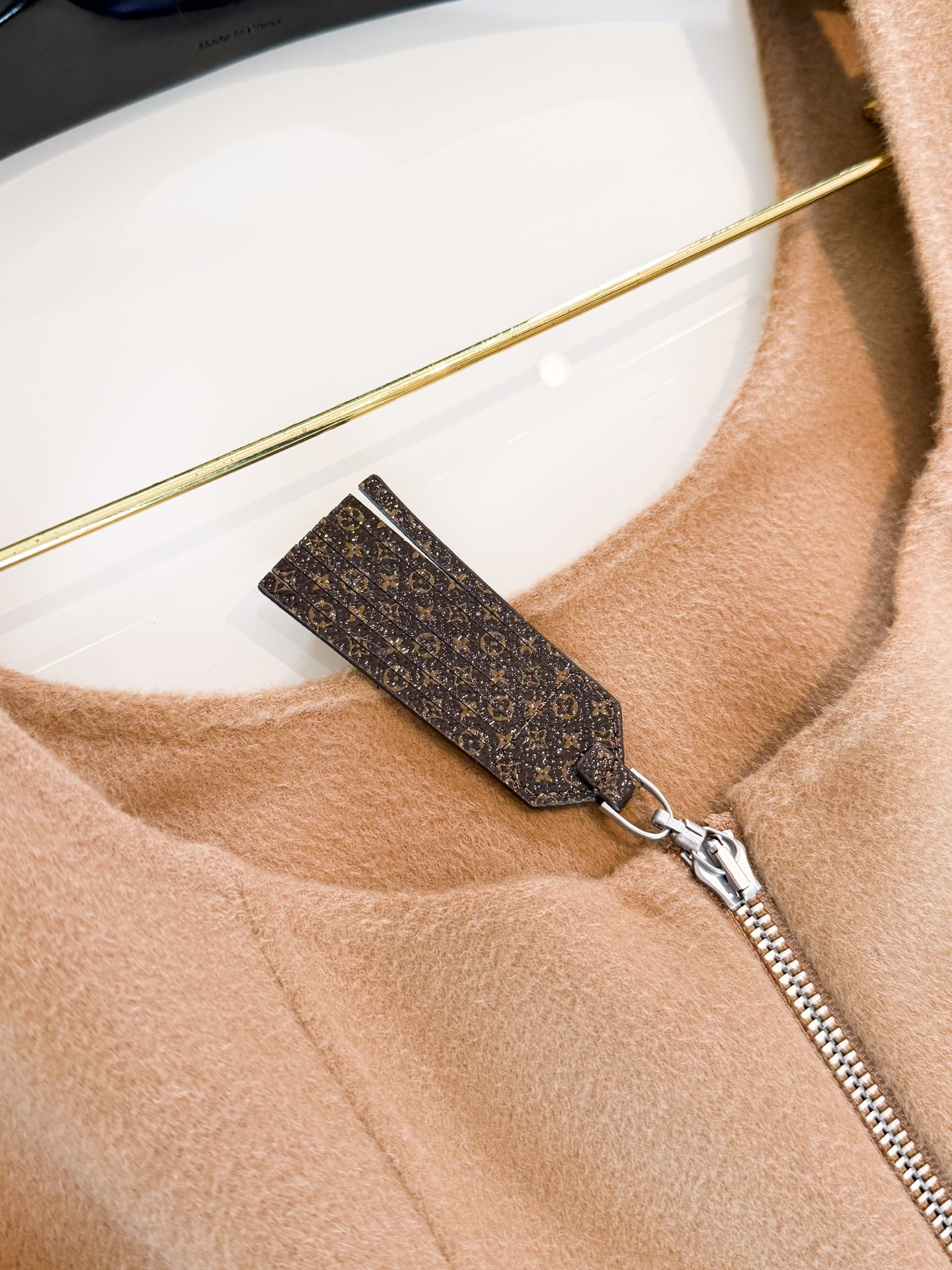 YB material with a delicate and smooth wool-like feel, vertical metal zipper accents the monogram zipper. Paired with a matching jacket, effortlessly achieving a high-end style for daily leisure. Top quality release.