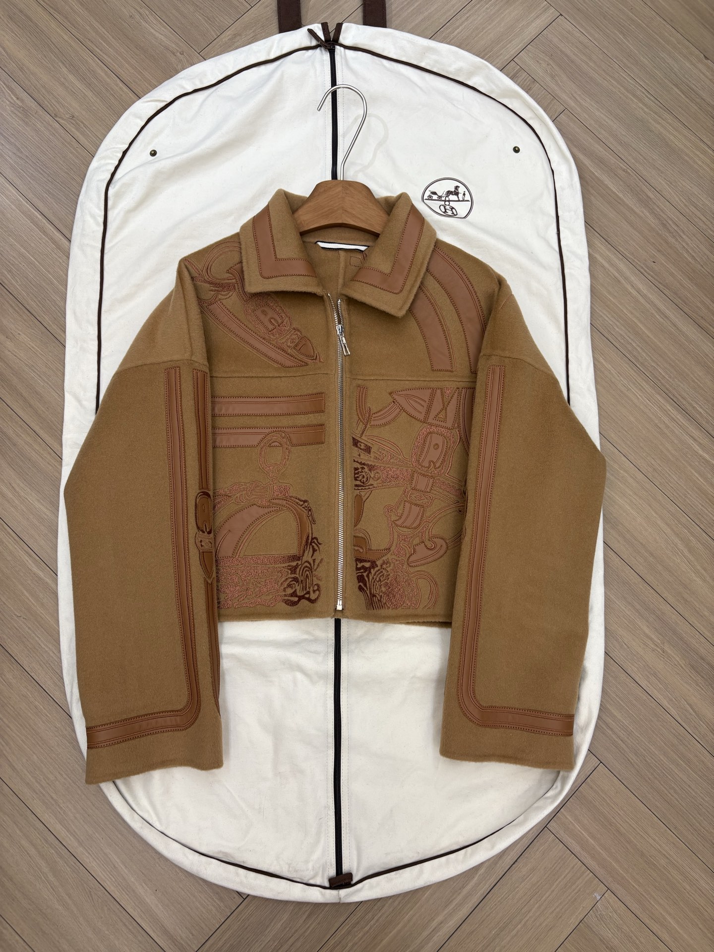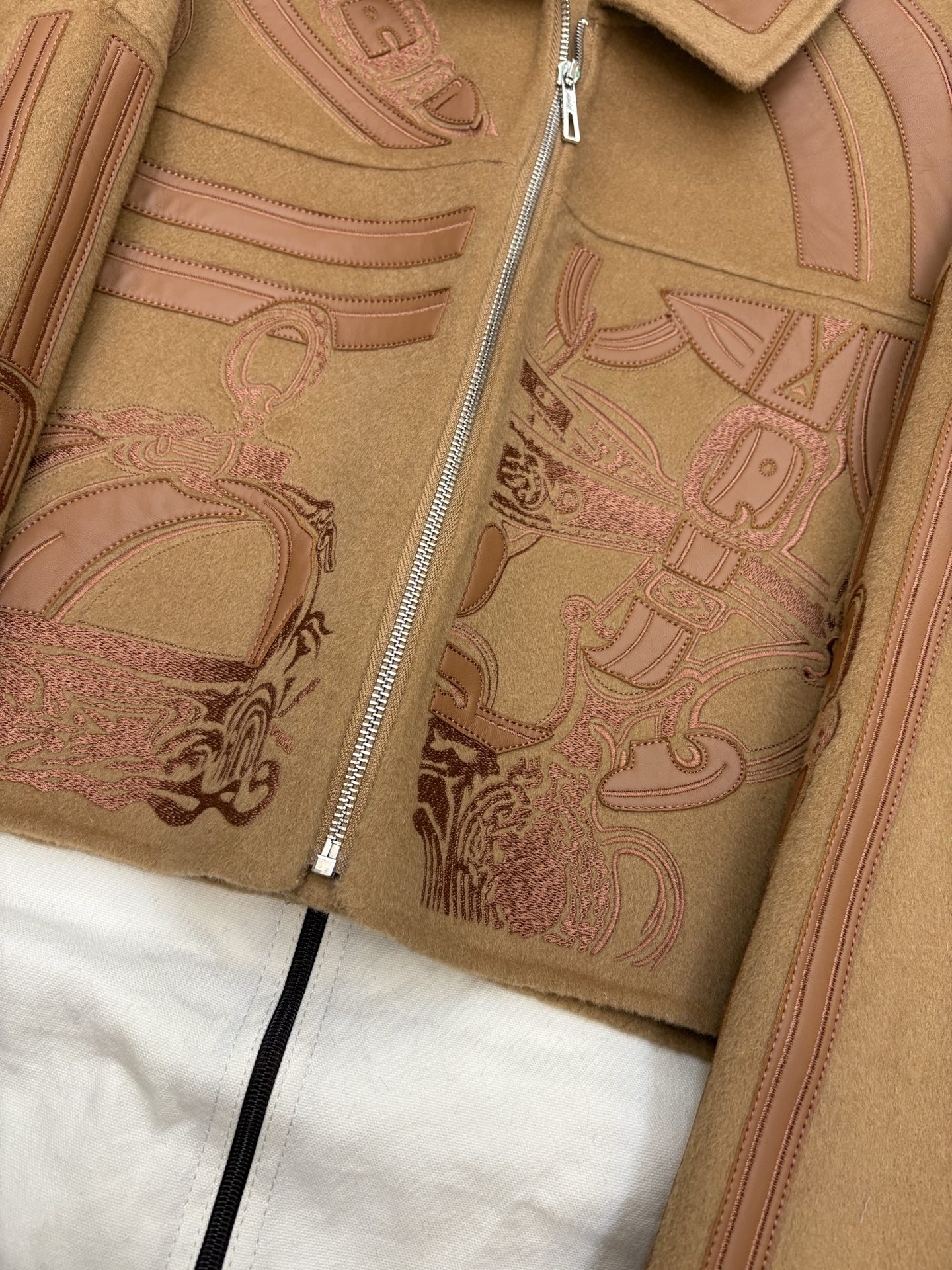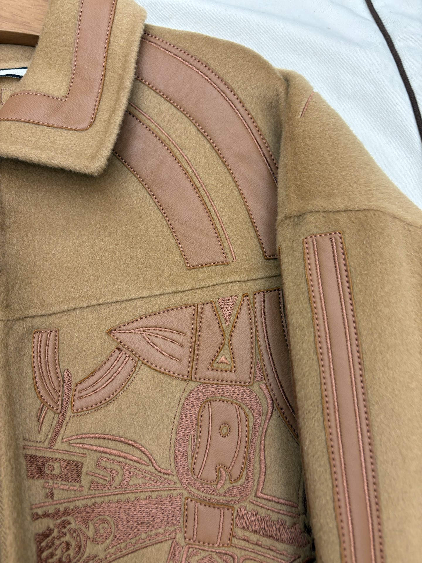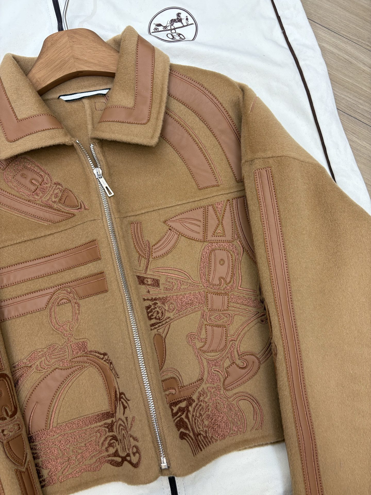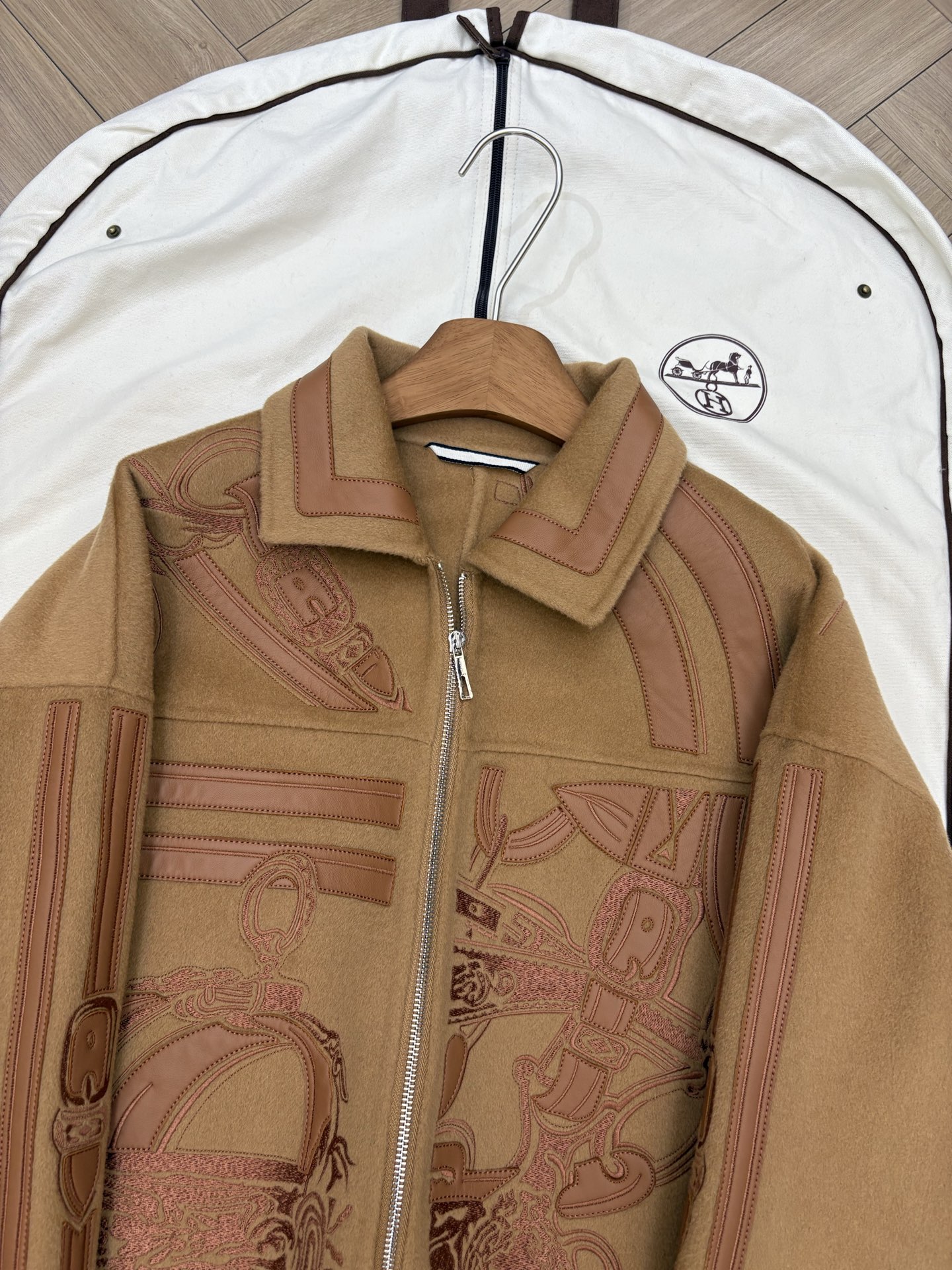 Heavyweight arrival H family autumn winter cashmere coat embroidered cashmere mixed with genuine leather jacket full of detail texture sizes 36 38 40