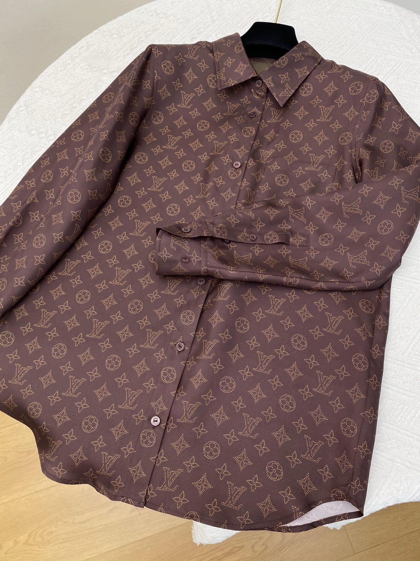 LV 25 Autumn Winter New Classic Monogram Silk Shirt SMLXL