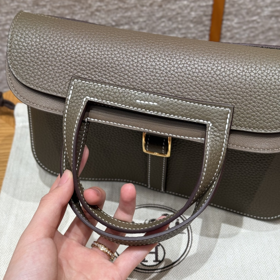 22cm horseshoe bag, elephant gray, imported original French cowhide, gold clasp, high-end fully handcrafted exclusive customization.