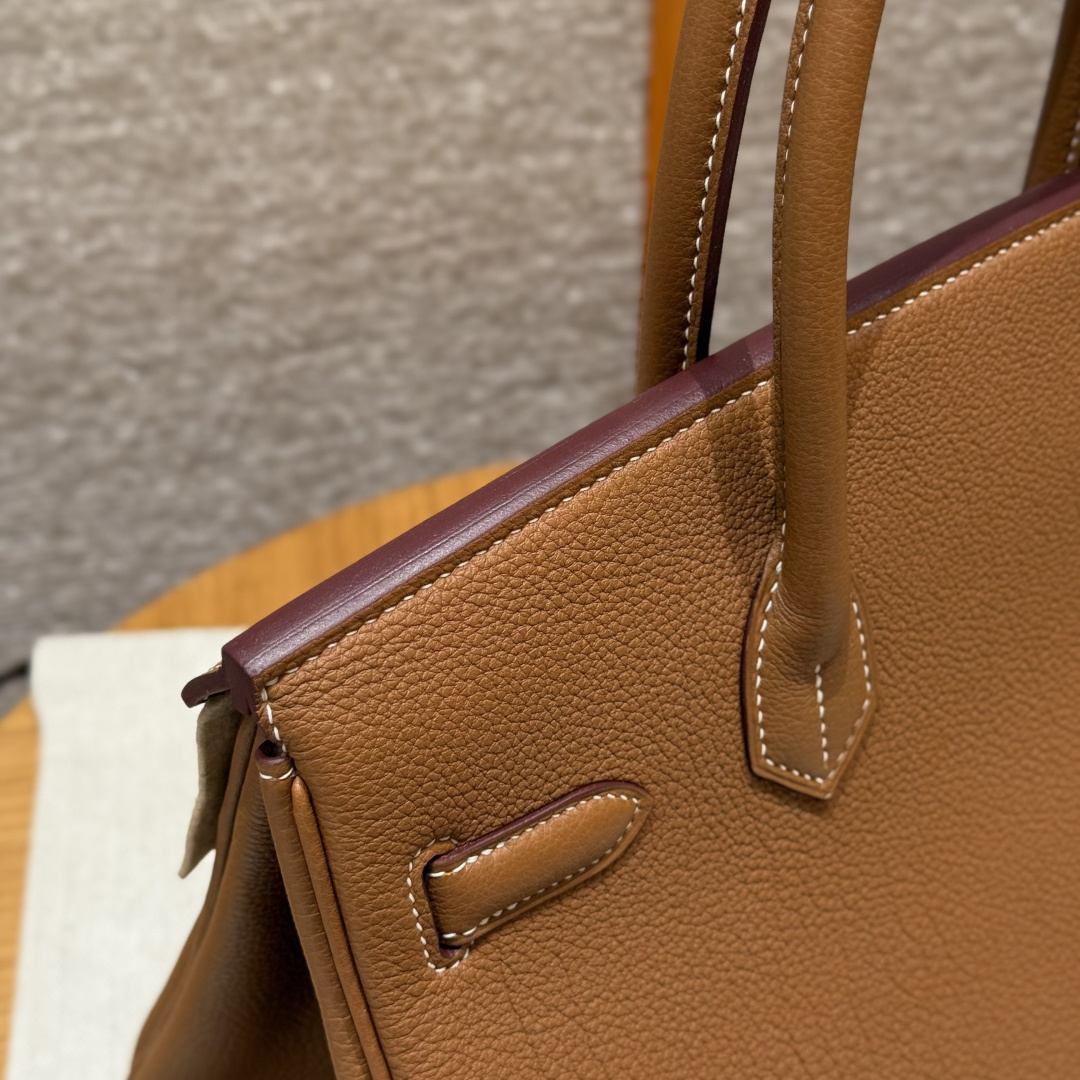 Birkin 30cm, golden brown, Togo leather - cow neck grain, original French imported cowhide, gold hardware, premium fully handcrafted exclusive custom.