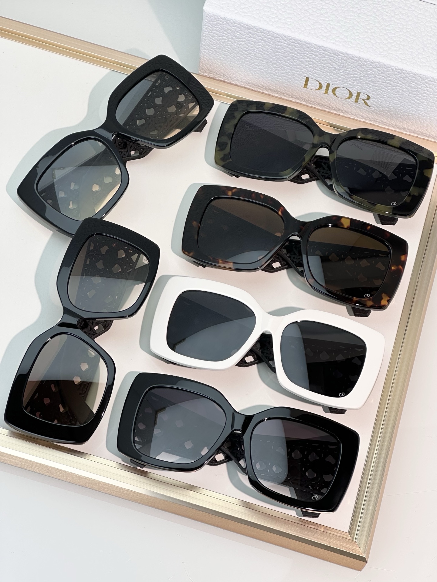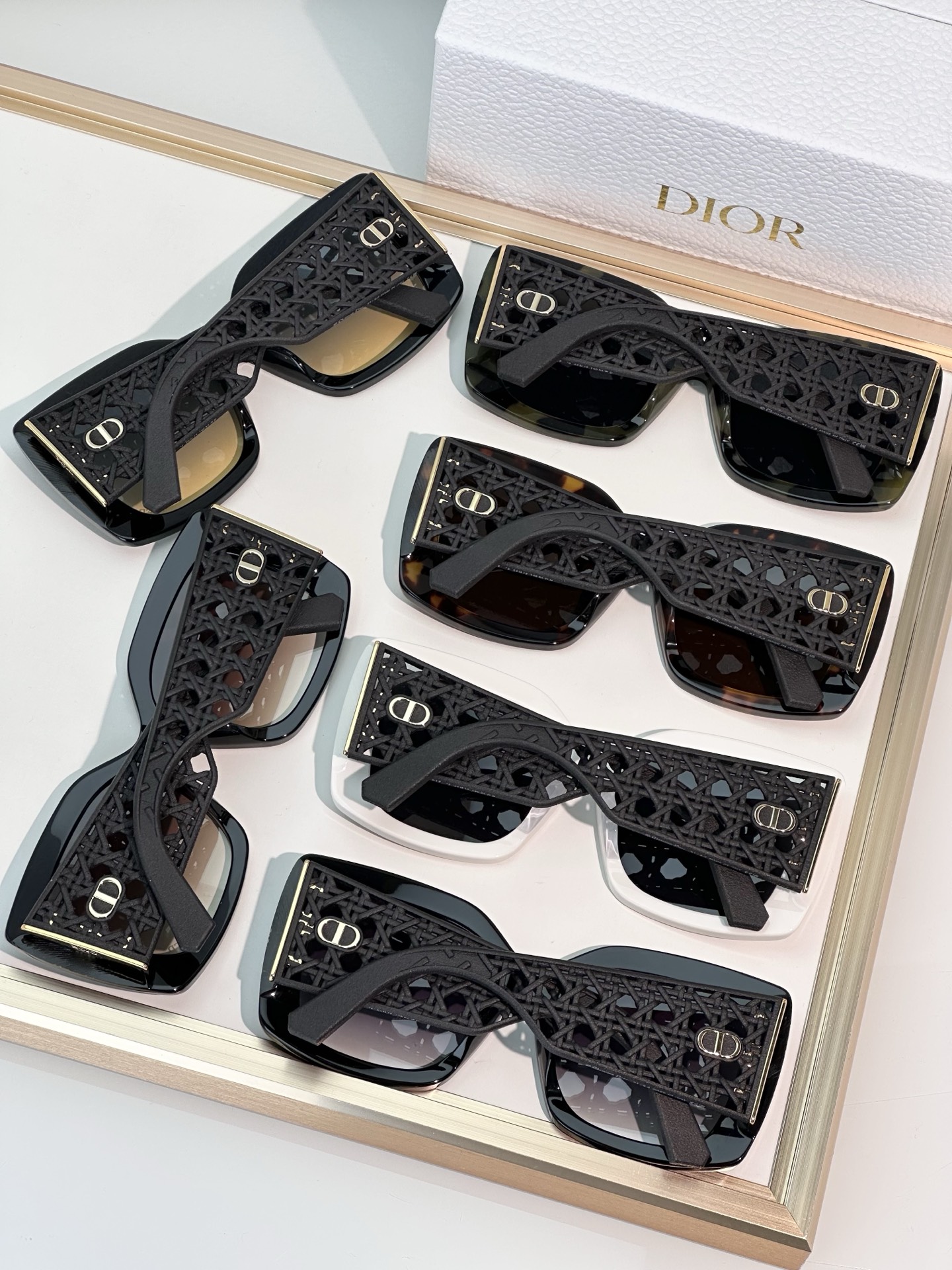 Features a metal Dior logo on the temple