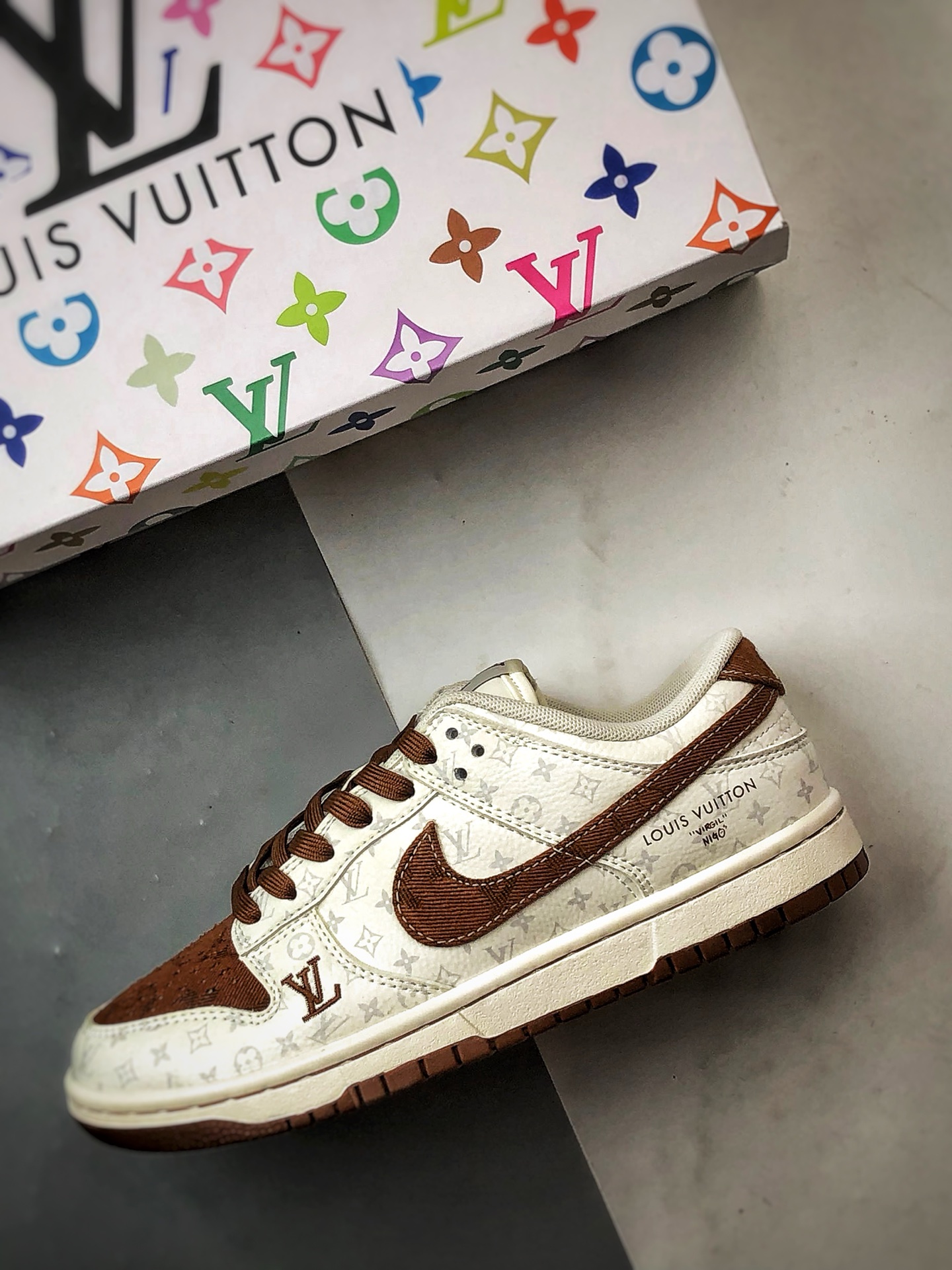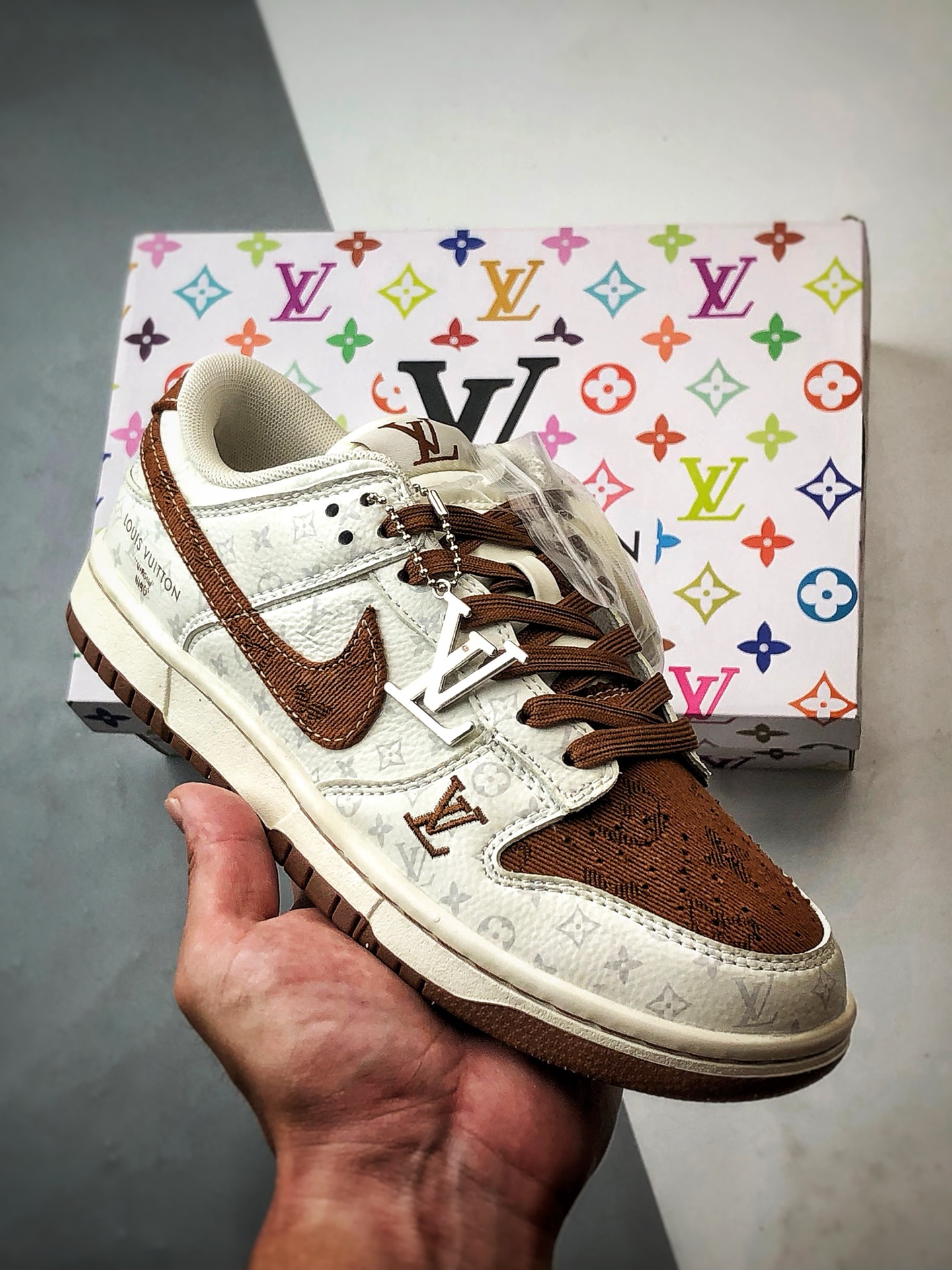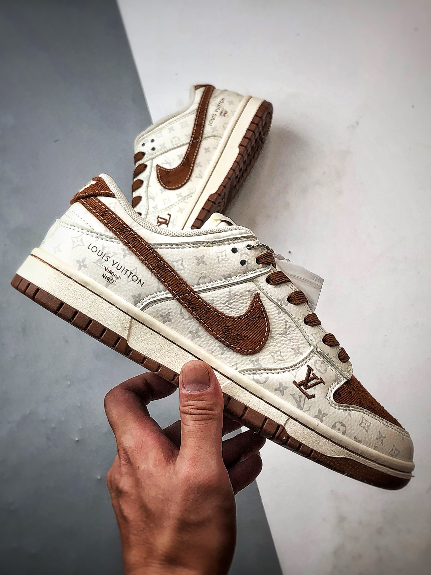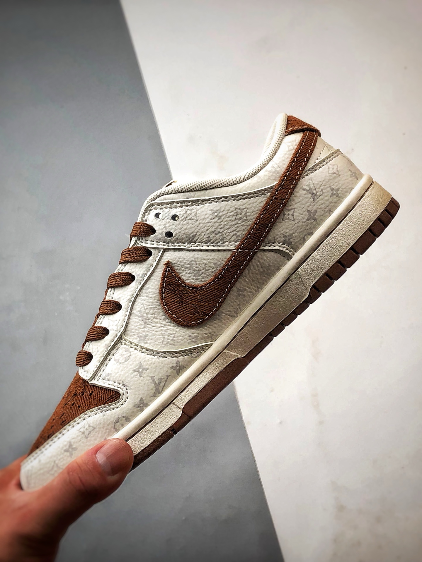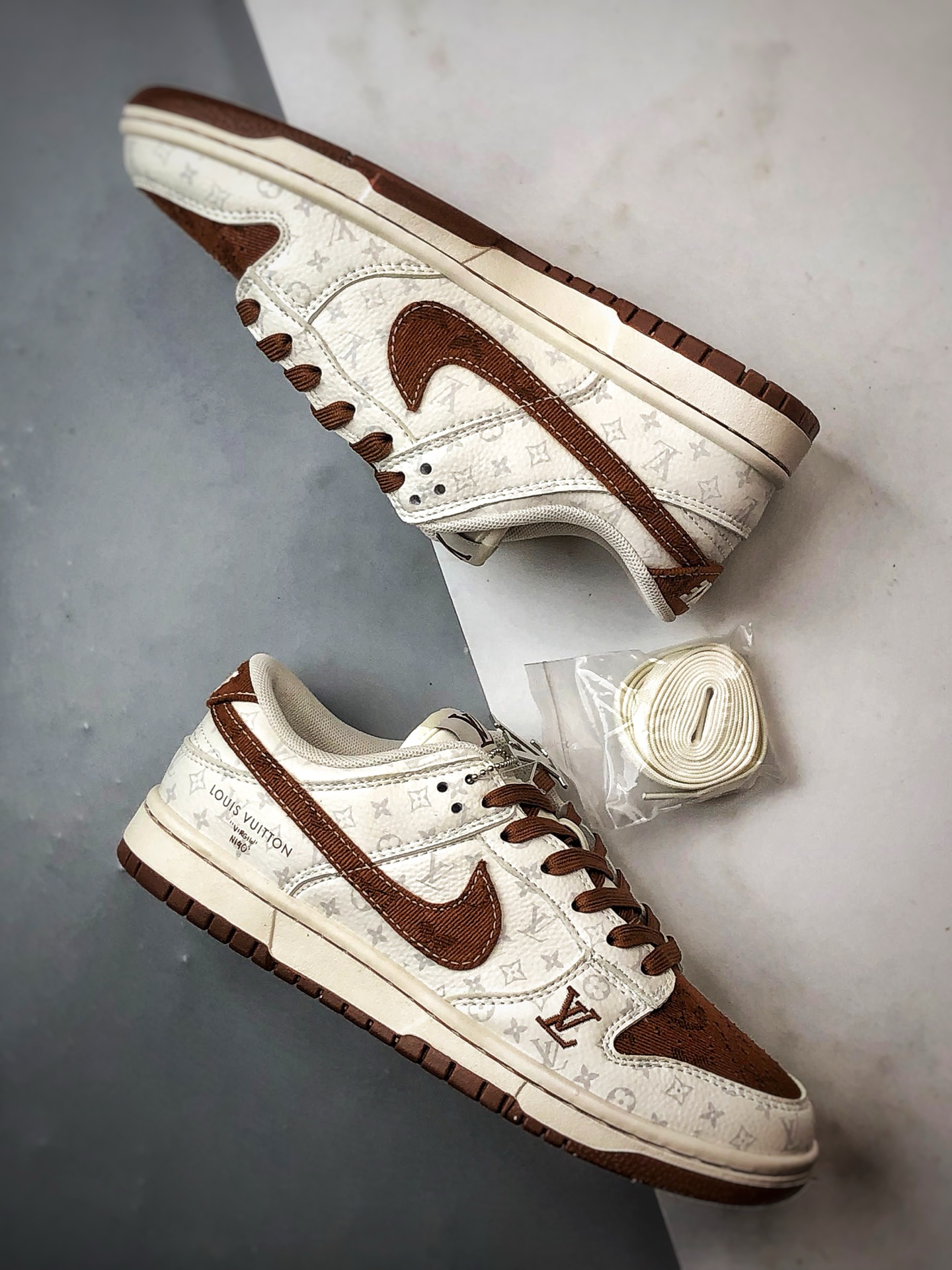 LV Print Beige Brown Low-Top Casual Sports Sneakers