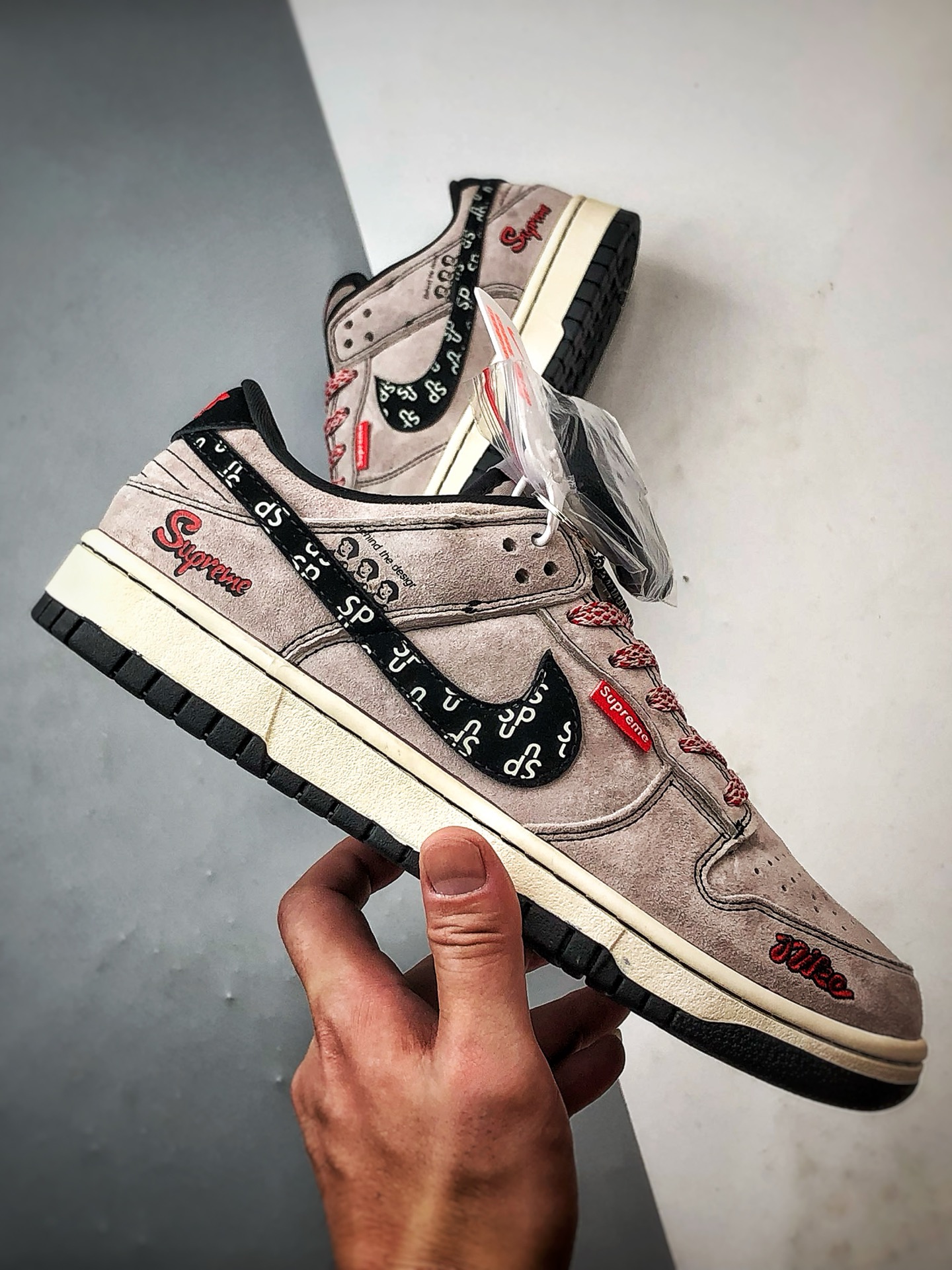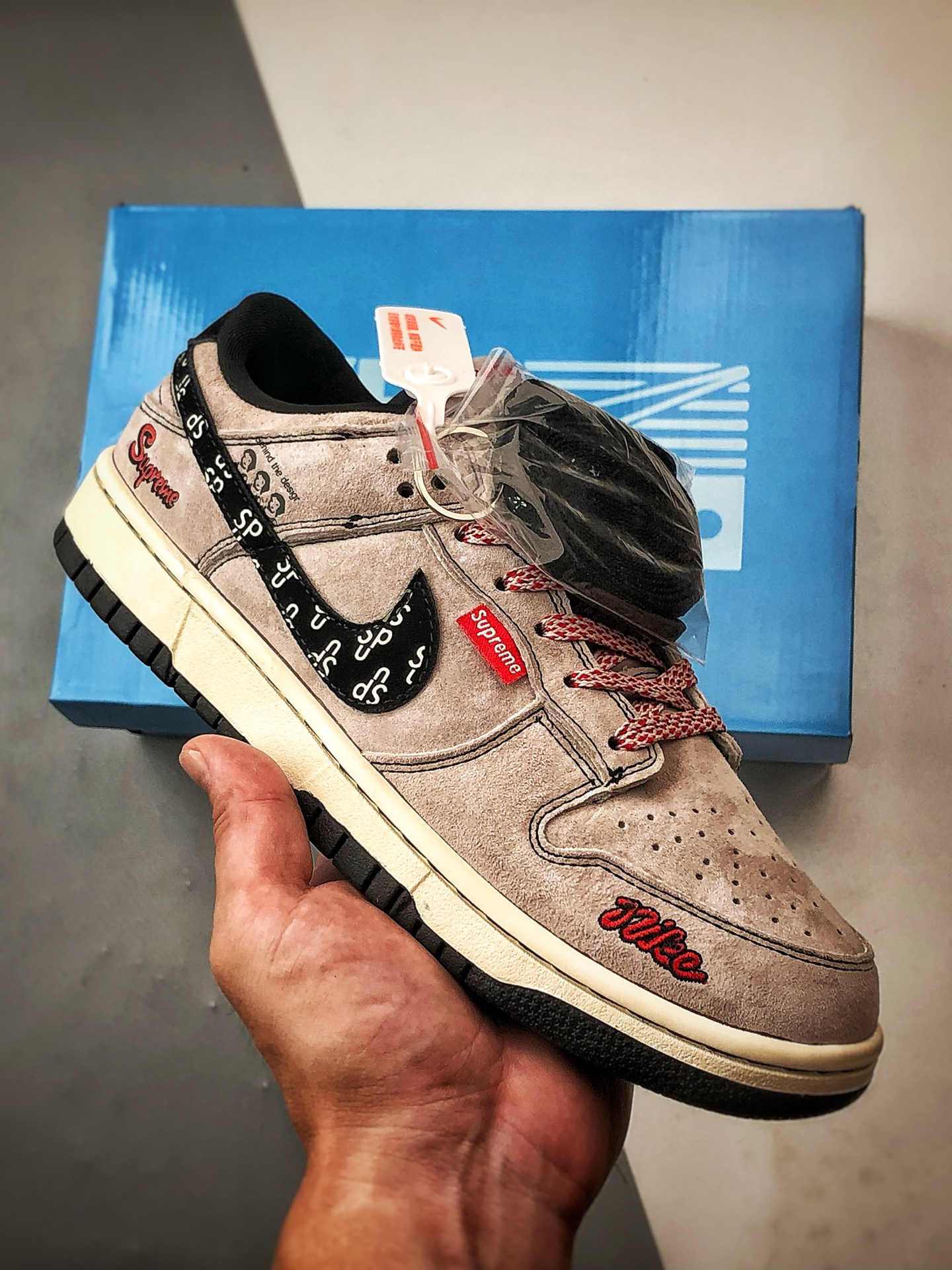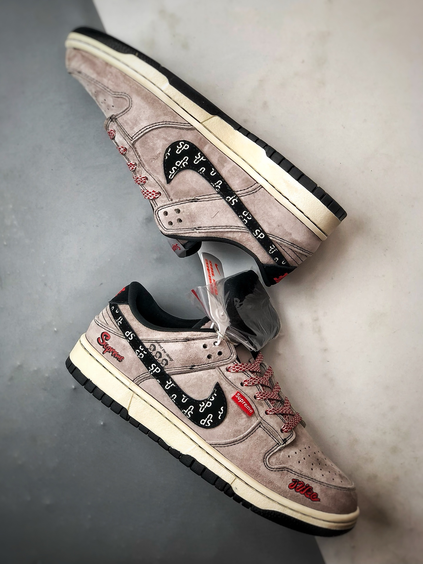 Sup Pig Eight Gray Red Black Hook Print Low-Top Casual Sports Sneakers