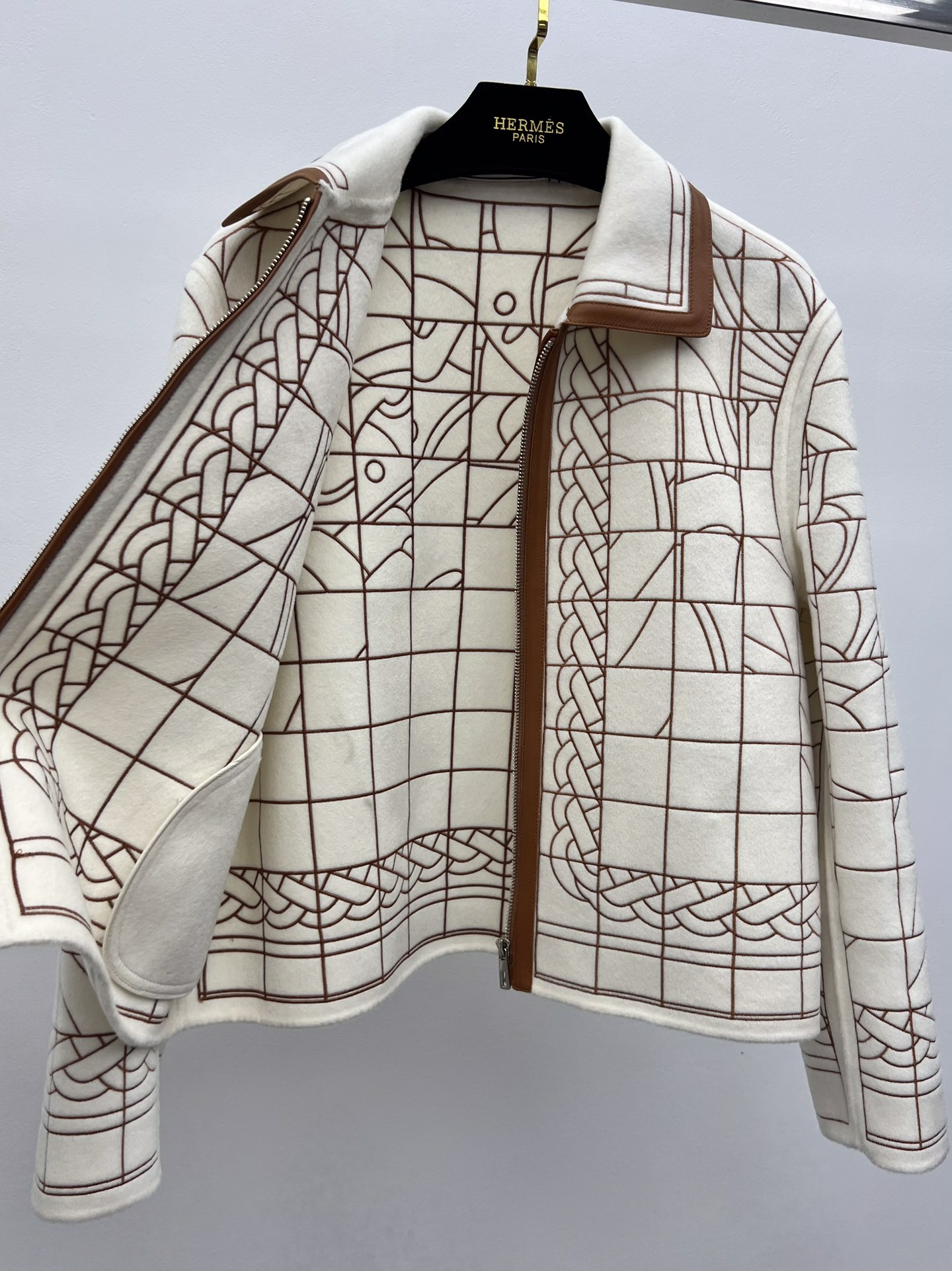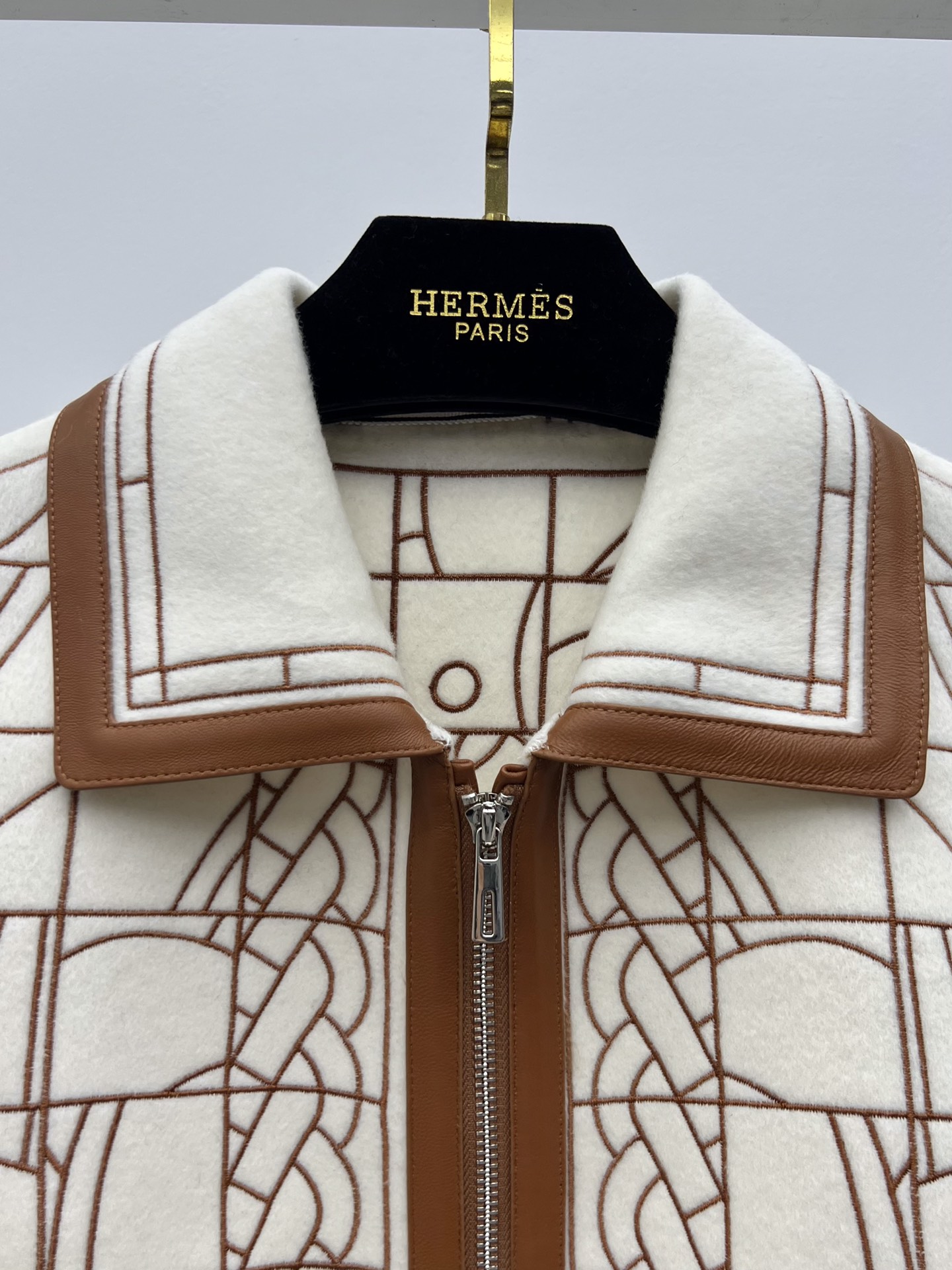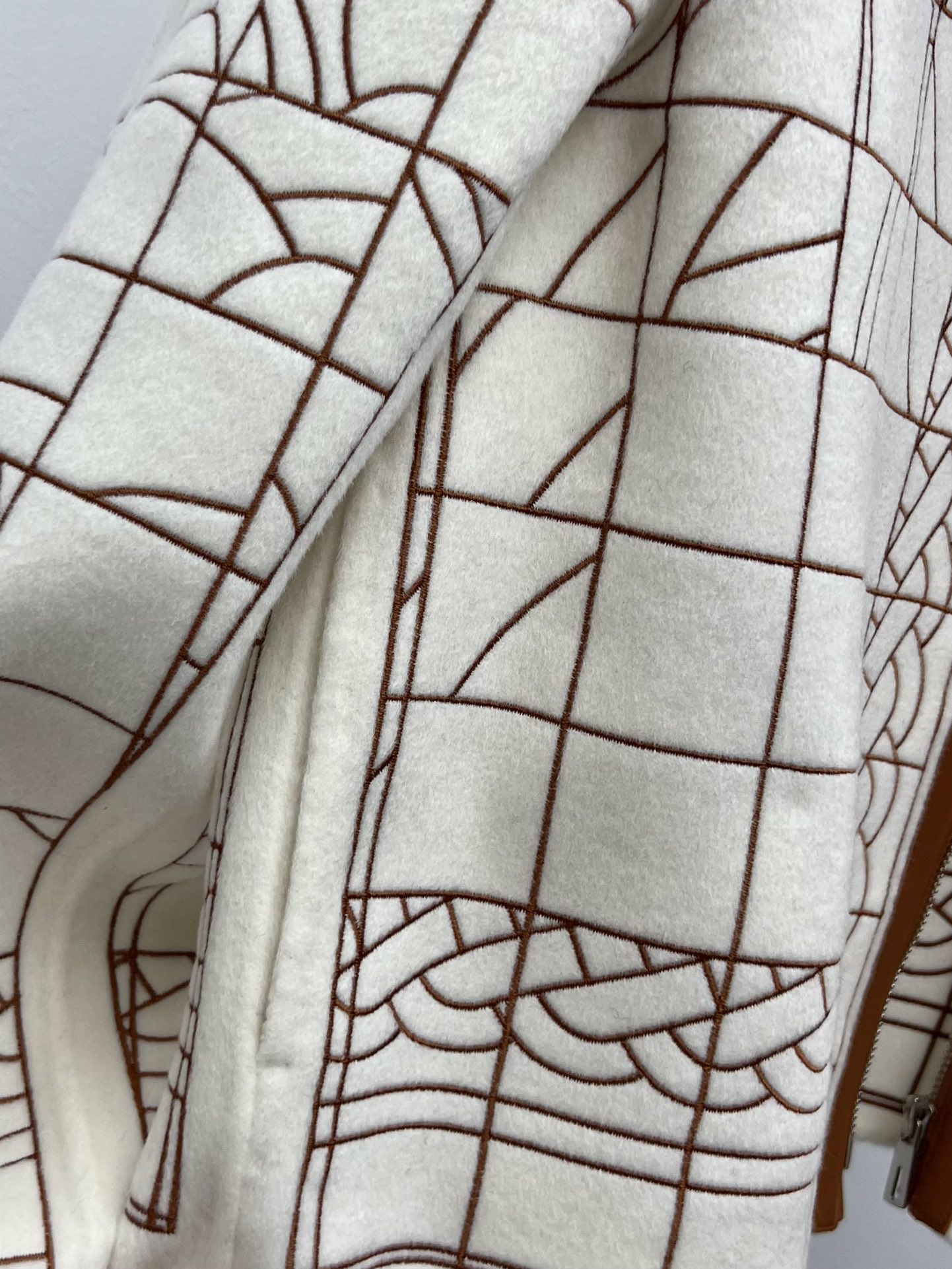 Herme* leather patchwork embroidered cashmere coat