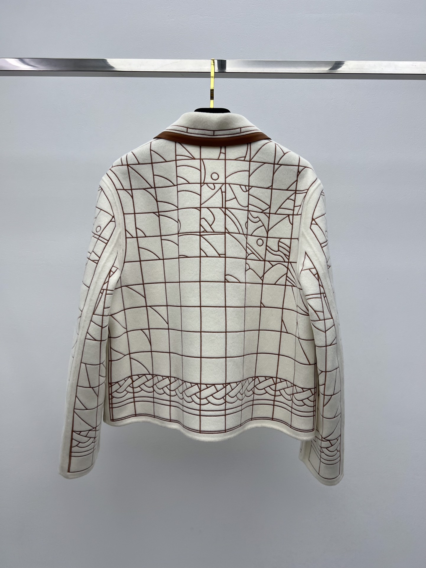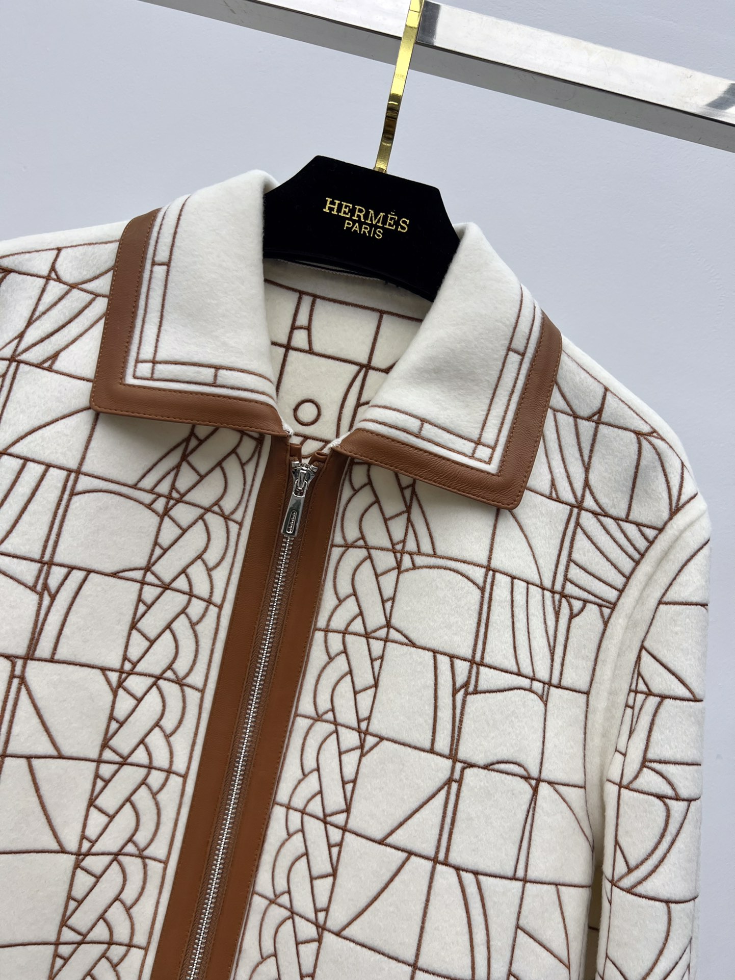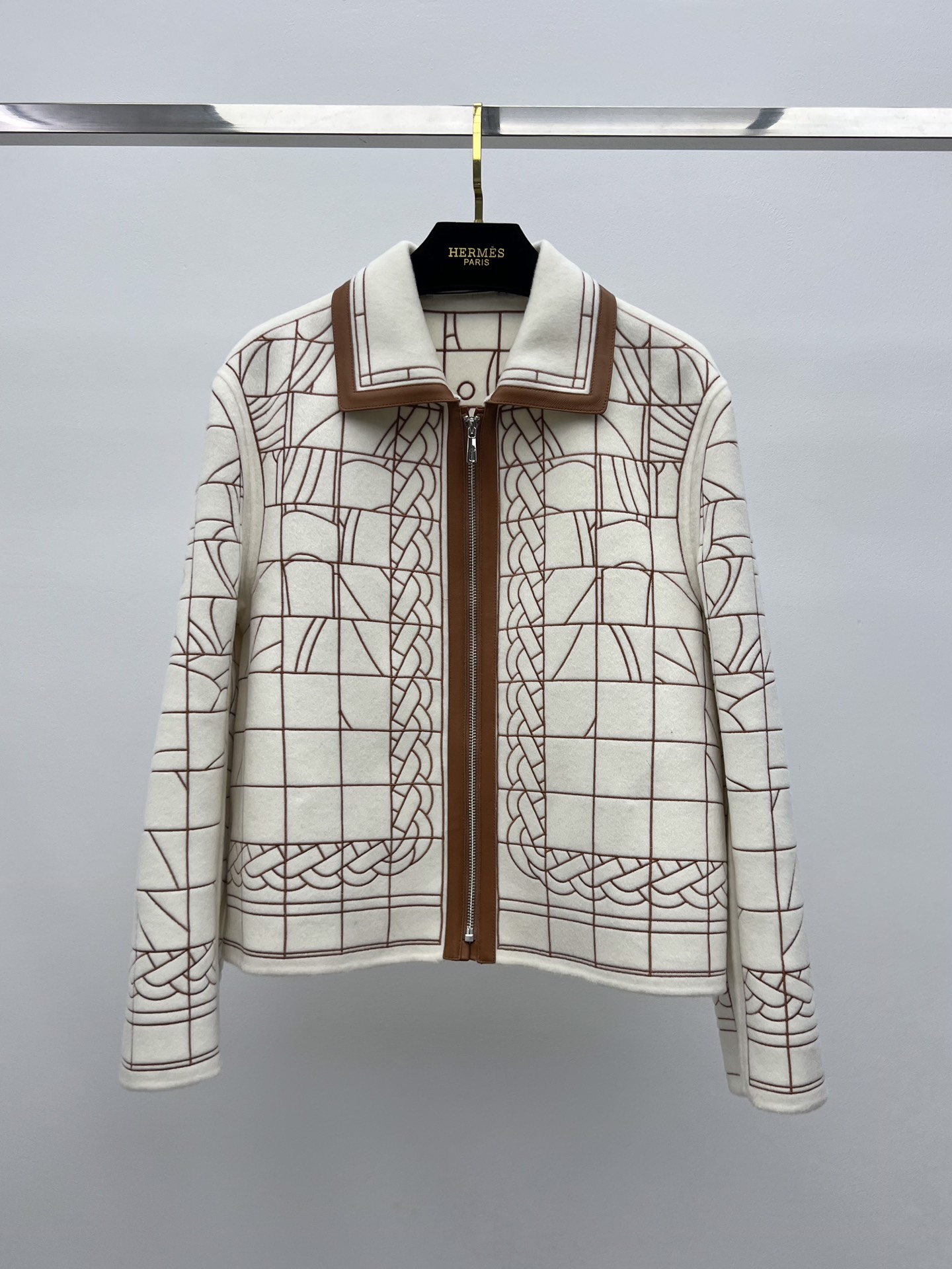 Herme* leather patchwork embroidered cashmere coat