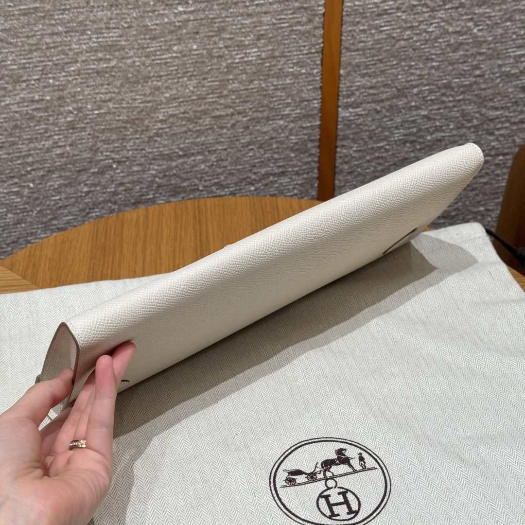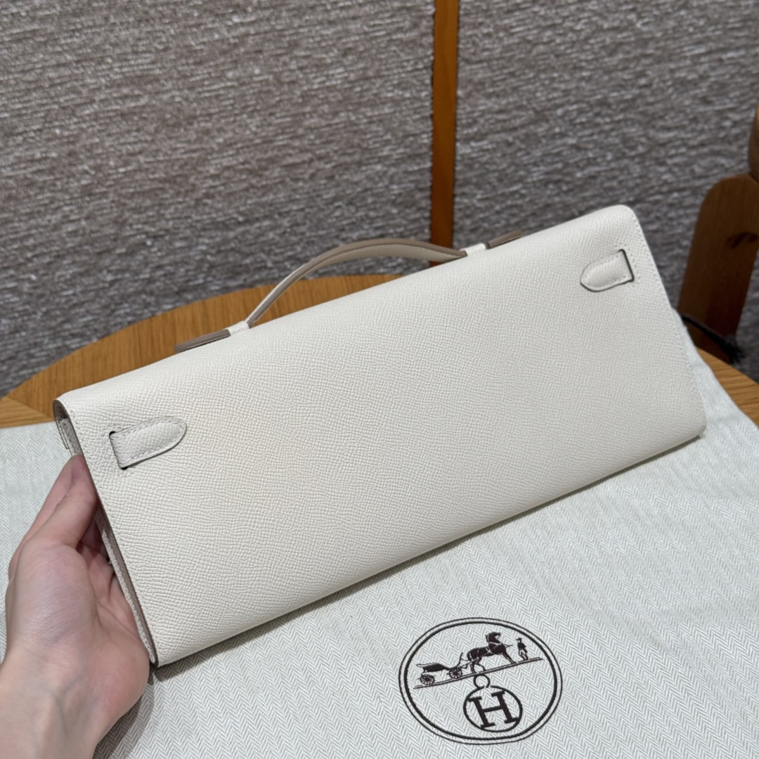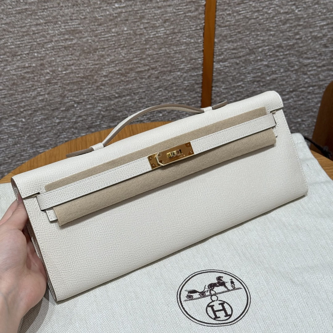 Evening bag 31cm, milkshake white, French imported original factory palm-grained leather, gold clasp, high-end fully handcrafted exclusive customization.