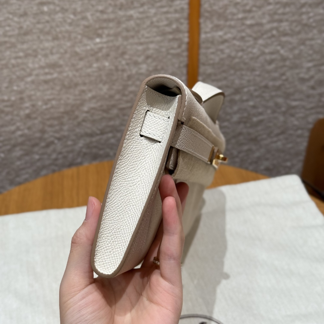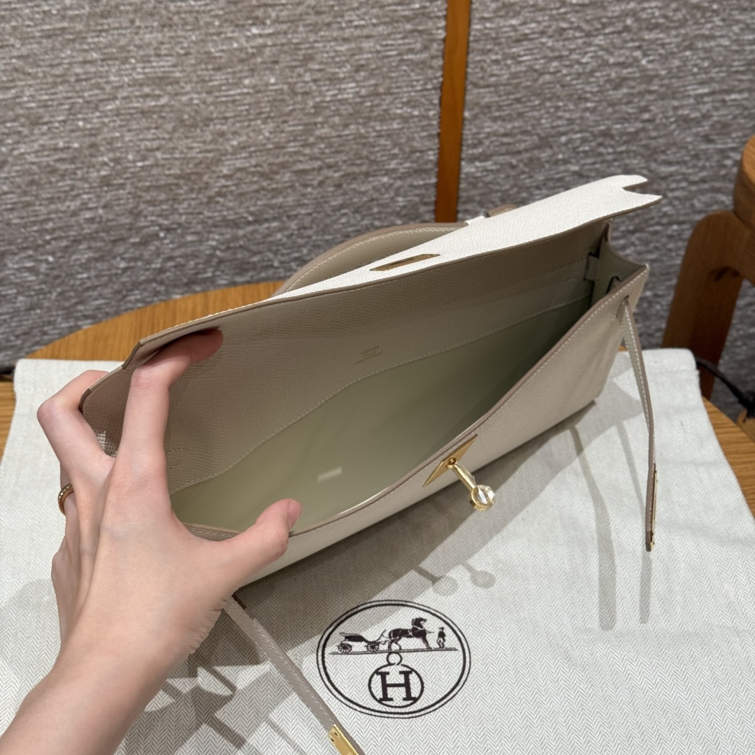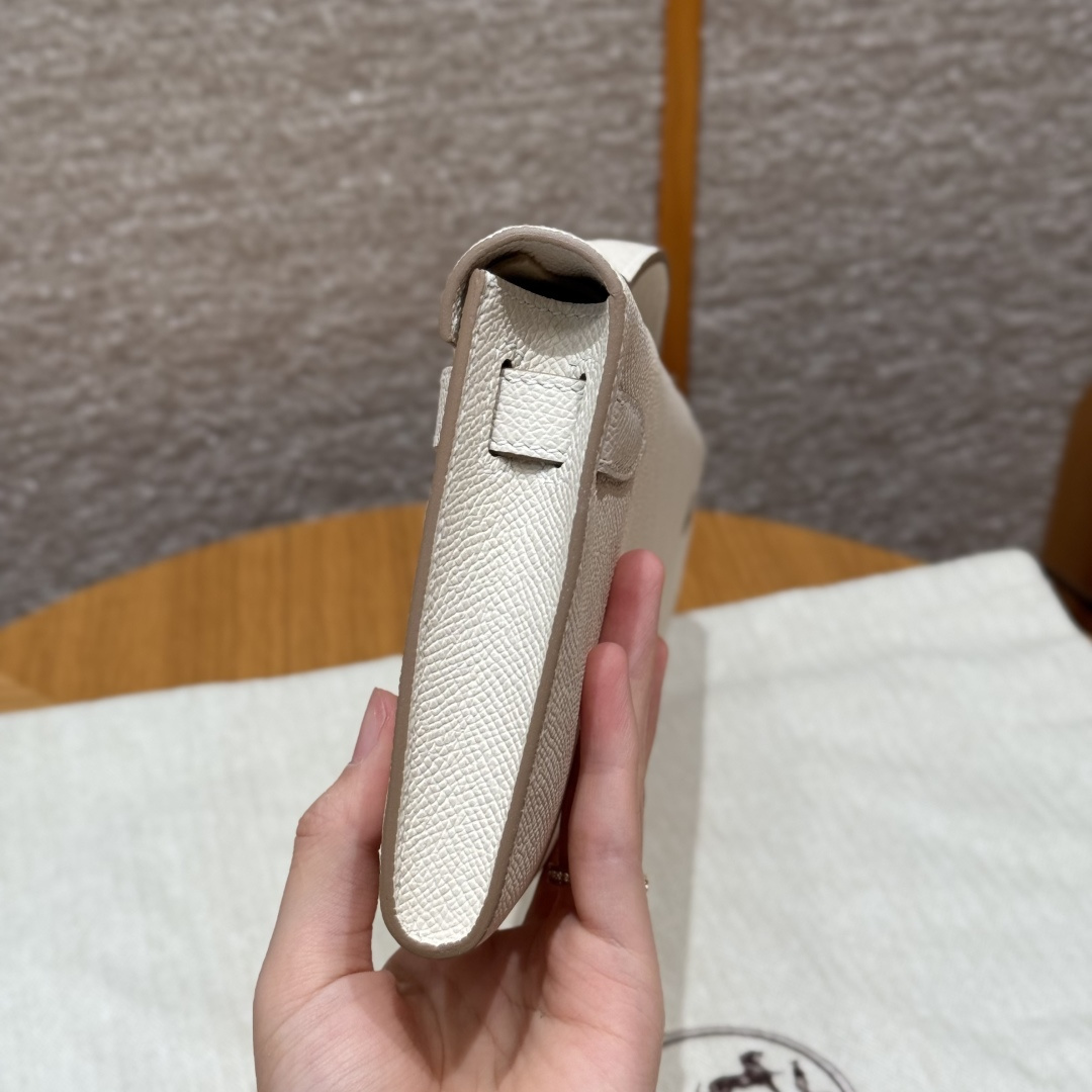 Evening bag 31cm, milkshake white, French imported original factory palm-grained leather, gold clasp, high-end fully handcrafted exclusive customization.