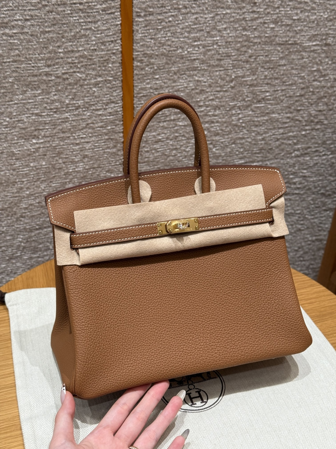 Platinum 25, golden brown, Togo leather, imported original French cowhide, gold clasp, advanced fully handmade exclusive customization.