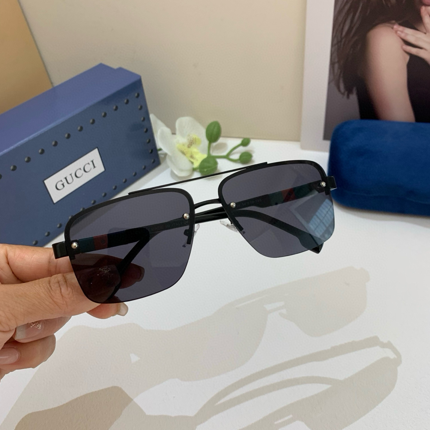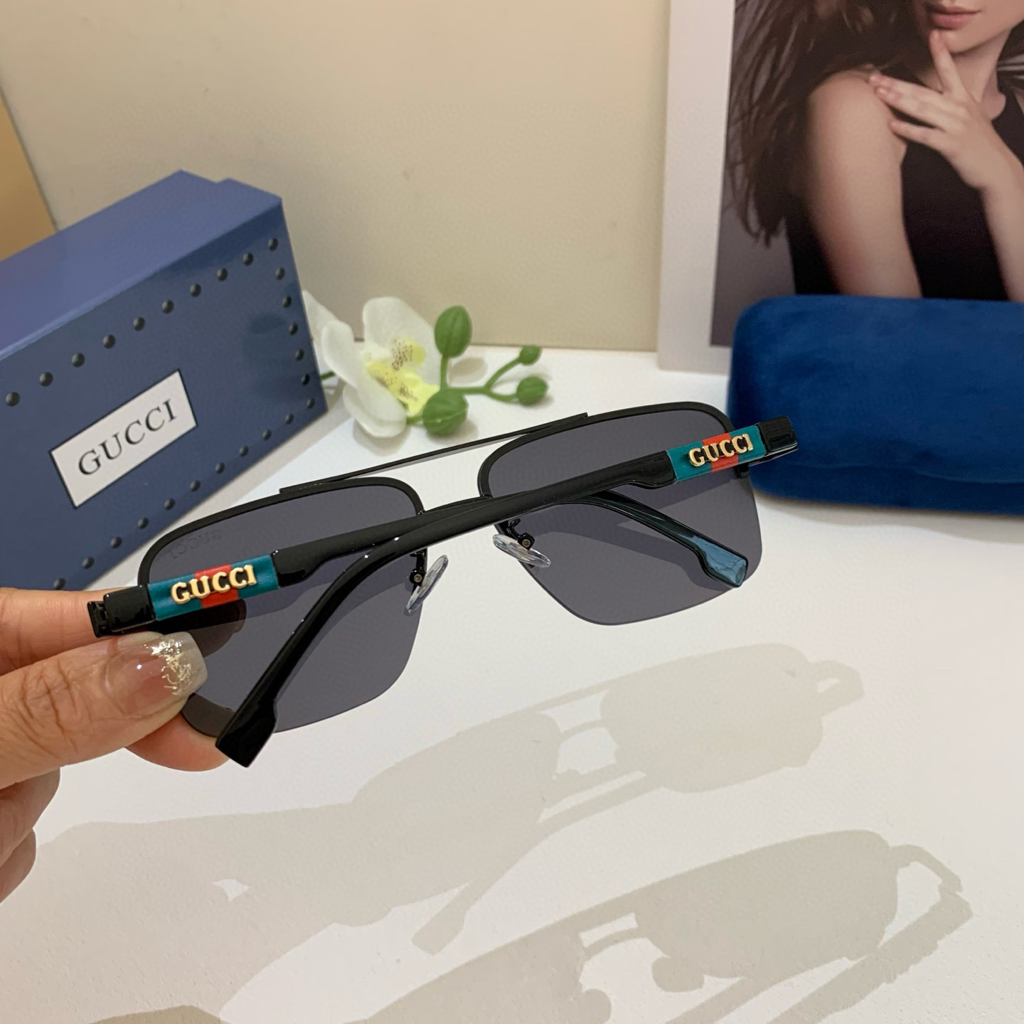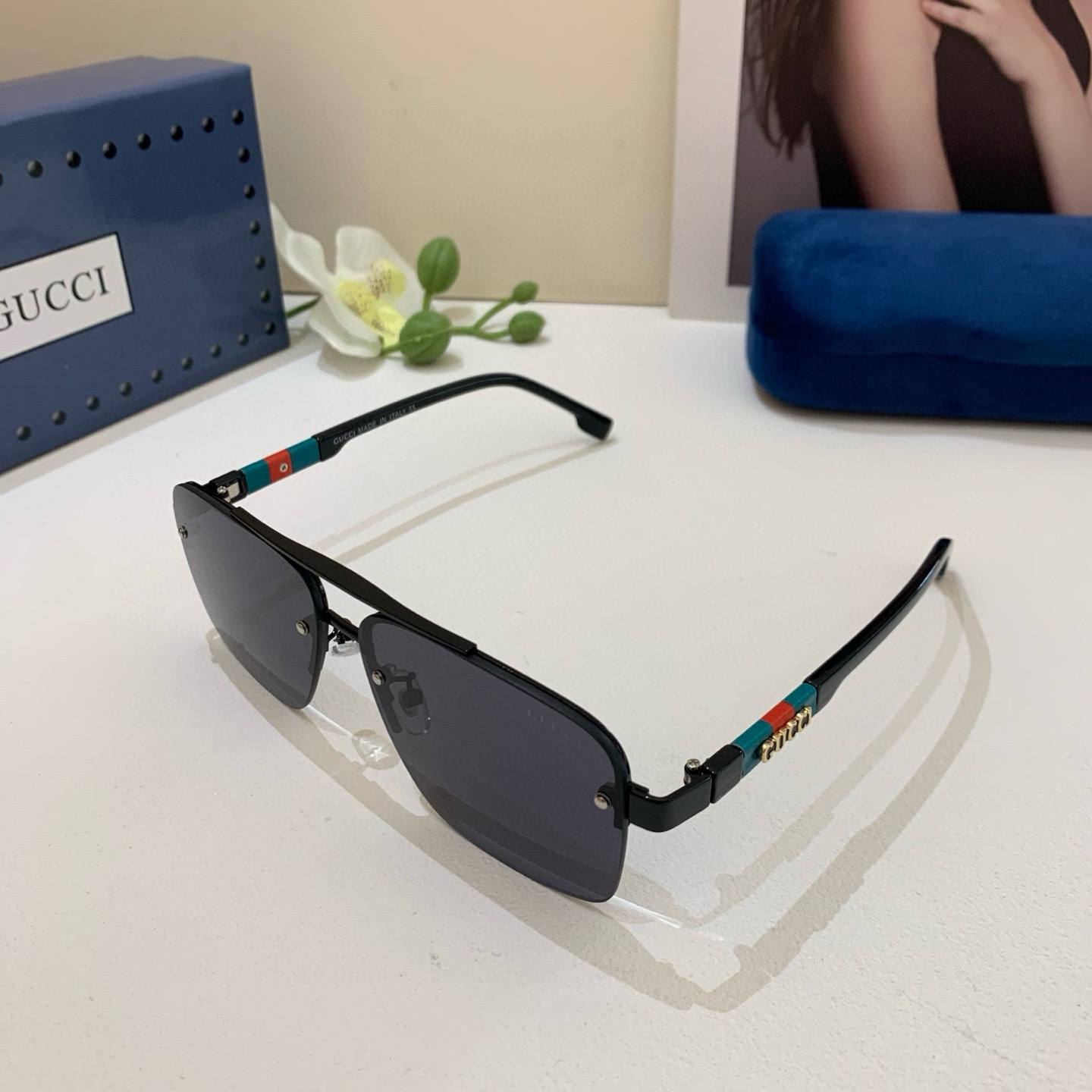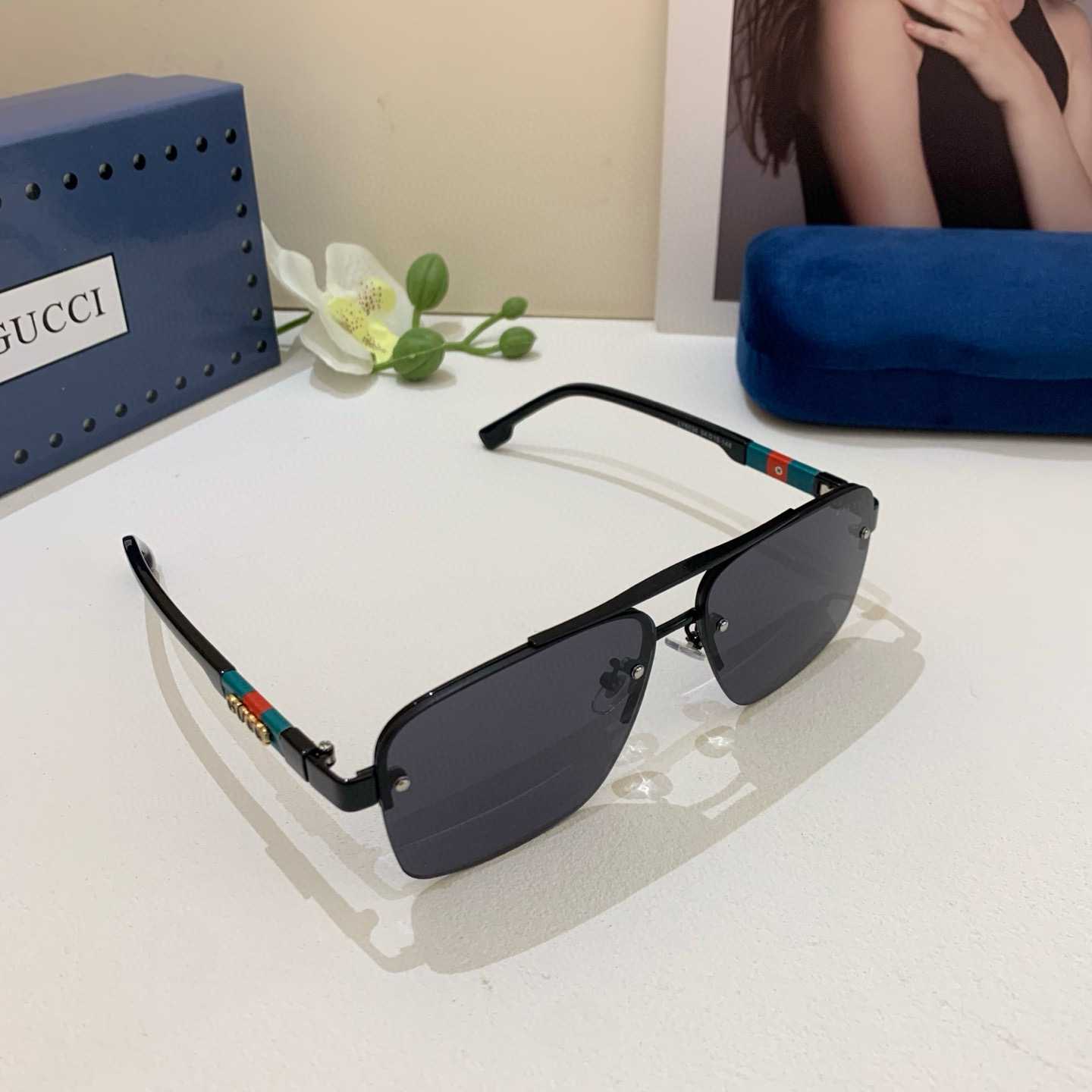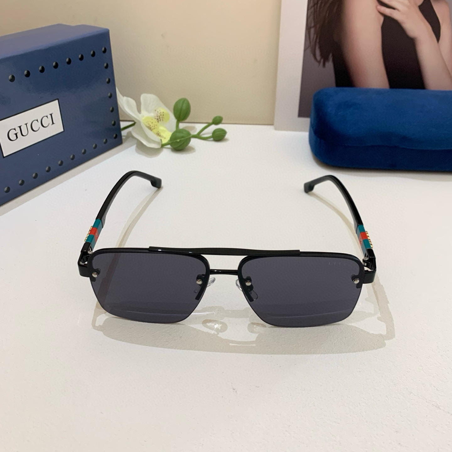 Gucci Gucci 2025 new double bridge sunglasses unisex square frame glasses sun protection UV retro sunglasses