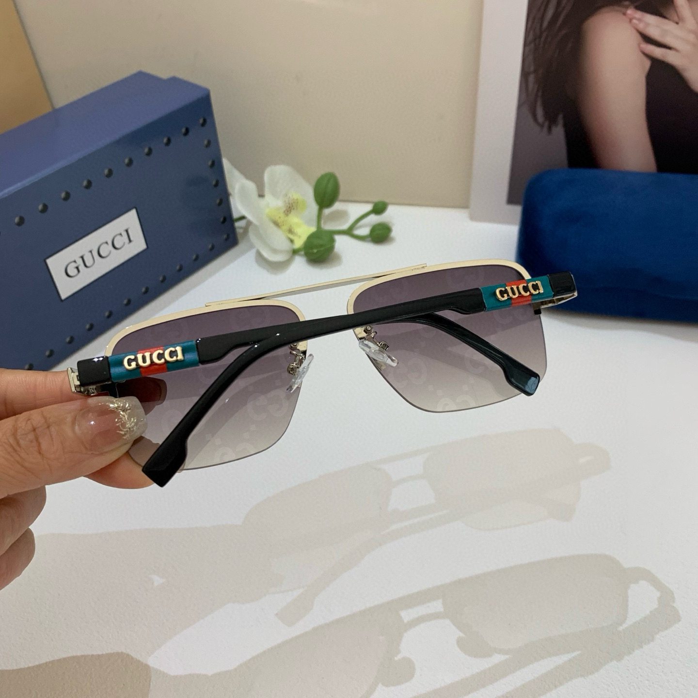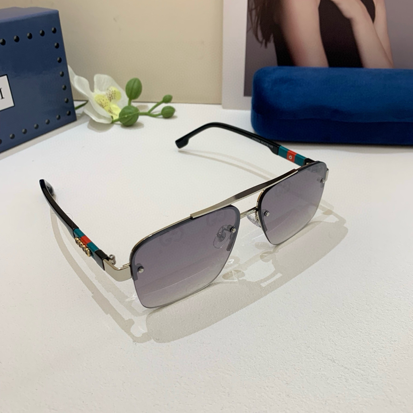 Gucci Gucci 2025 new double bridge sunglasses unisex square frame glasses sun protection UV retro sunglasses