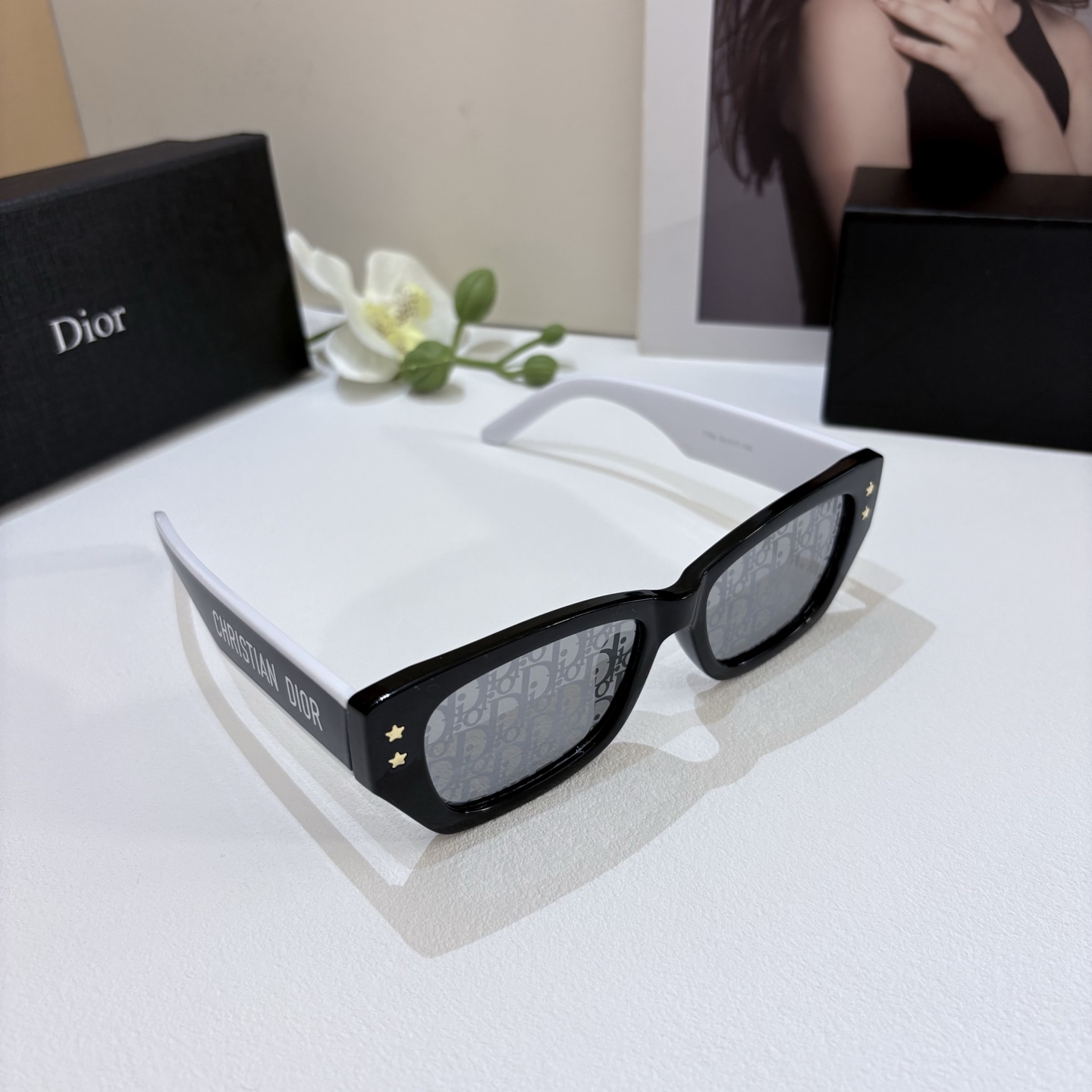 Dior 2025 classic two-tone sunglasses, fashionable retro style, comfortable square frame, multiple colors available.