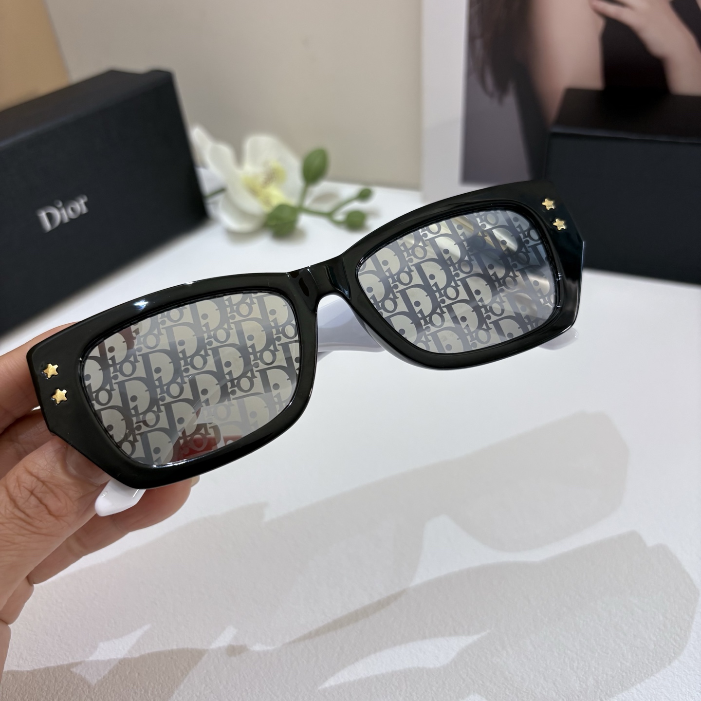 Home • Glasses • Dior 2025 classic two-tone sunglasses, fashionable retro style, comfortable square frame, multiple colors available.