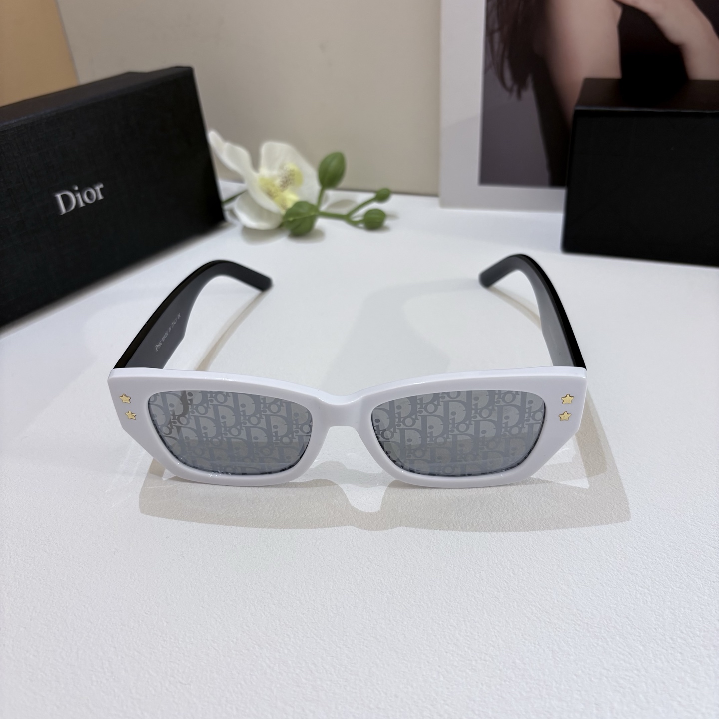 Home • Glasses • Dior 2025 classic two-tone sunglasses, fashionable retro style, comfortable square frame, multiple colors available.