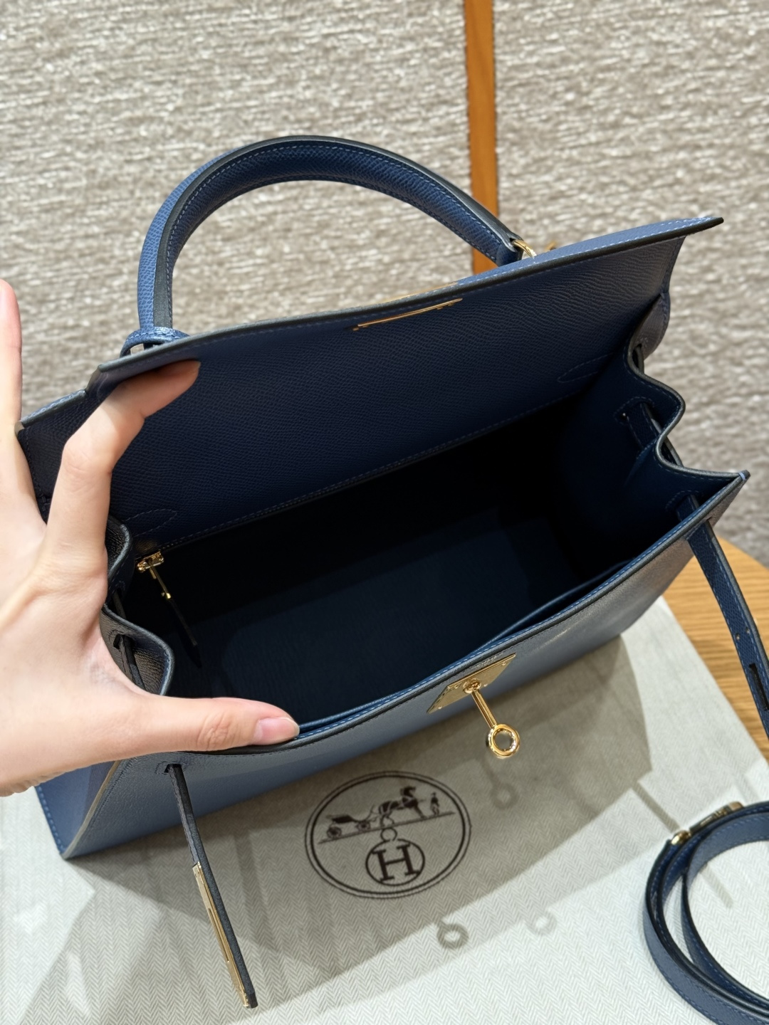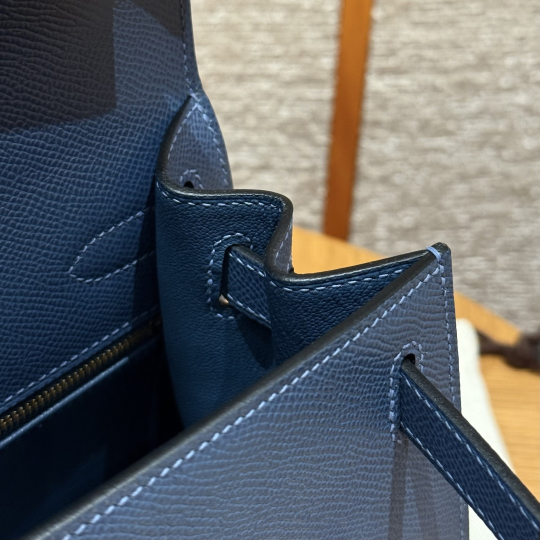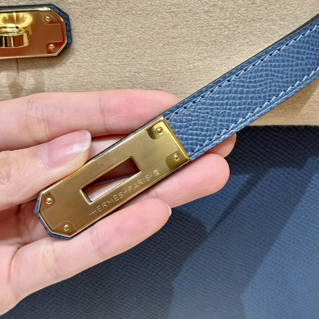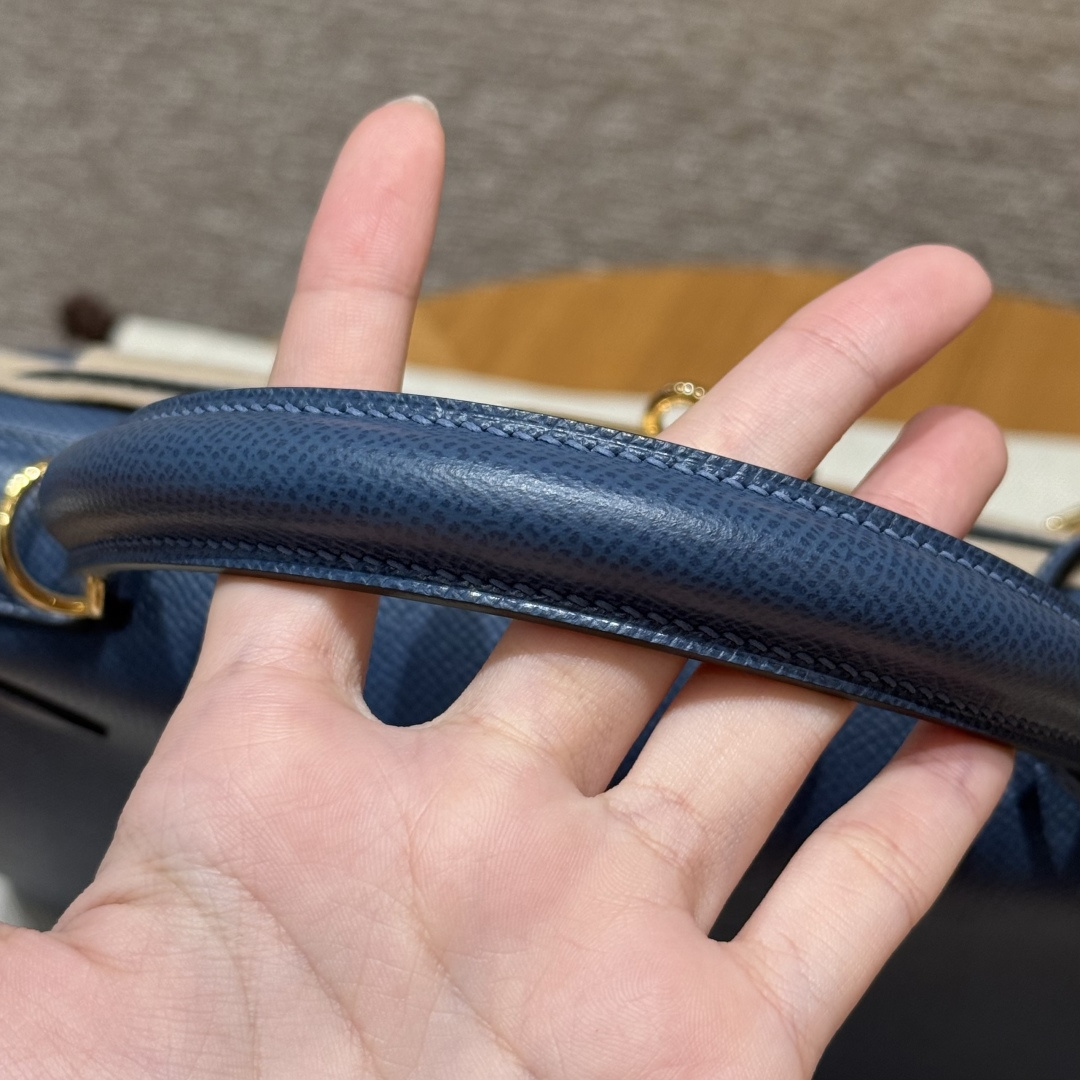 Kelly 28, blue agate, French imported cowhide palm grain outer stitching, gold clasp, high-end fully handcrafted exclusive customization.