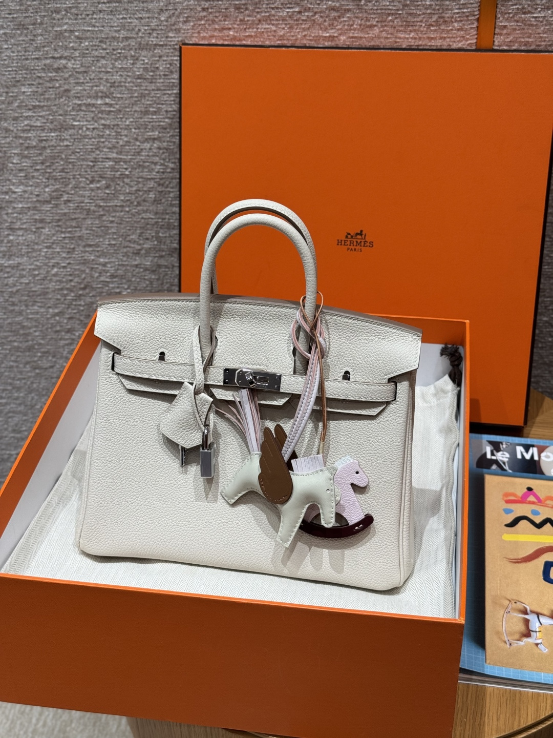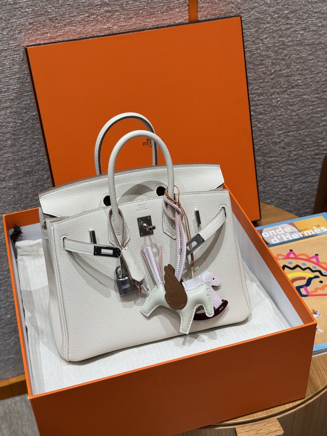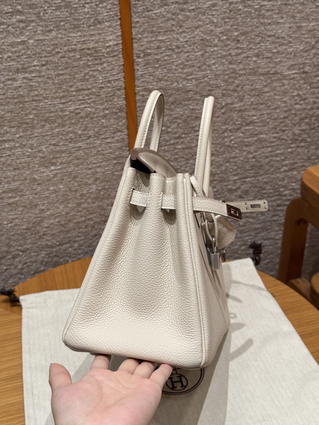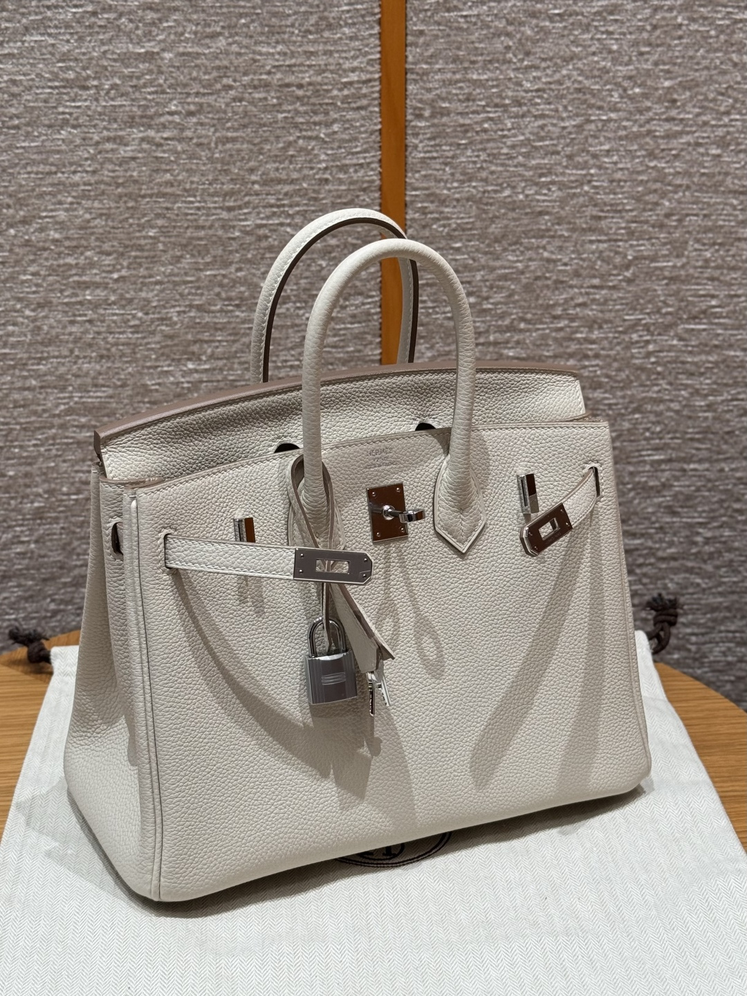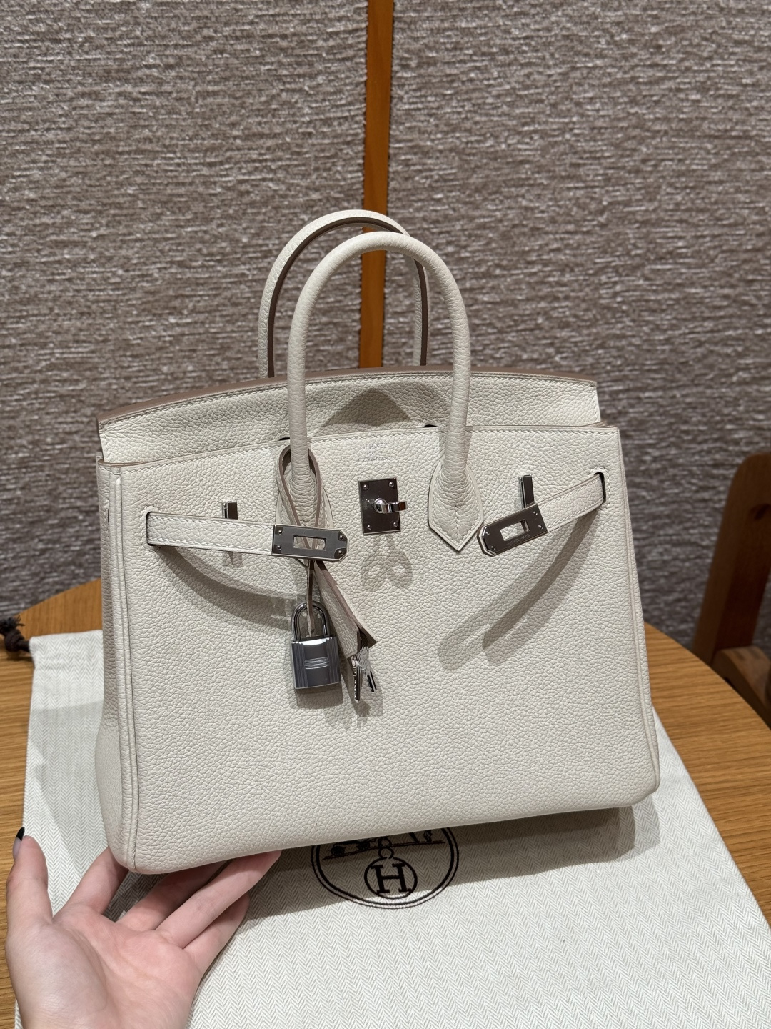 Birkin 25cm, Chalk White, Togo leather, original French imported cowhide, silver hardware, premium fully handcrafted exclusive customisation.