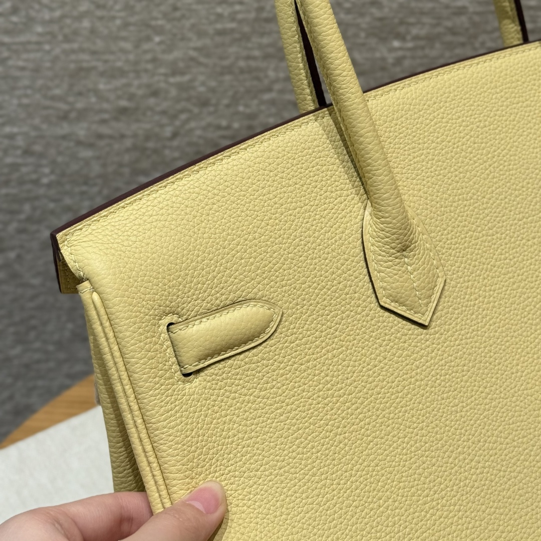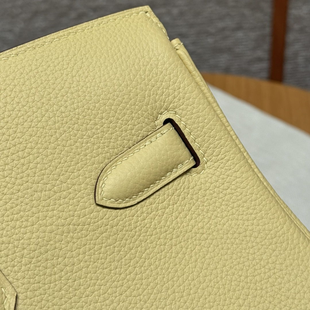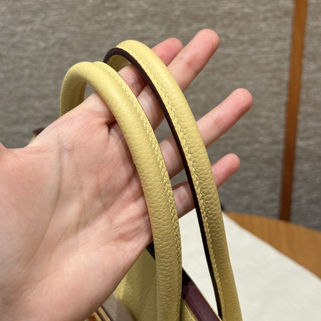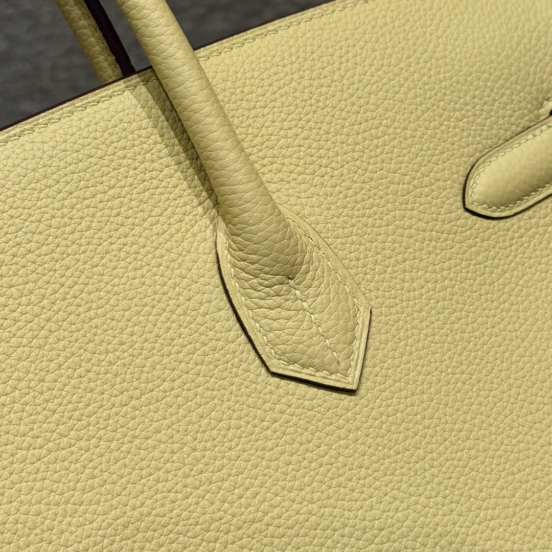 Birkin 25, Chick Yellow - Inside Stitching, Imported original French Togo calfskin, gold hardware, premium fully handcrafted exclusive custom-made.