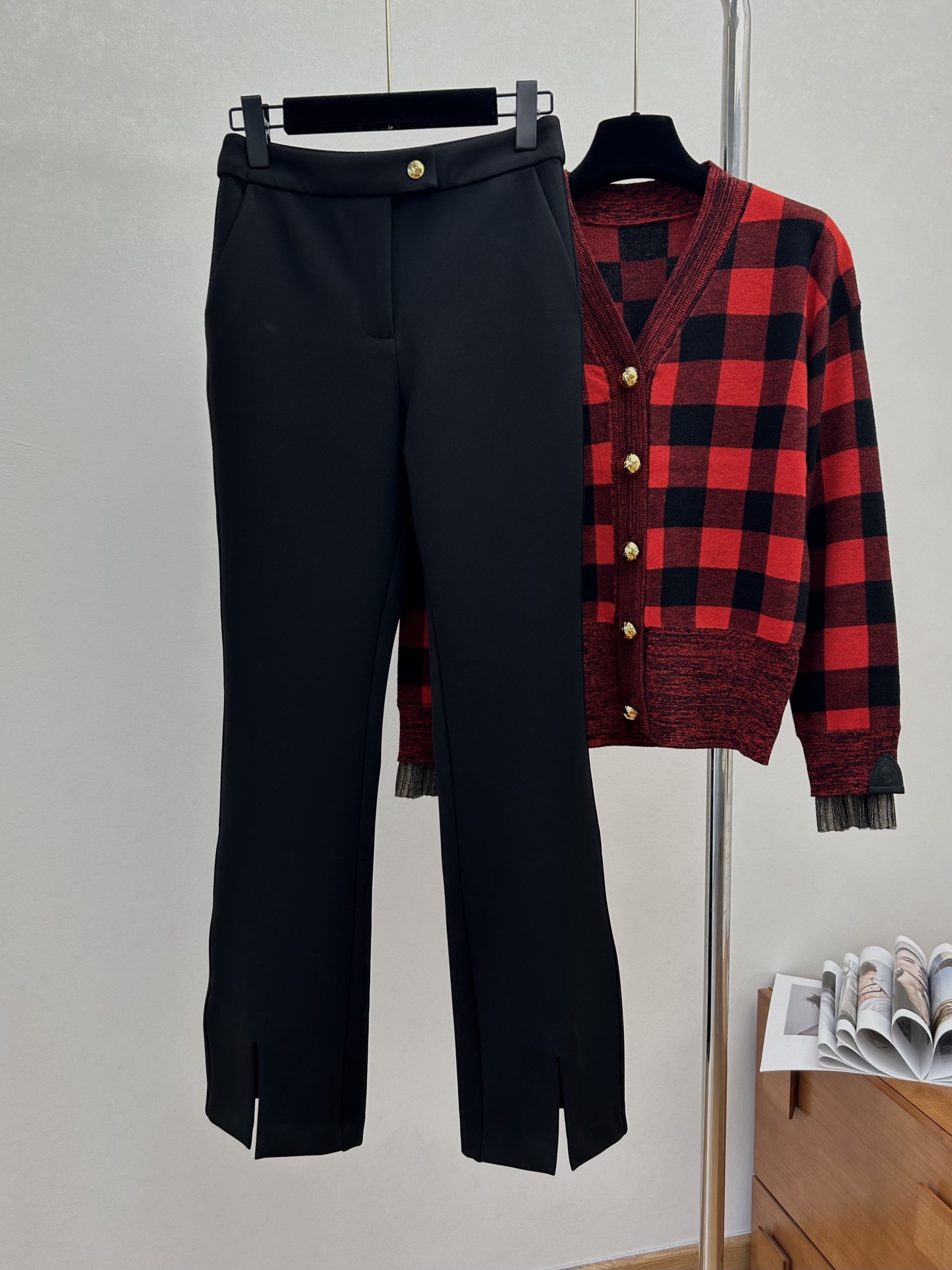 🔥Louis 25 Autumn/Winter New Black Brushed Flared Split Pants Stretchy Fabric Slimming Comfortable Fit Modifies Leg Shape Super Slimming Daily Versatile. SMLXL