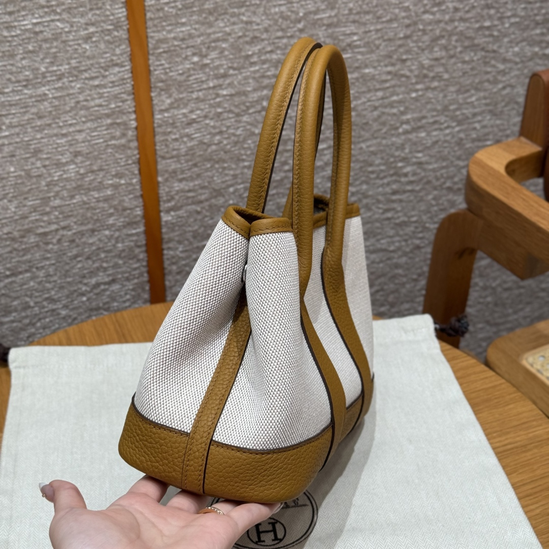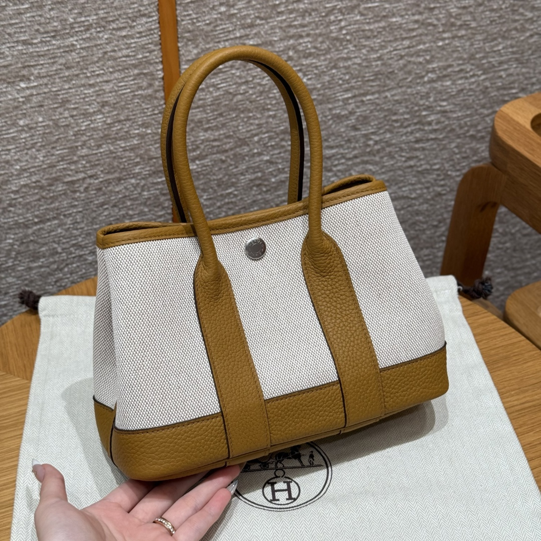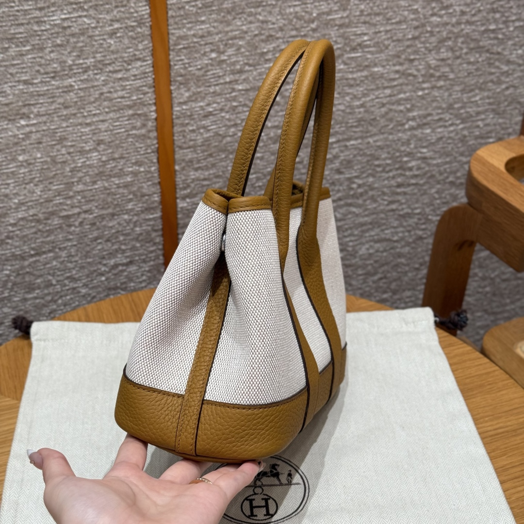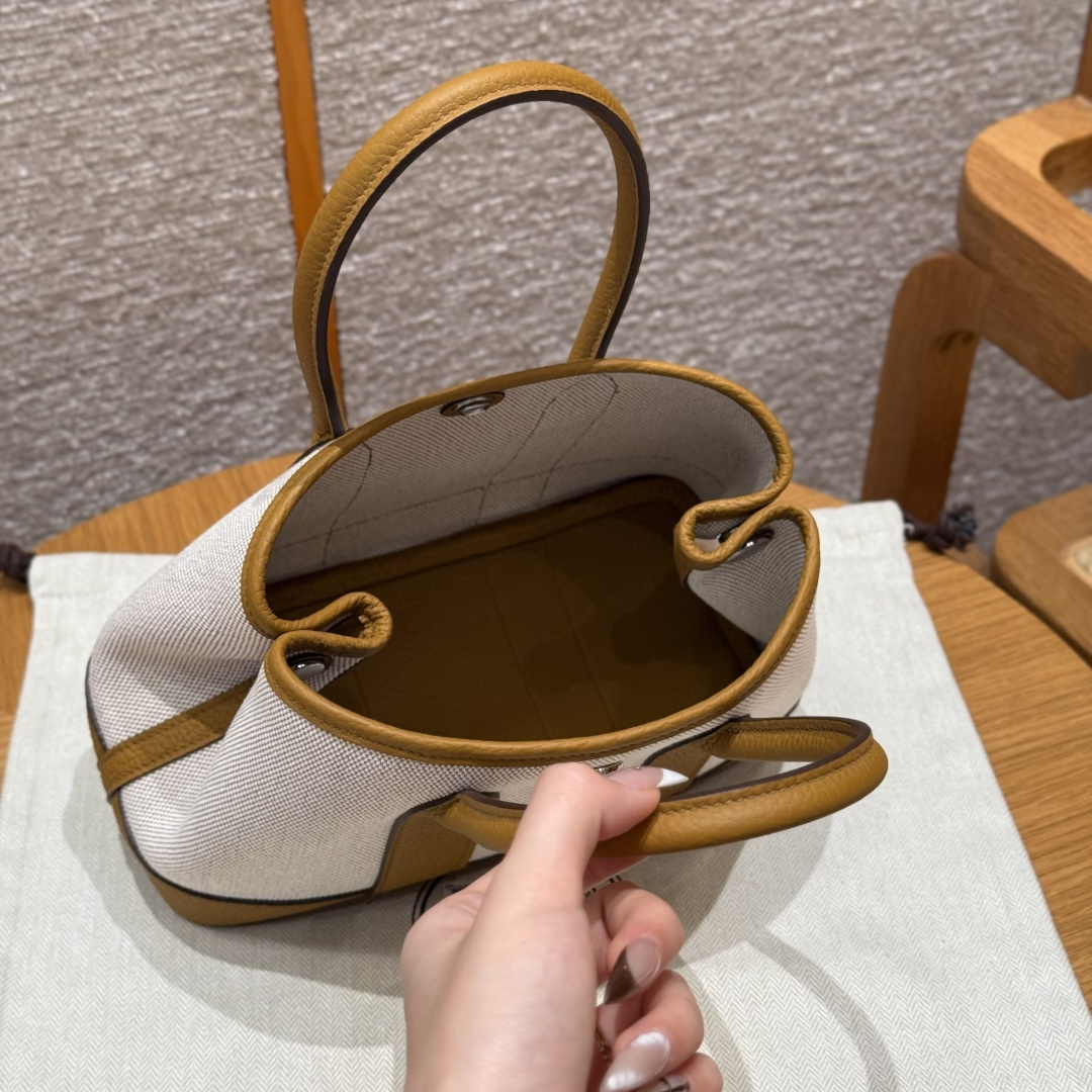 Garden bag 23cm, light beige/beige/light tan, canvas with Ntogo, silver buckle, fully hand-stitched handmade high-end customisation.