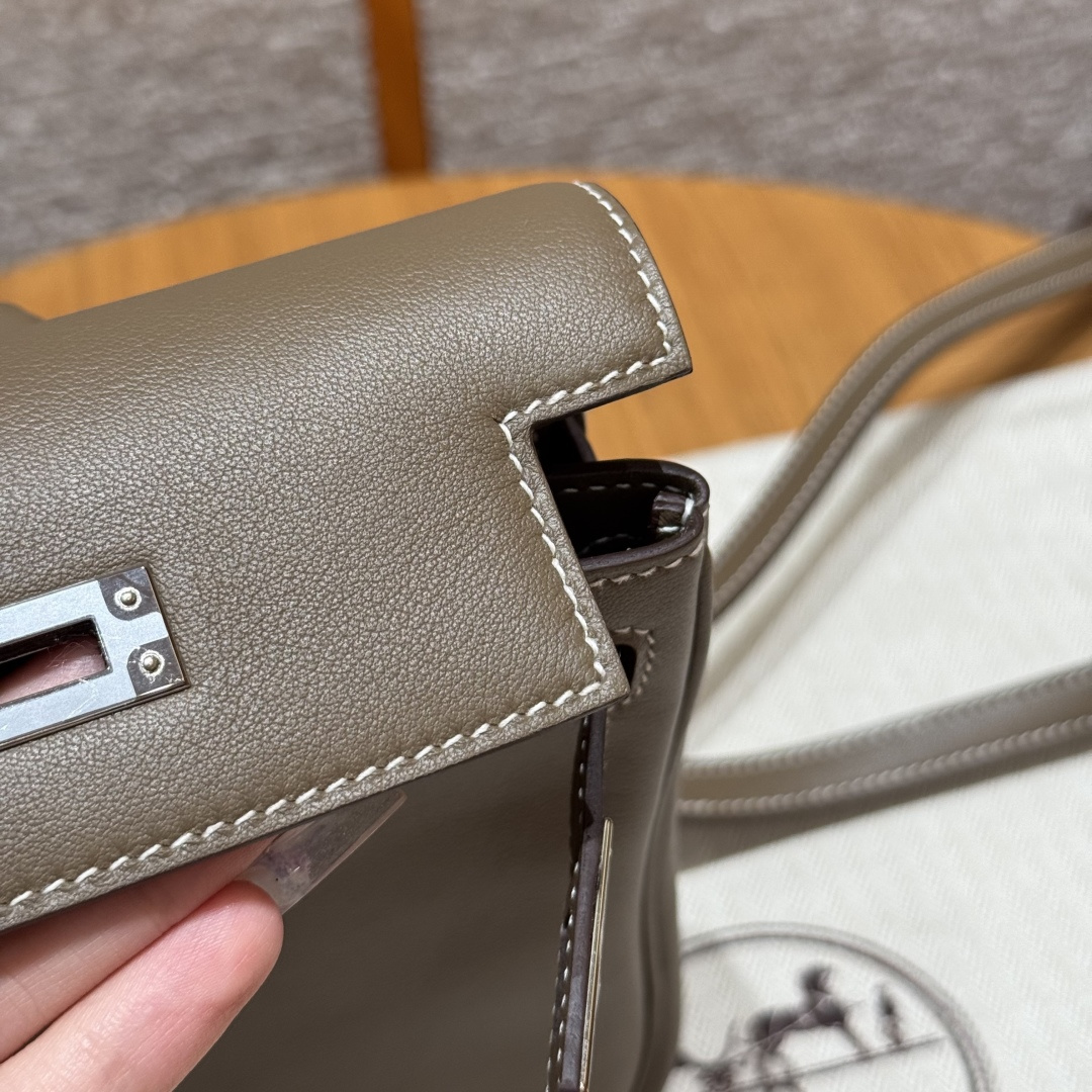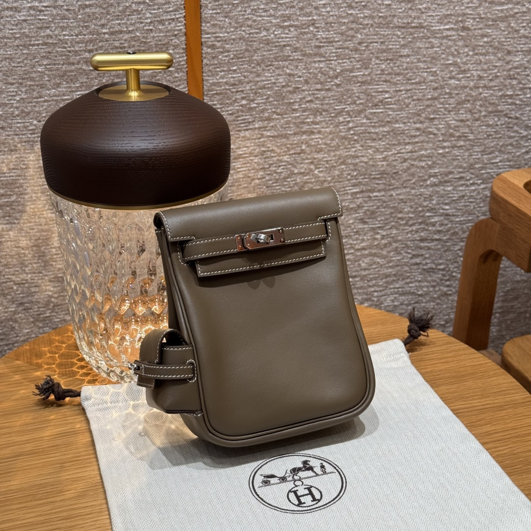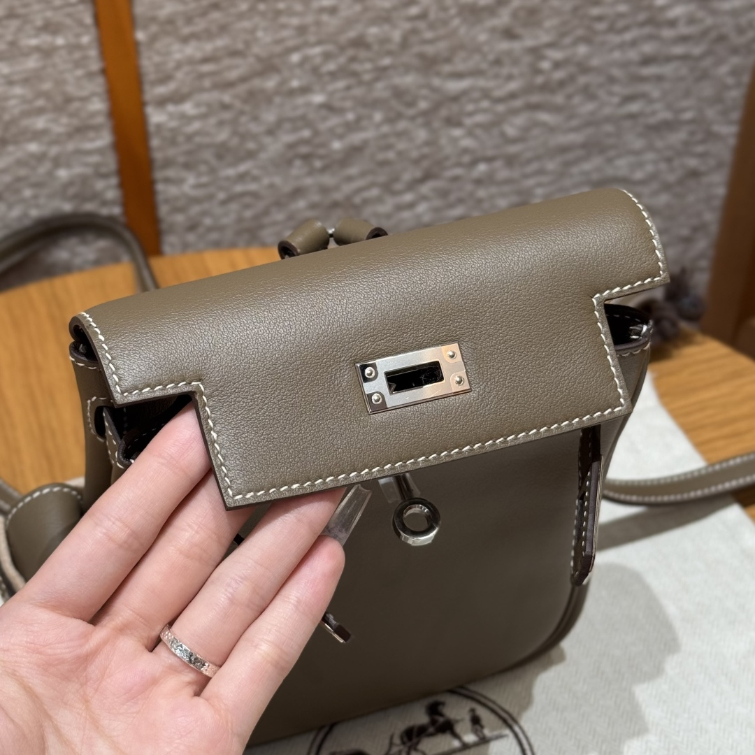 New Kelly backpack 18cm, elephant grey, plain grain leather, original French imported cowhide, silver clasp, high-end fully handcrafted exclusive customisation.