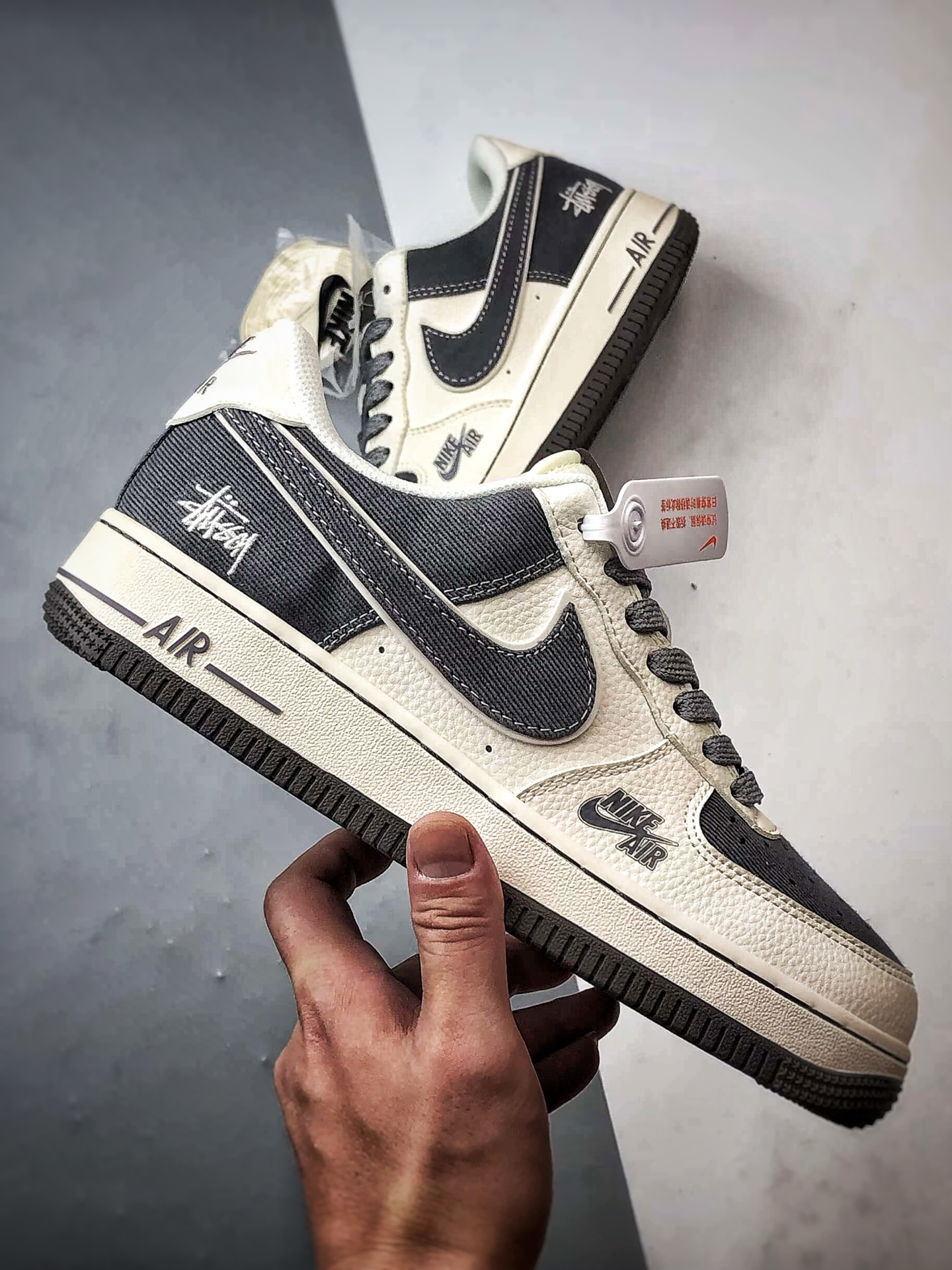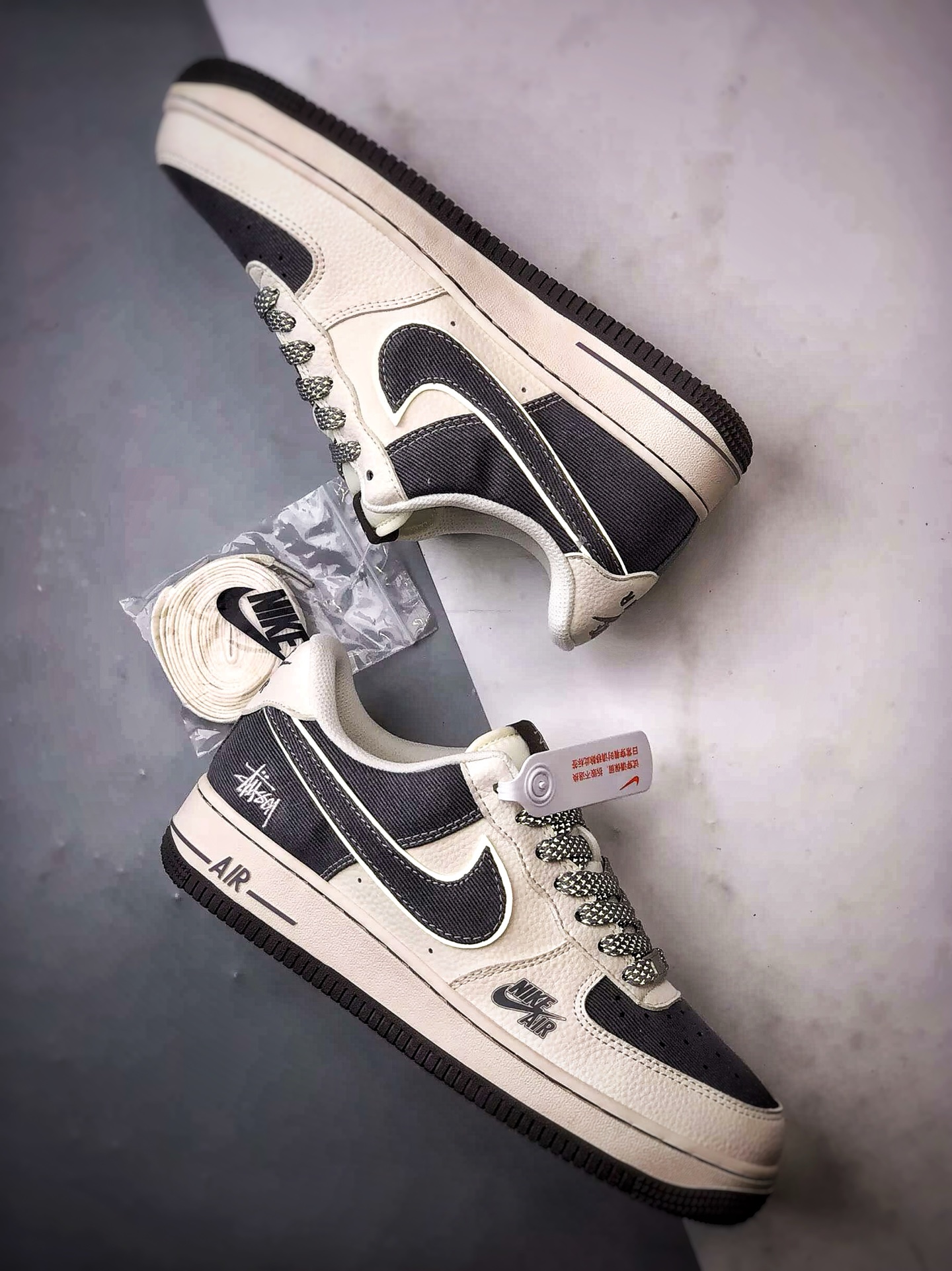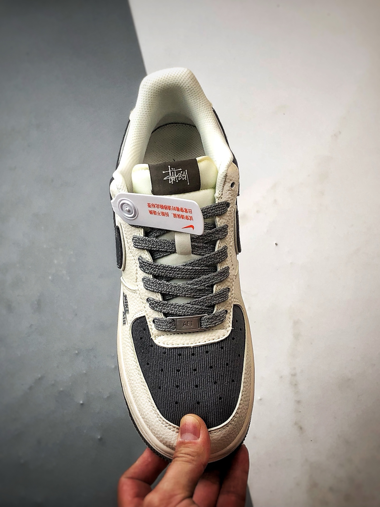 Original title: Stussy x Air Force 1 Low Beige Gray Leather and Fabric Combination