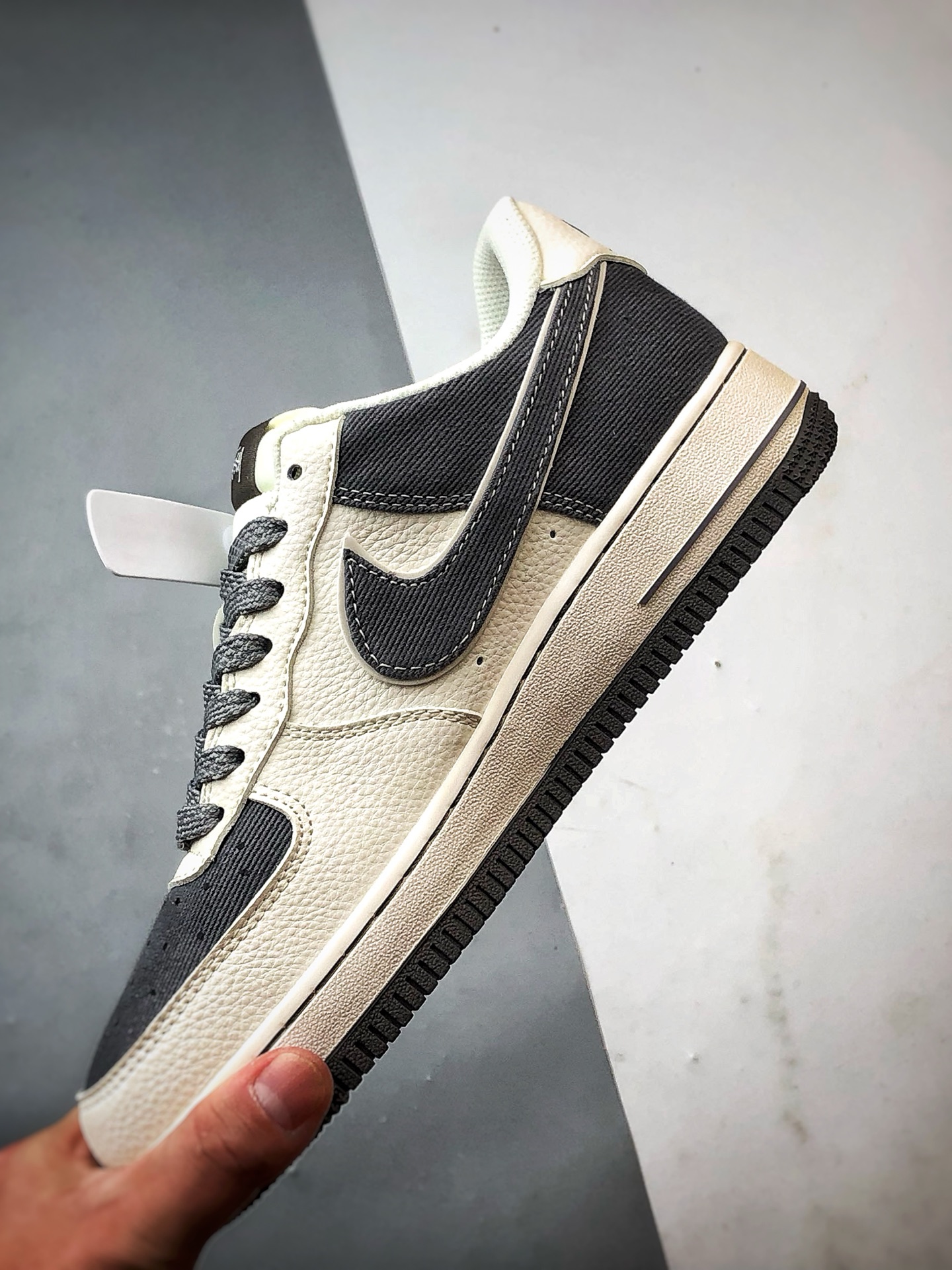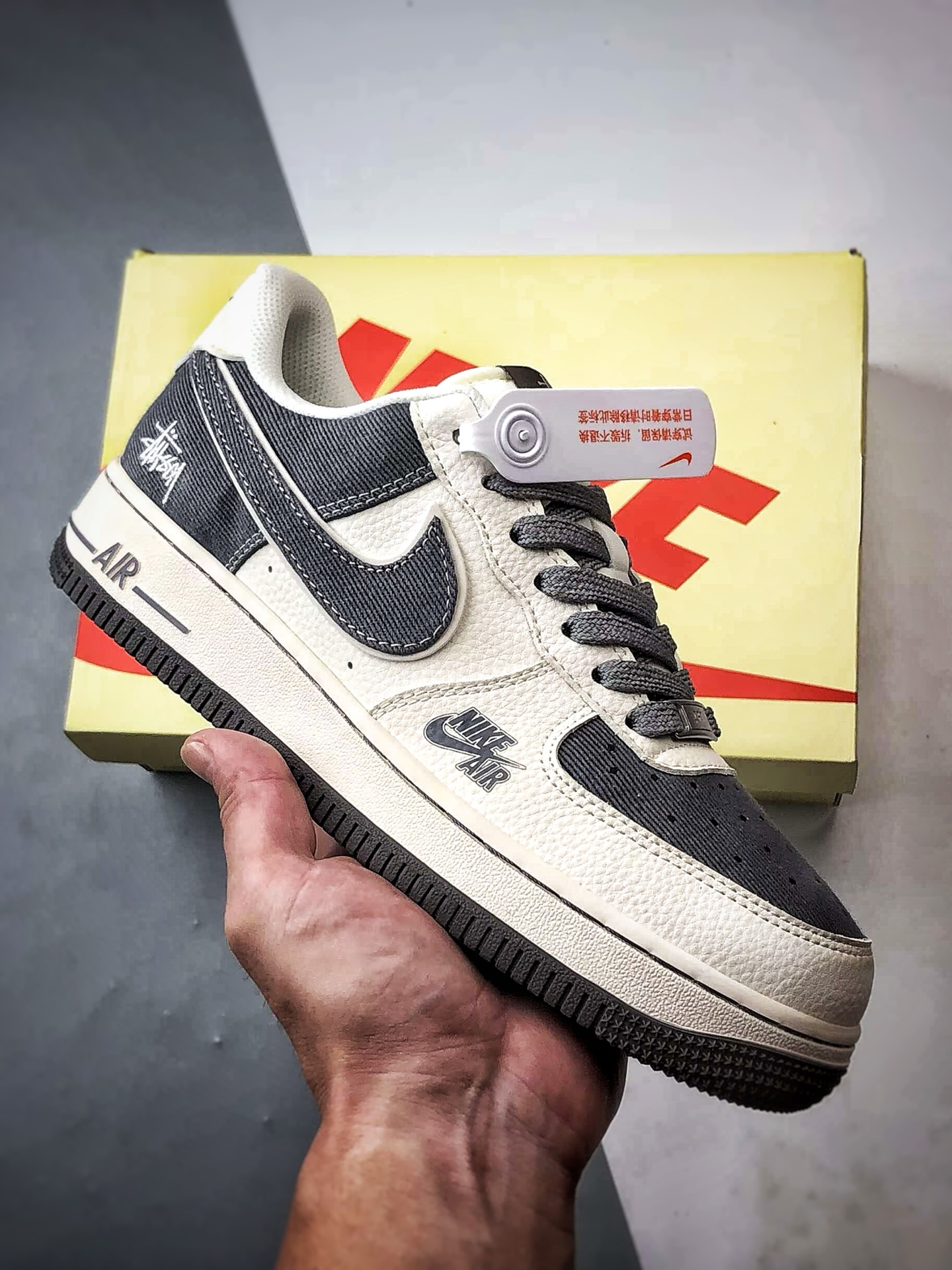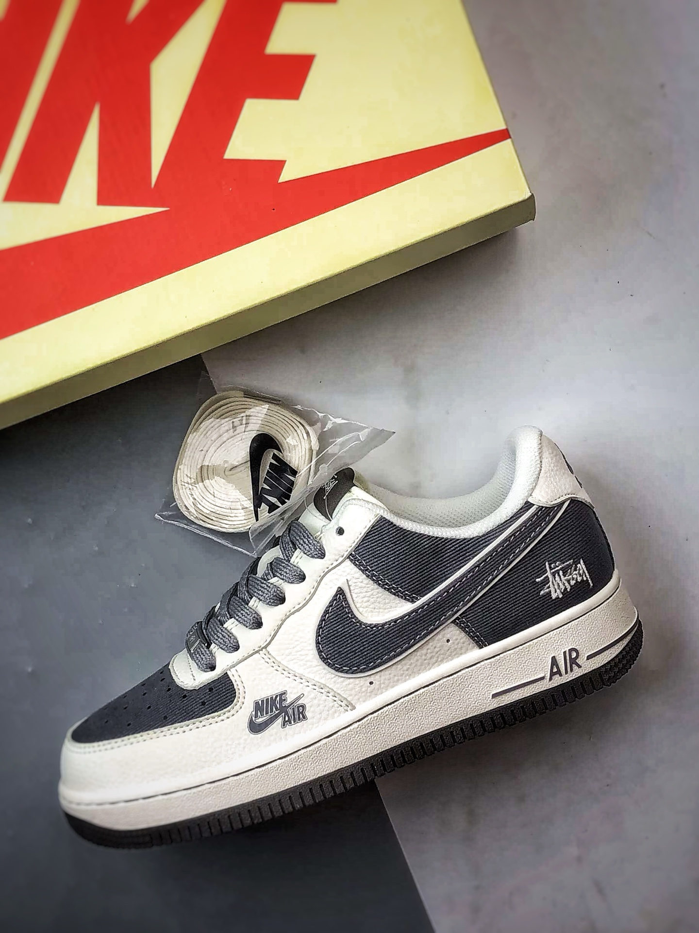 Original title: Stussy x Air Force 1 Low Beige Gray Leather and Fabric Combination