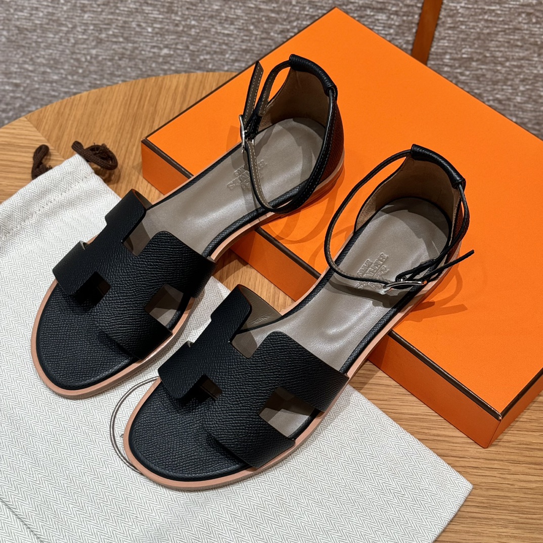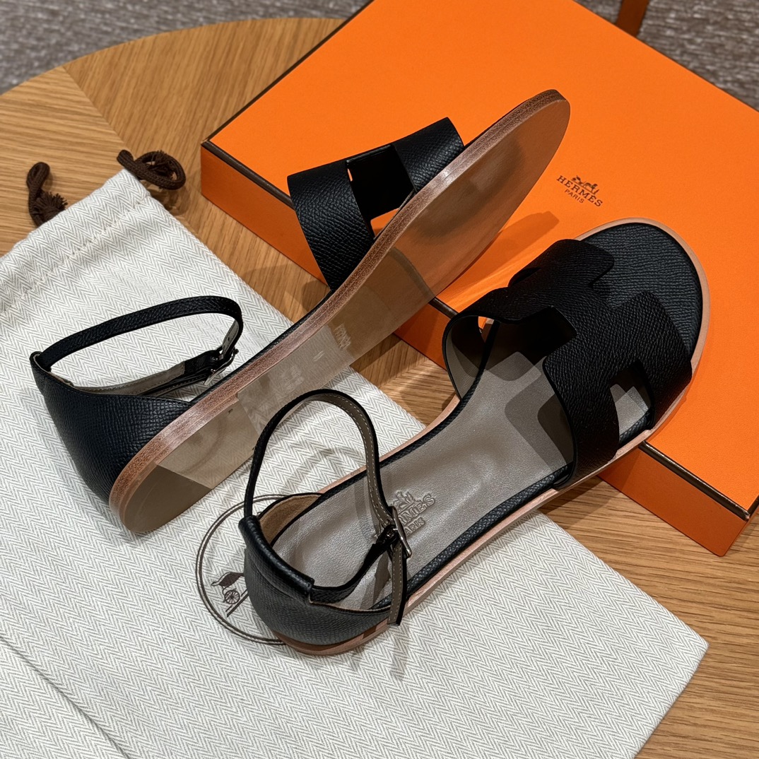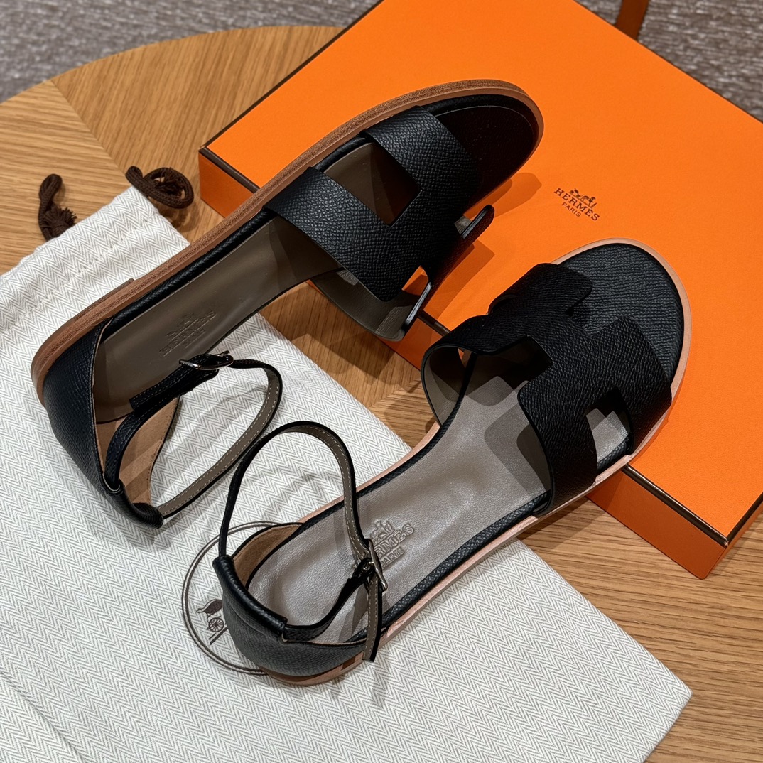 Home • Shoe • JD-550 Style: 196 Santorini Sandals. Color: Black. Upper: Epsom. Sole: Leather. Custom sizes 34-41. Handmade, 15-day production.