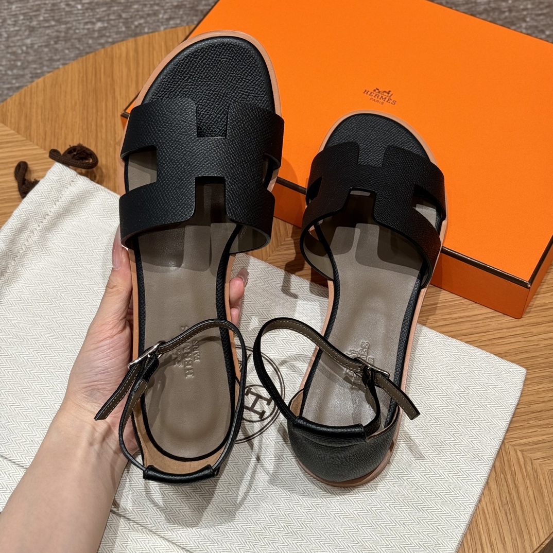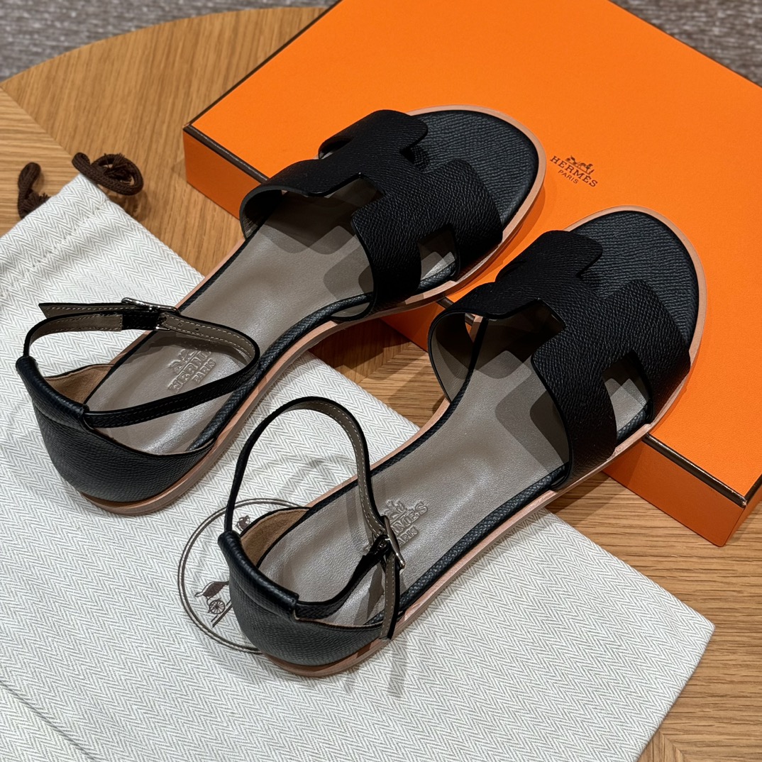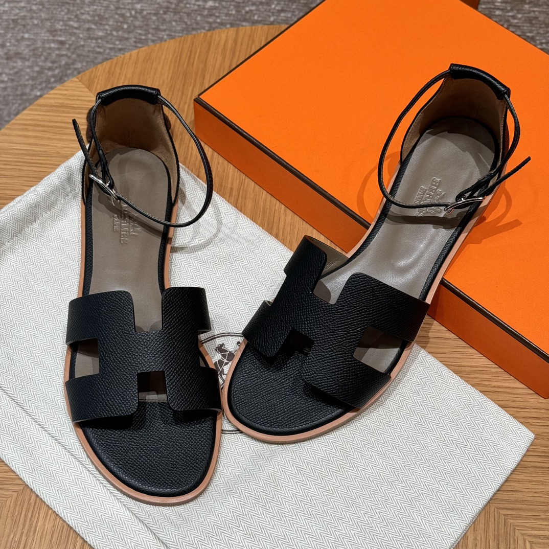 Home • Shoe • JD-550 Style: 196 Santorini Sandals. Color: Black. Upper: Epsom. Sole: Leather. Custom sizes 34-41. Handmade, 15-day production.