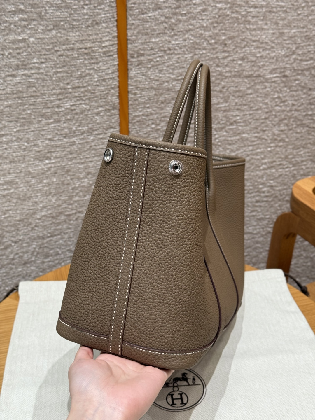 Garden bag 30cm, elephant gray, Ntogo leather, original French imported cowhide, silver clasp, fully hand-stitched high-end custom.
