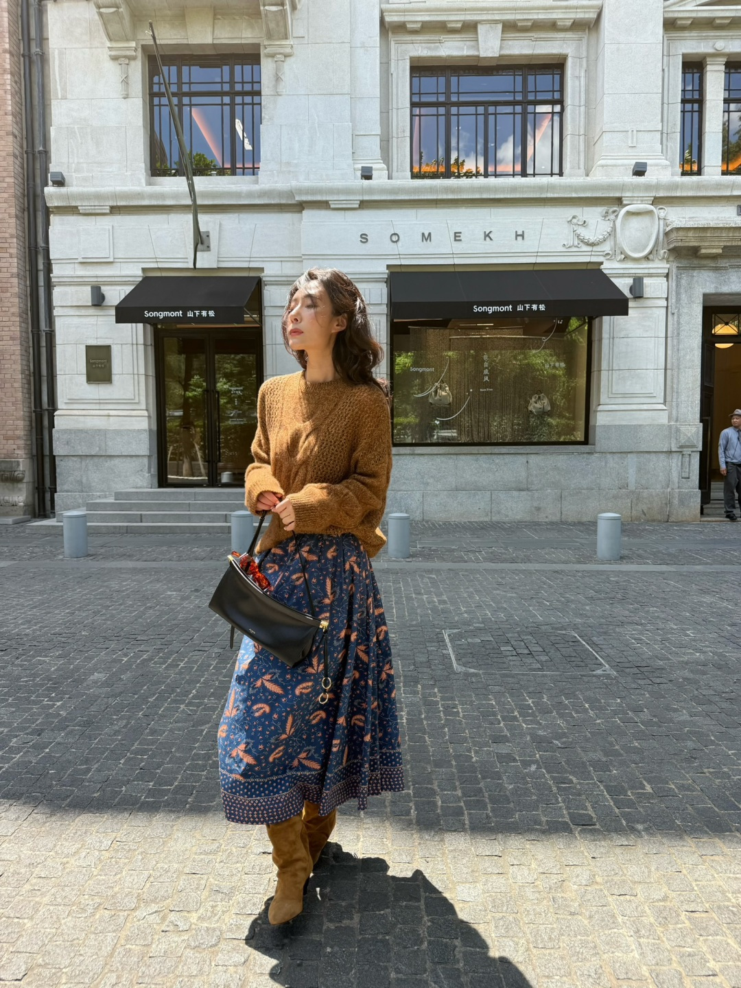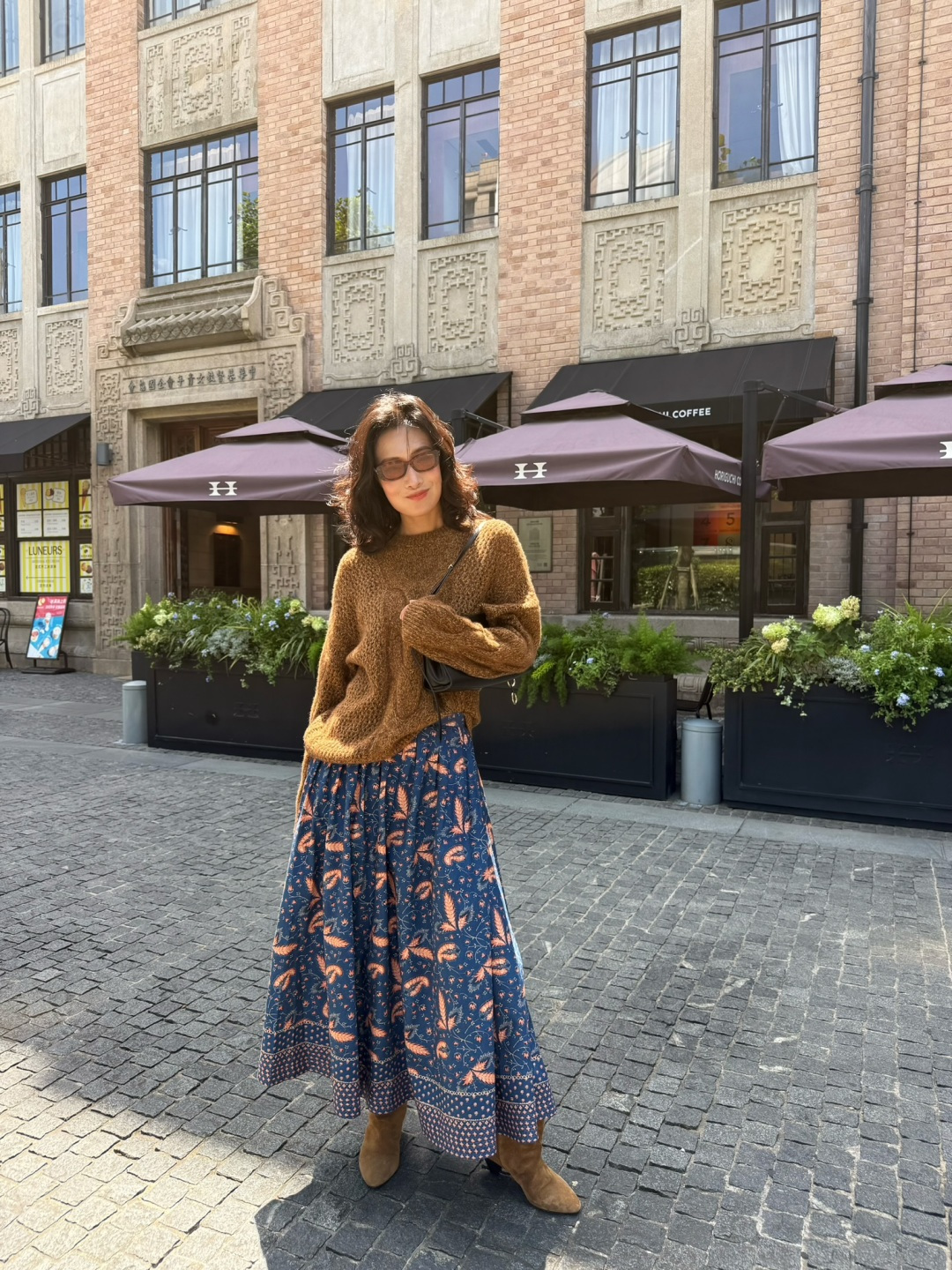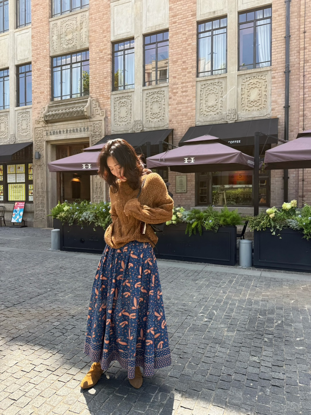 This maxi skirt features a deep navy blue base, reminiscent of a tranquil midsummer night. The exquisite floral and dynamic feather prints blooming on it represent a perfect blend of art and fashion, sketching a leisurely picture of strolling through a private garden!