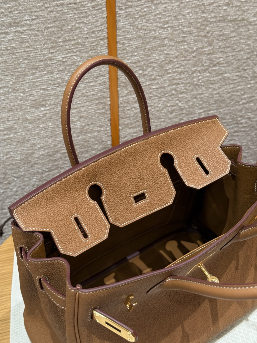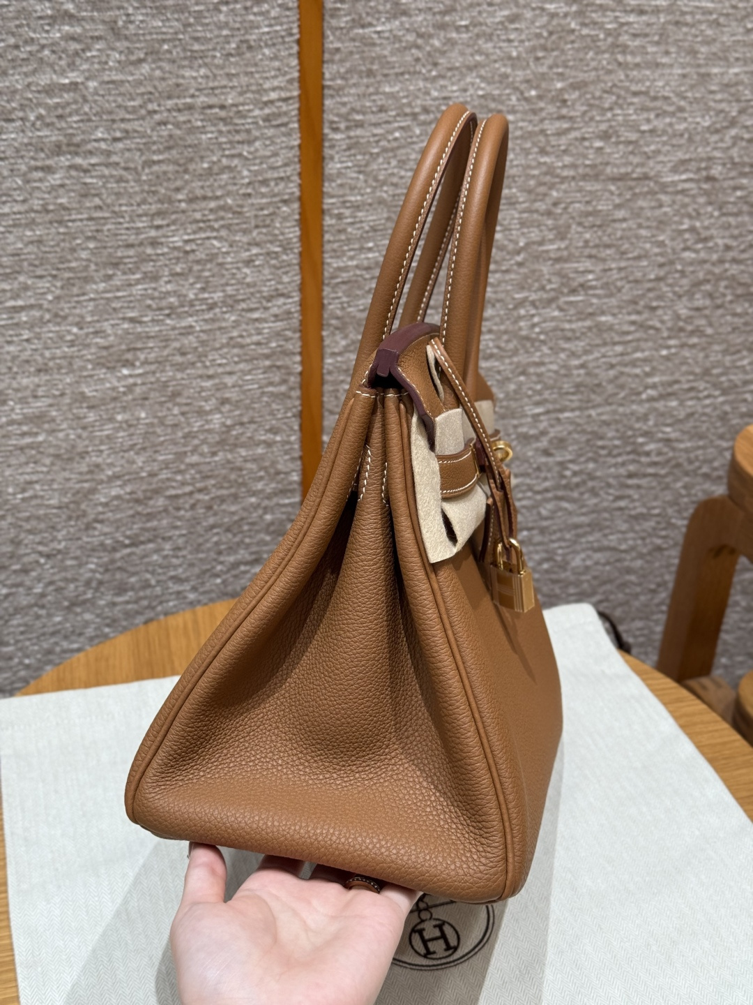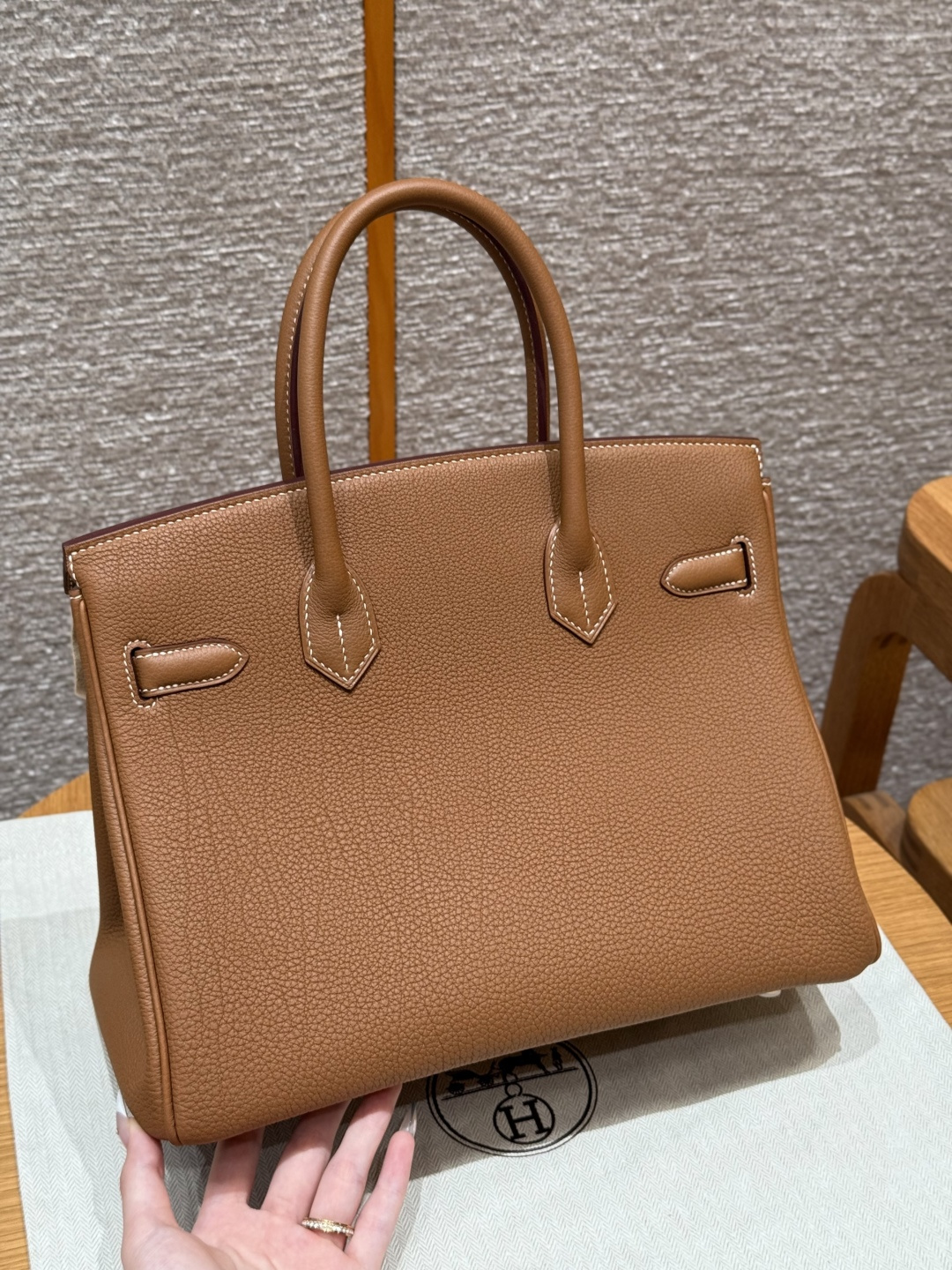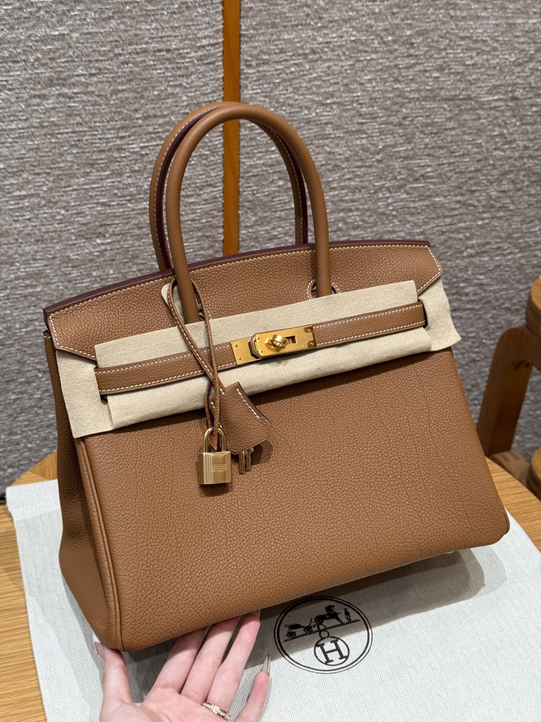 Birkin 30cm, golden brown, Togo leather - cow neck grain, original French imported cowhide, gold hardware, premium fully handmade exclusive customization.