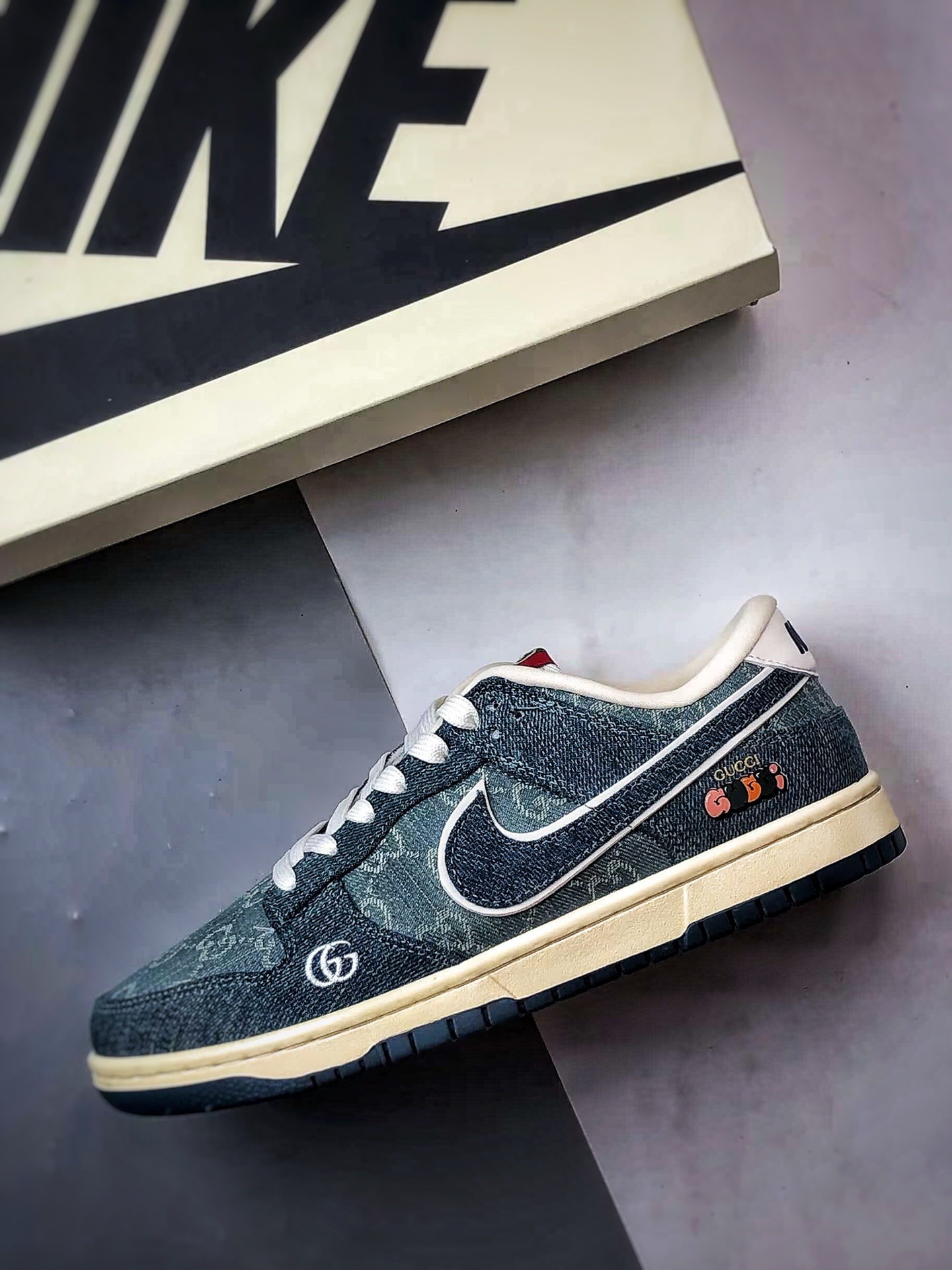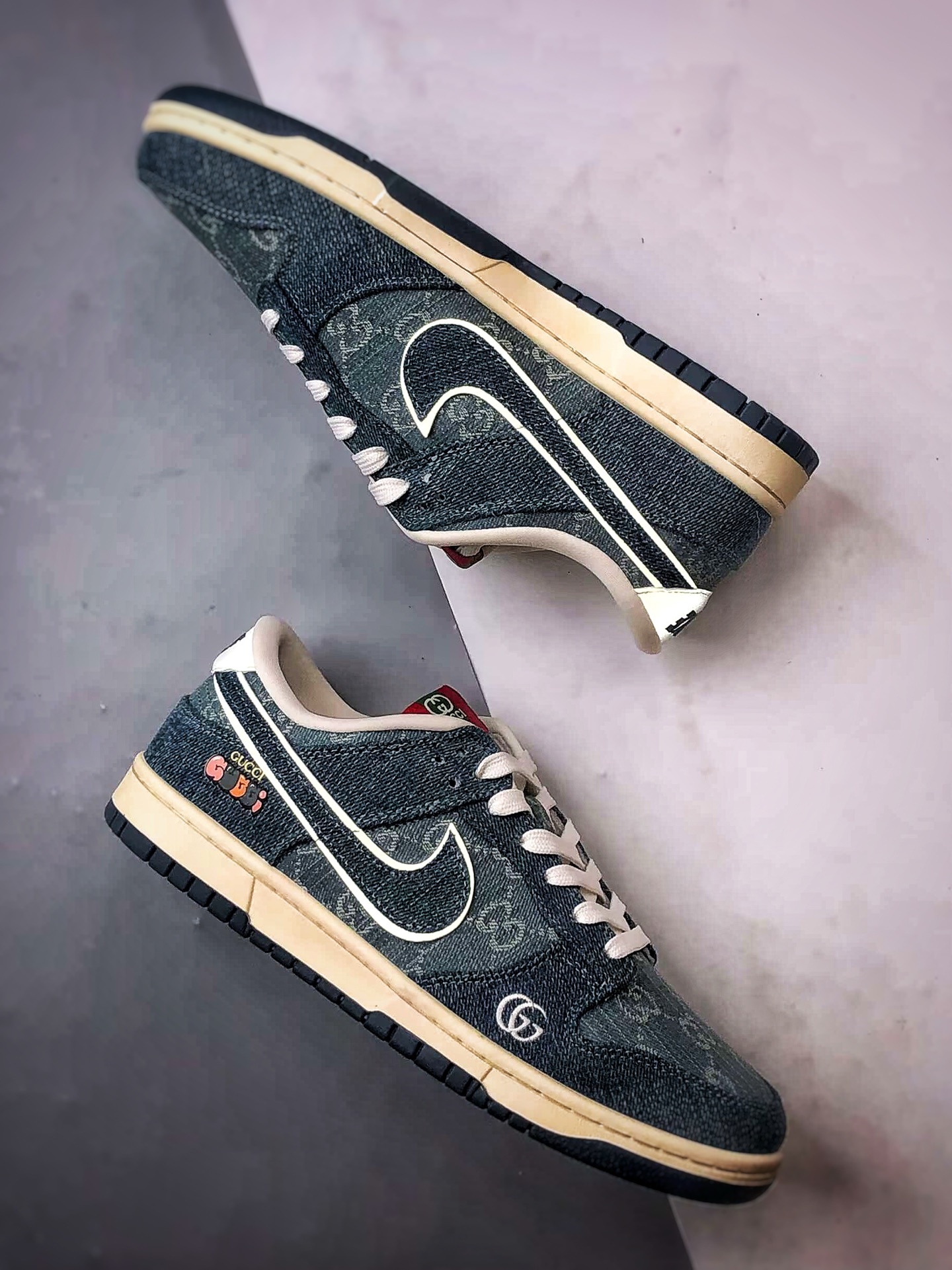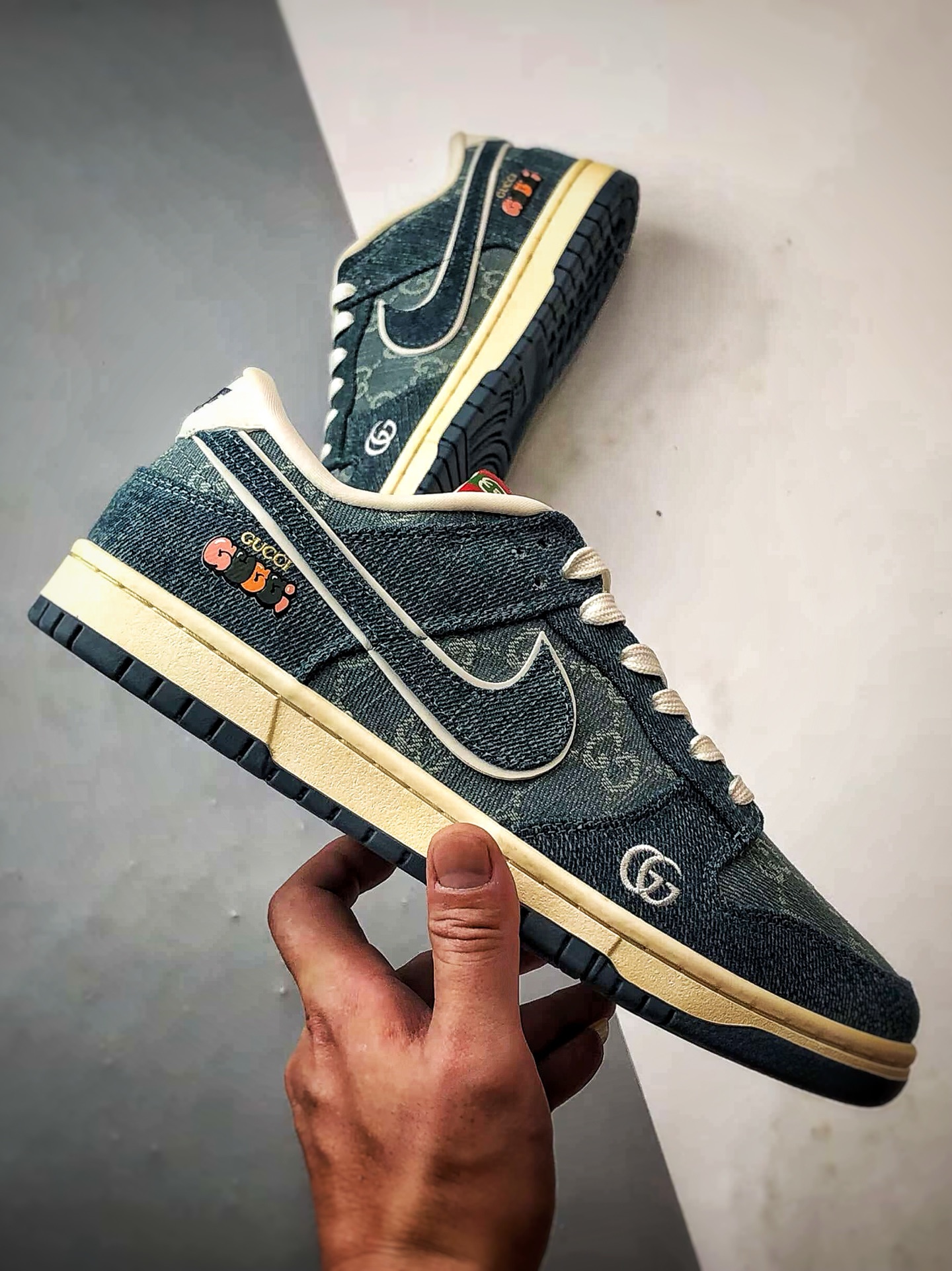 Gucci Print Blue Denim Low-Top Casual Sports Sneakers