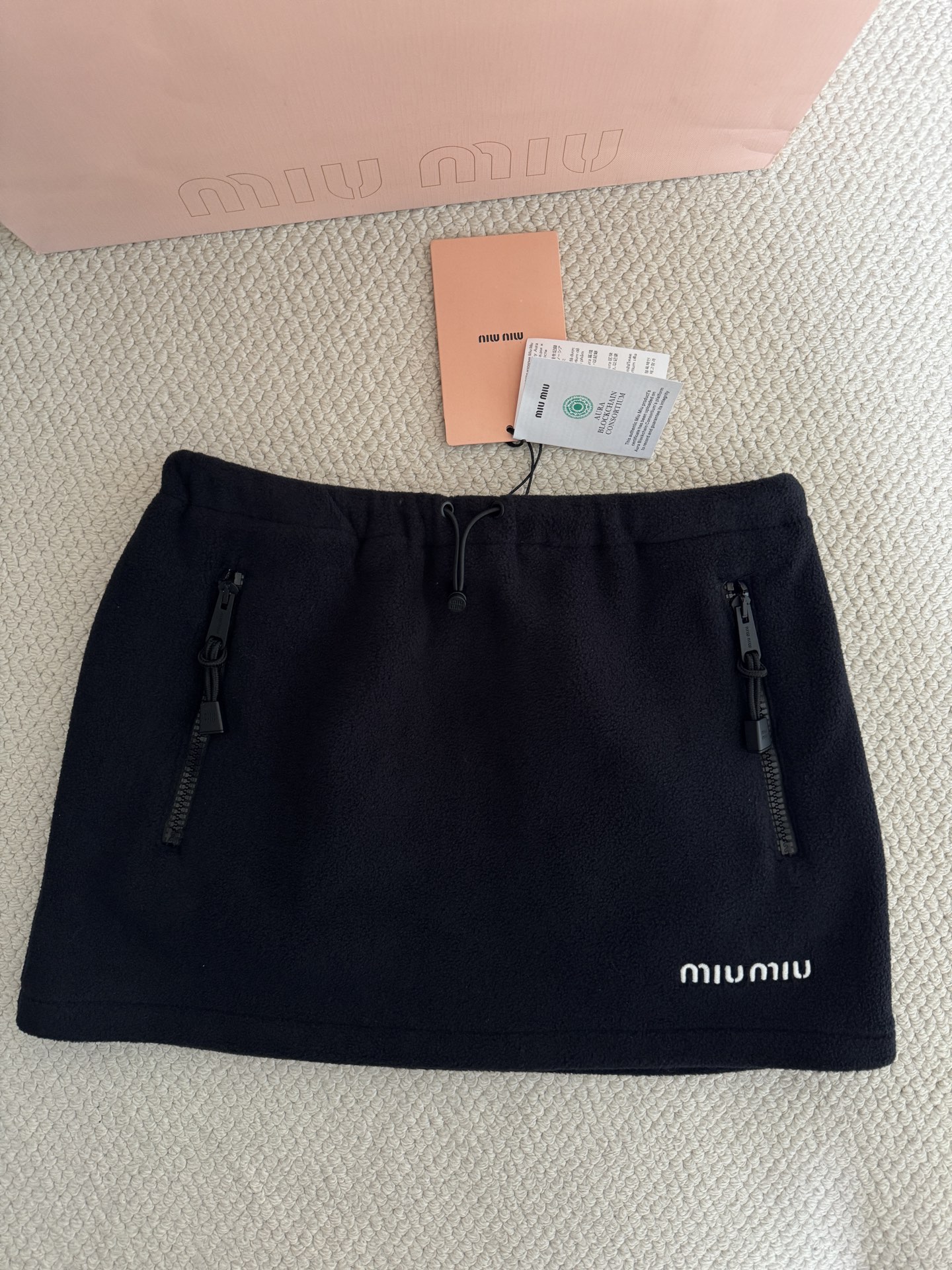 🛒 Miumi* 25FW early autumn new fleece zipper half skirt. Classic and versatile, early autumn's molade color scheme outfit! Y-version custom recycled fiber fleece, surface particles full and fluffy, soft to the touch like clouds ☁️, once you put it on, you won't want to take it off! Fashionable color matching, deep blue healing color scheme, comes with a gentle filter, drawstring elastic waist design, loose and casual, freely adjustable styling, autumn and winter outfits instantly enhance your temperament!