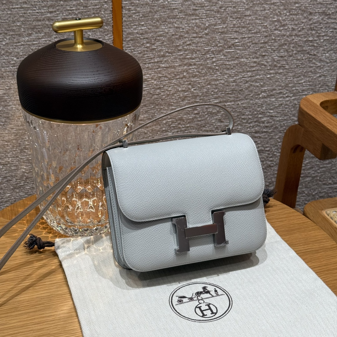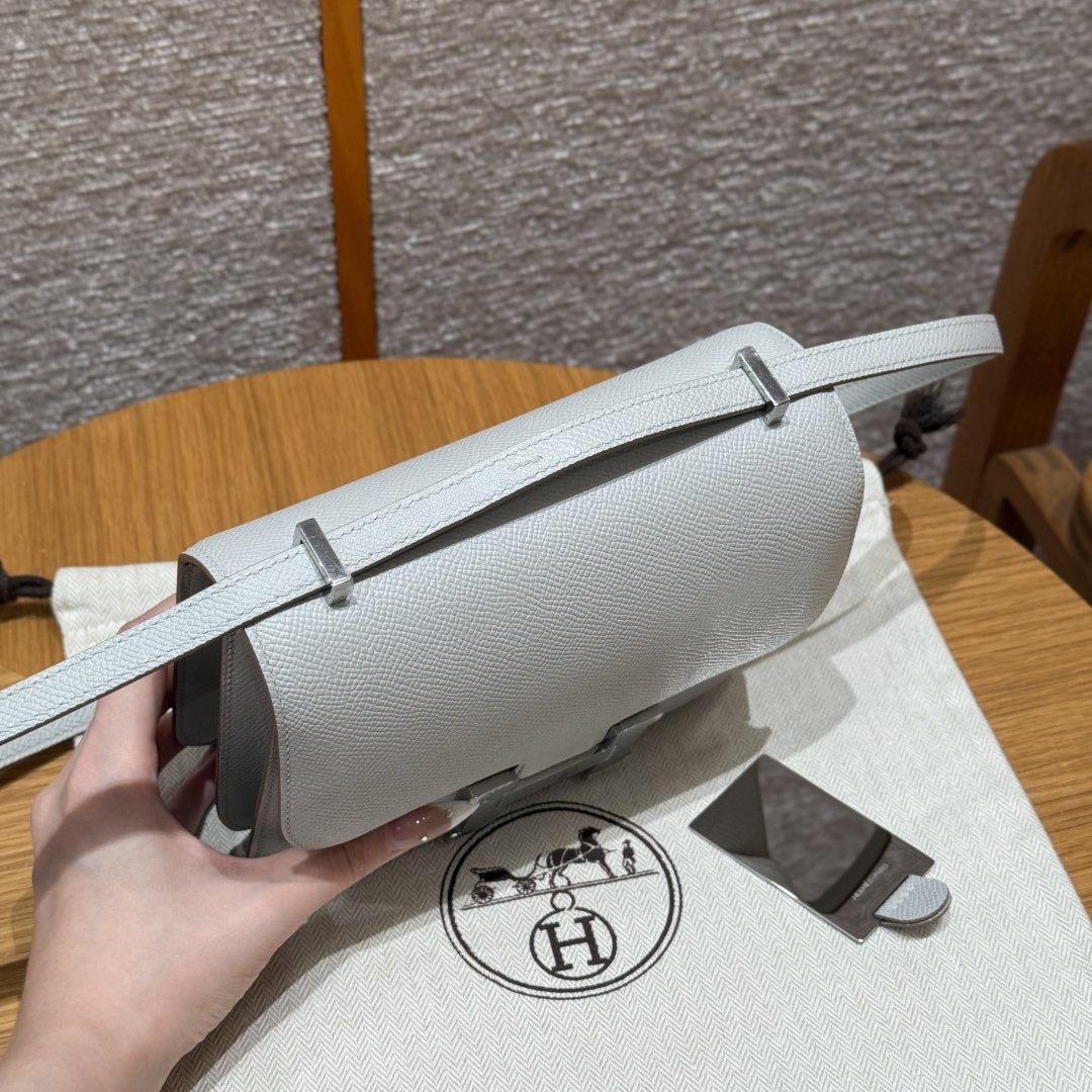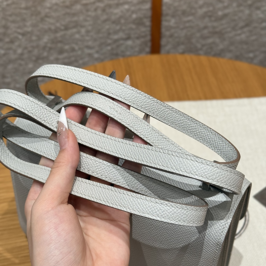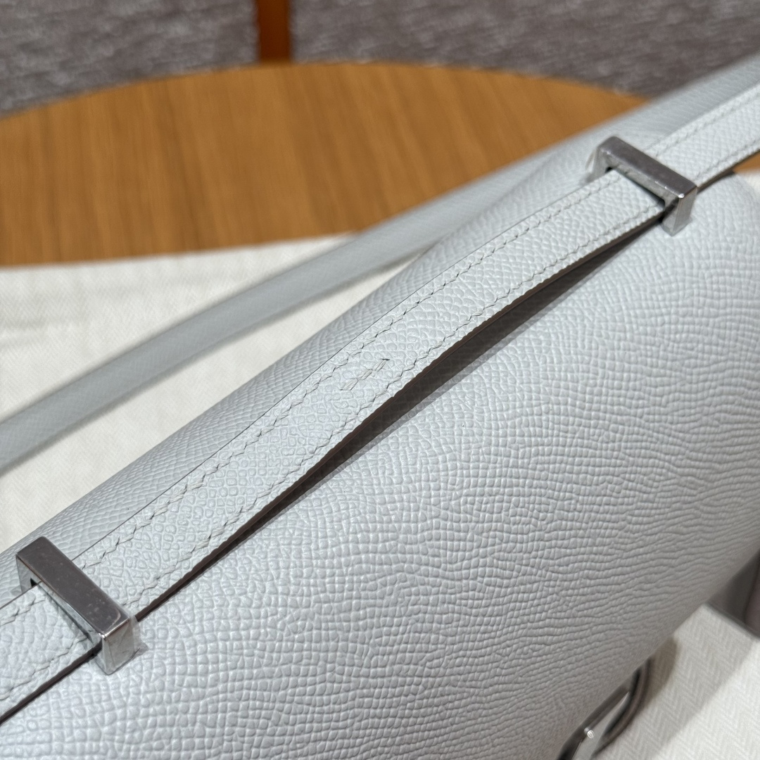 Constance 19cm - Mirror, Pearl Gray, Vein Leather, Genuine French Imported Cowhide, Silver Clasp, Premium Full Handmade Exclusive Customization.