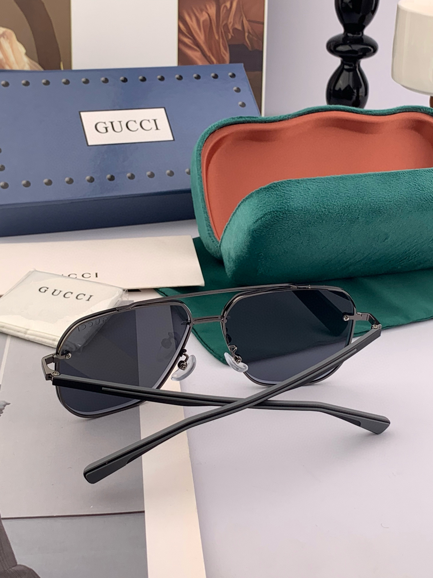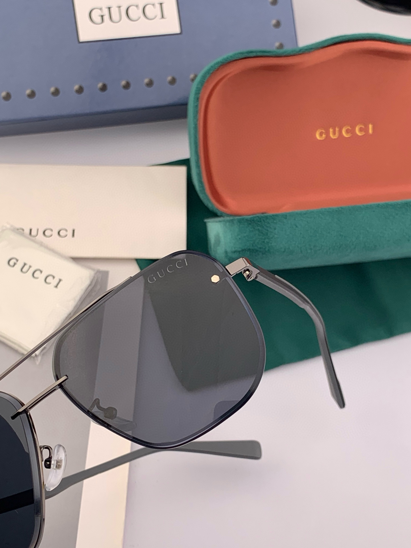 GUCCI Men's Iridescent Aviator Polarized Sunglasses Material: High-definition nylon thickened card slot high-definition polarized lenses Rimless frame Color Model: G1804