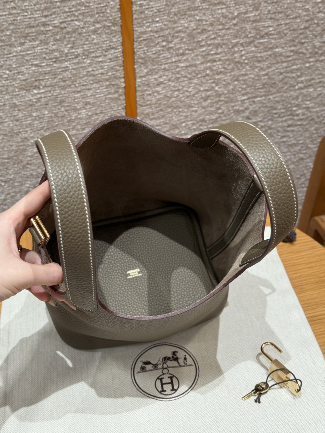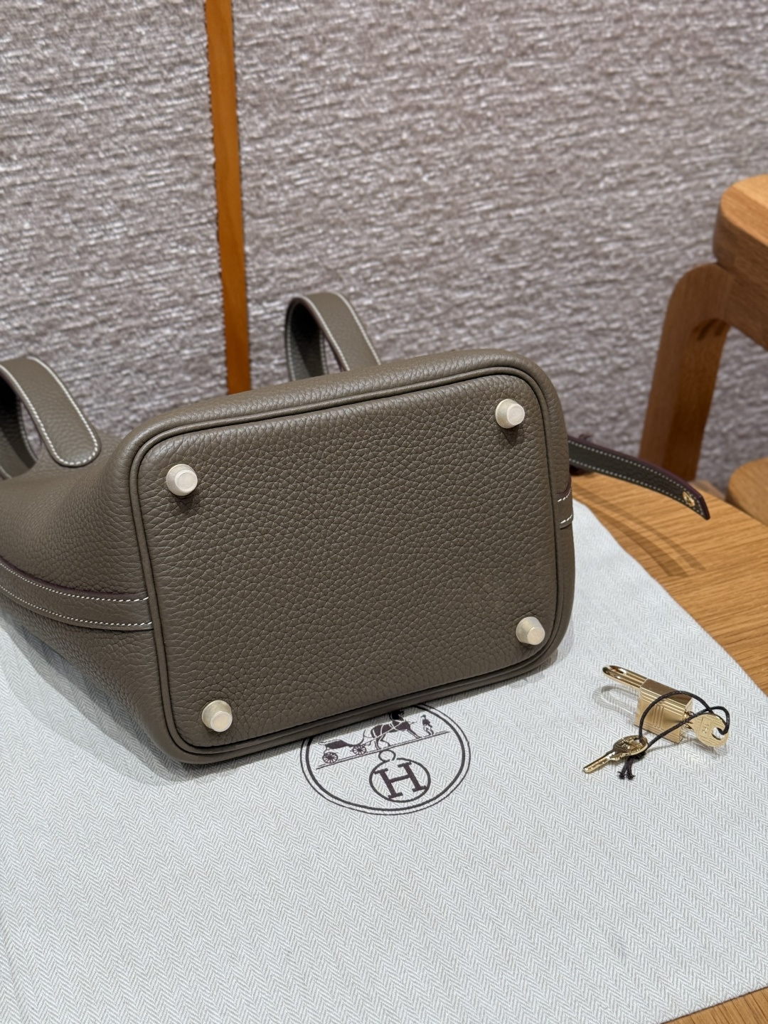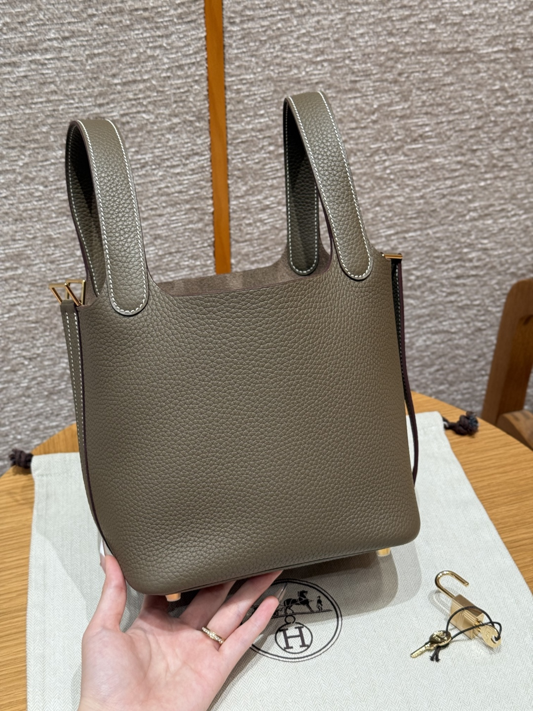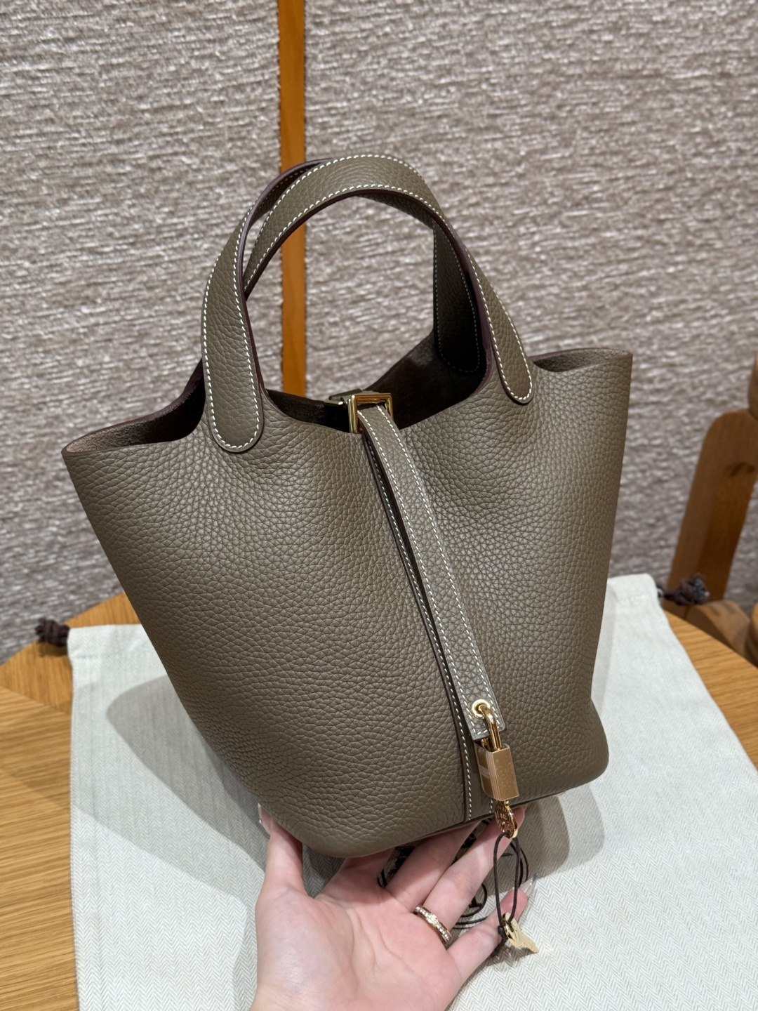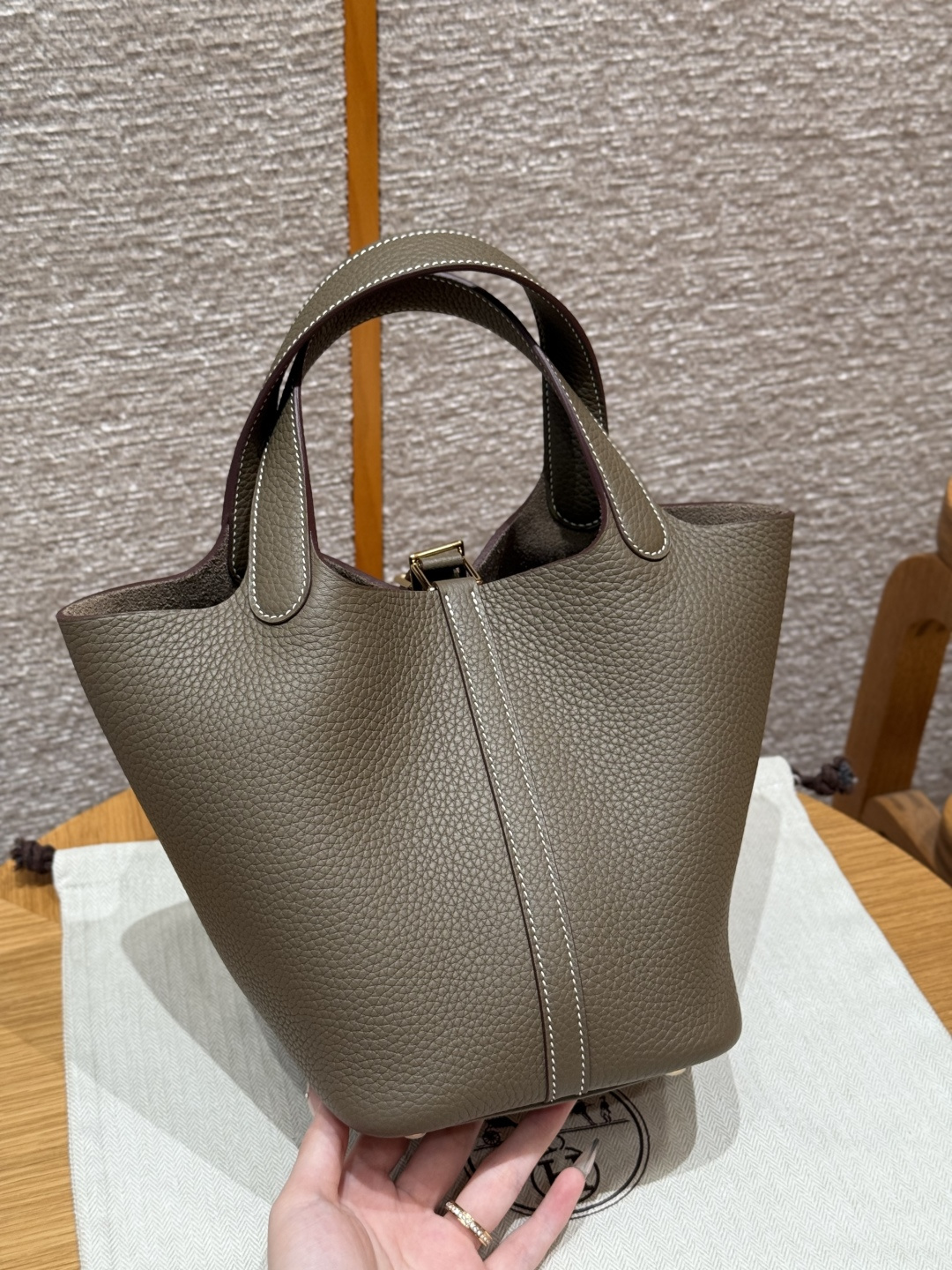 18cm basket, elephant gray, tc leather, original French imported cowhide, gold clasp, high-end fully handmade custom-made