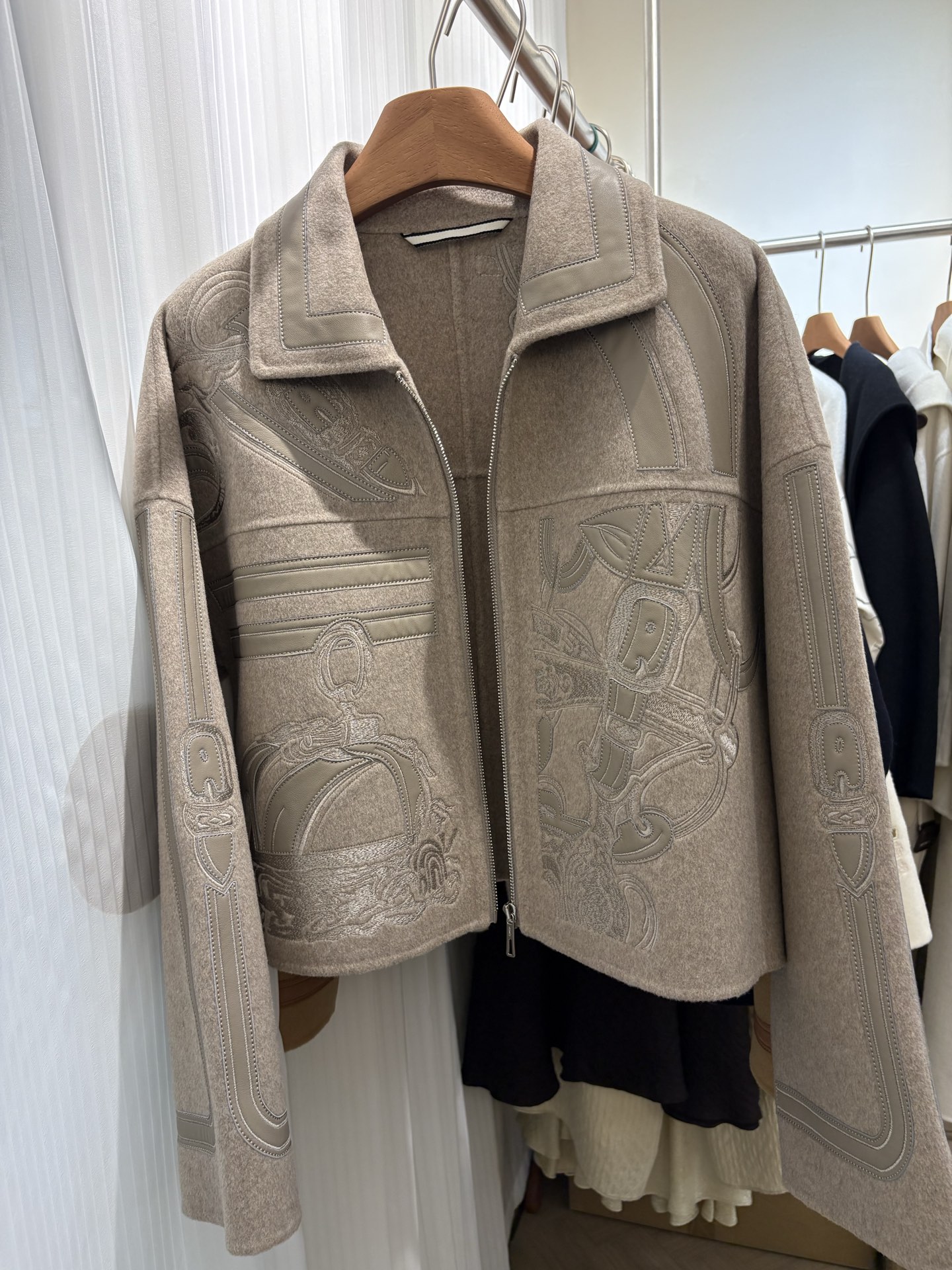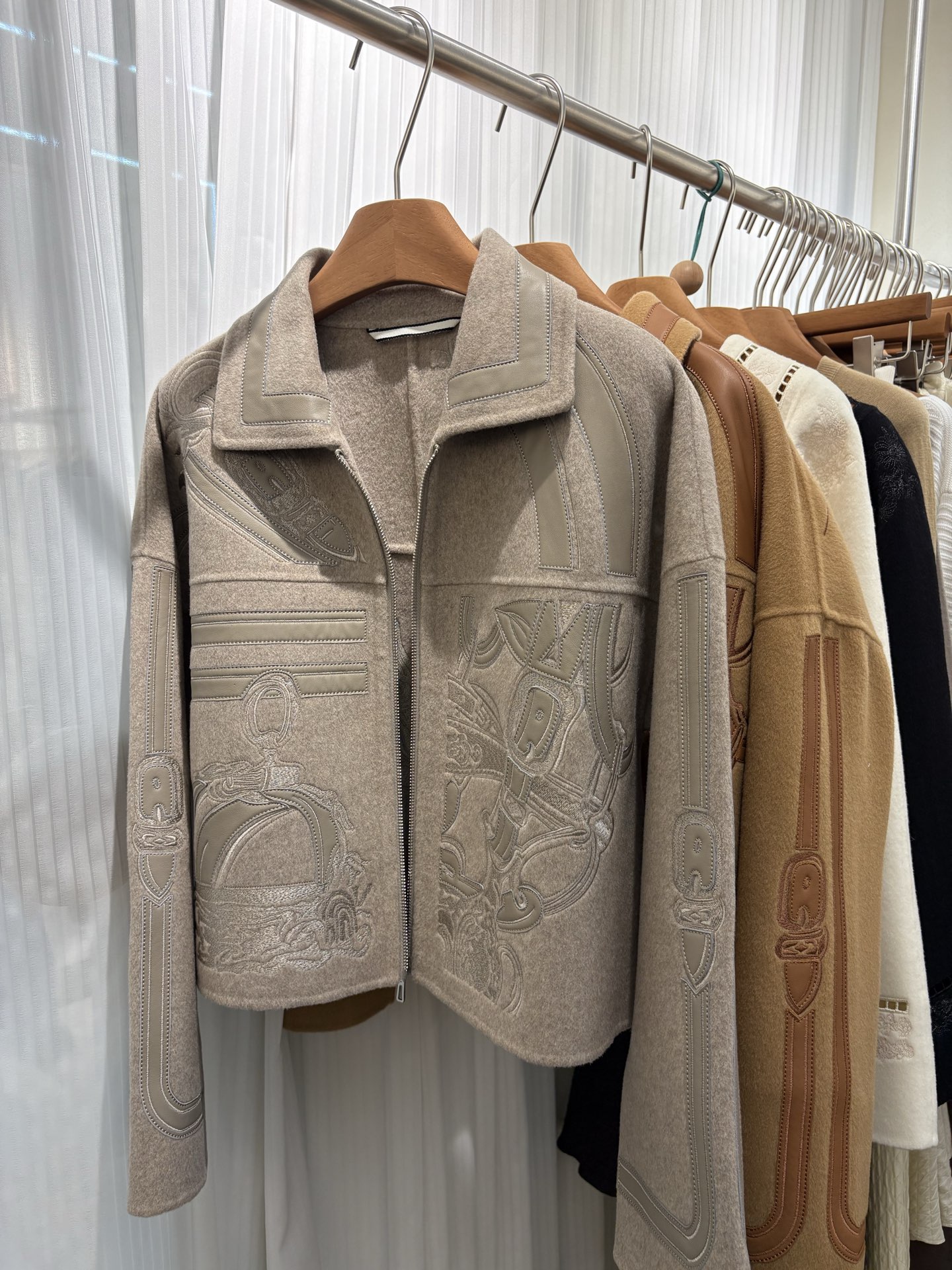 Heavyweight launch H home autumn winter cashmere coat embroidered cashmere mixed with genuine leather jacket full of detail texture sizes 36 38 40