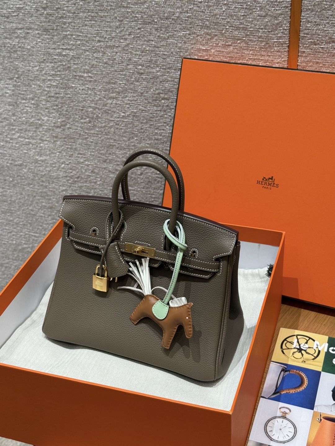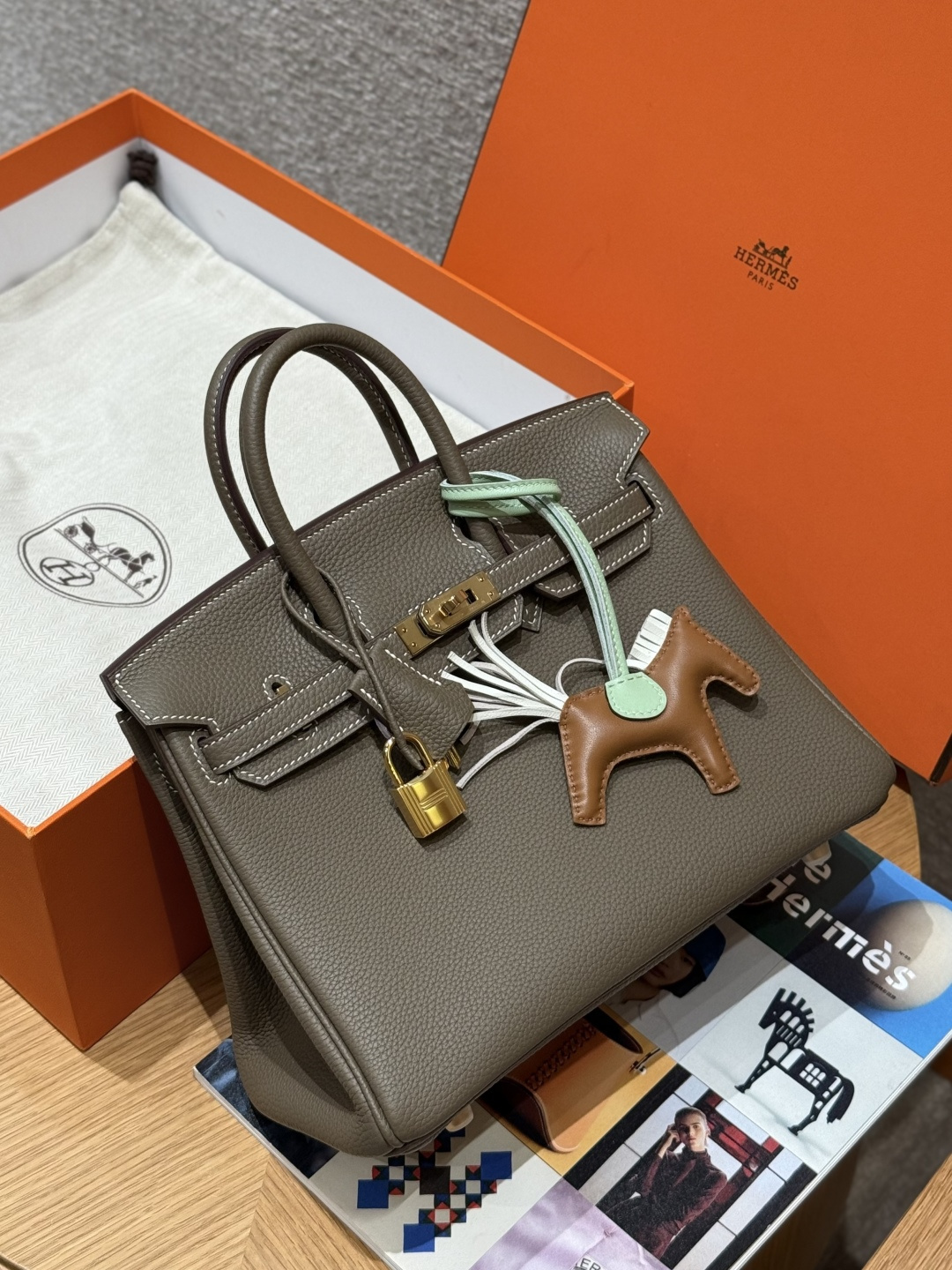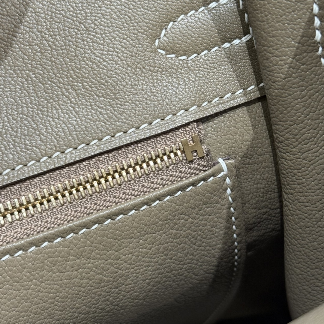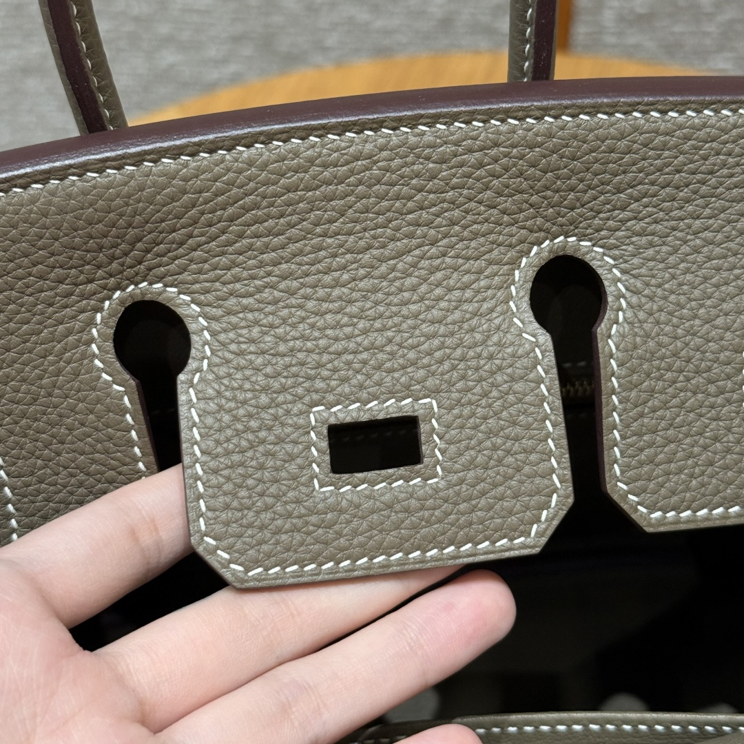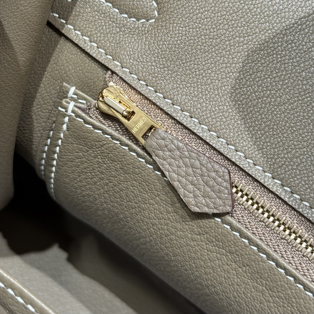Birkin 25cm, Elephant Gray - Inside Stitch, Imported French Togo Calfskin, Gold Hardware, High-End Fully Handcrafted Exclusive Customization.