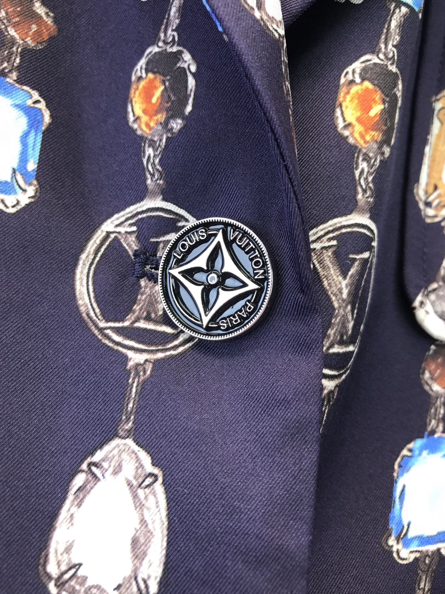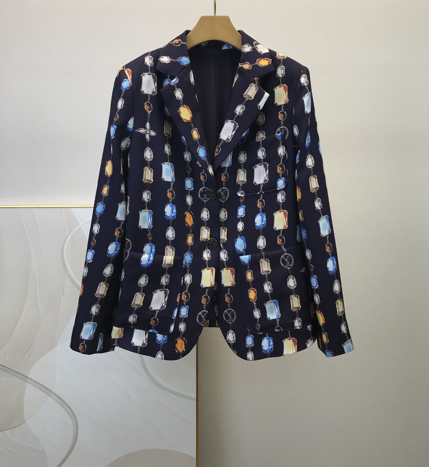 Louis Vuitto* 2025 Early Autumn New Gem Print Silk Blazer, Imported Silk Fabric, Silk Lining, Molded Buttons, Accurate Print Craftsmanship, Counter Version, High Quality, Ready Stock! Sizes: 36 38 40 42