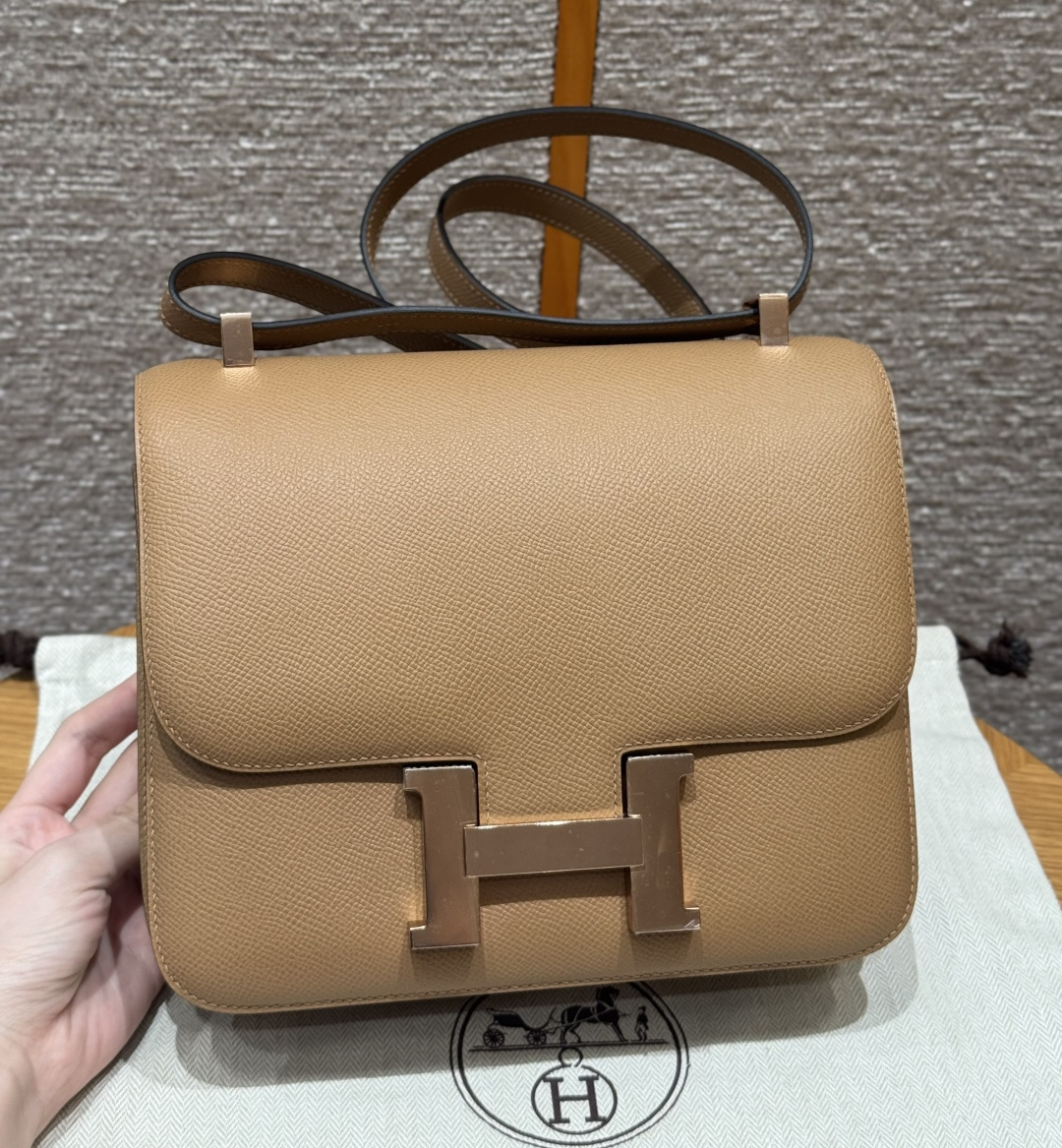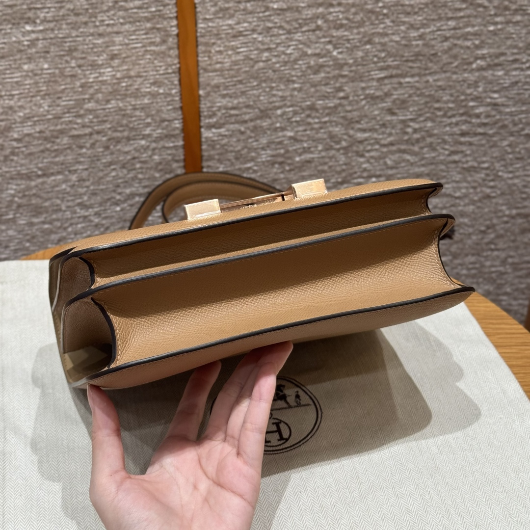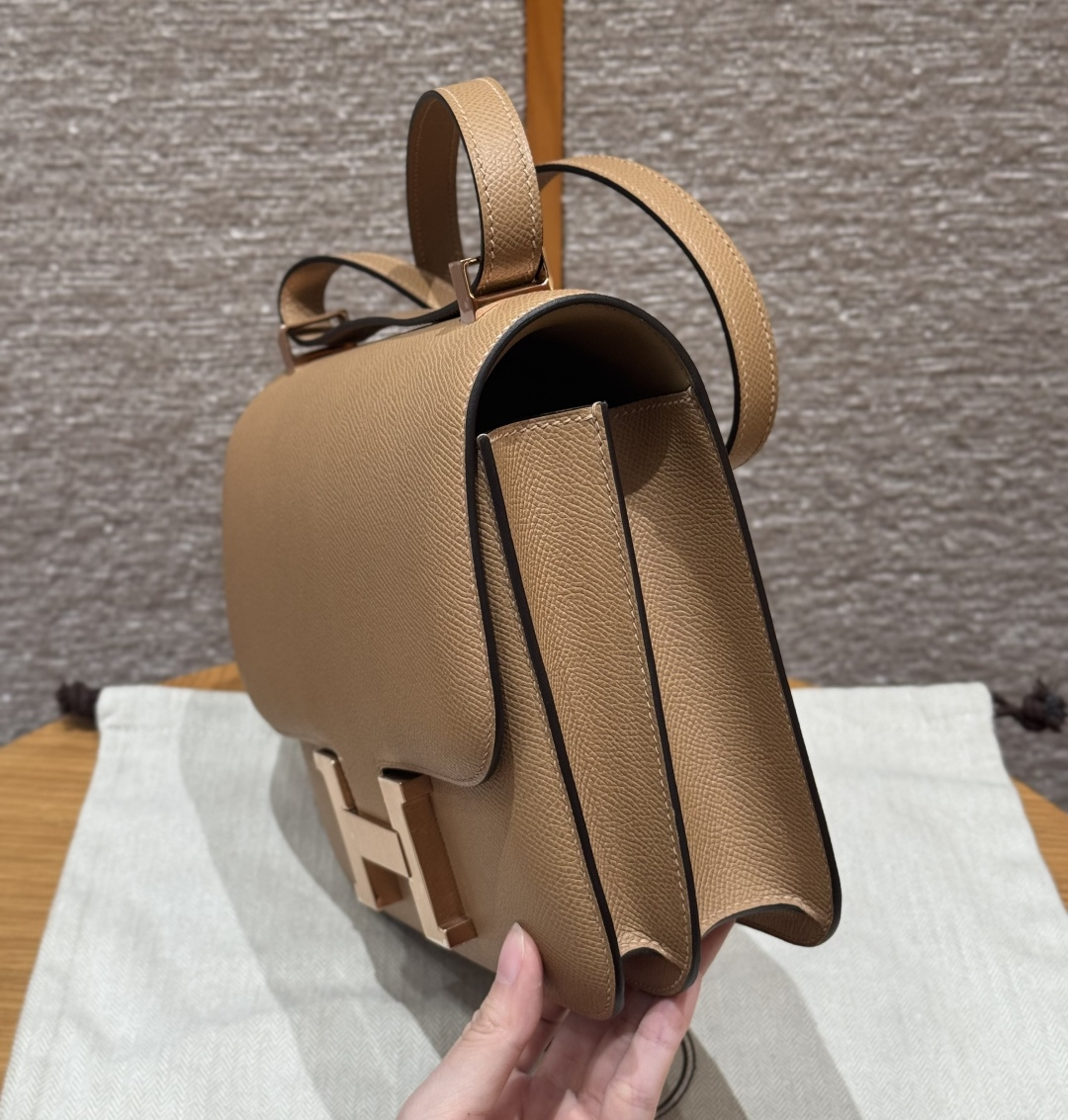Constance 24cm, Chai color, French imported original factory vealer calfskin, rose gold buckle, high-end fully handcrafted exclusive custom.