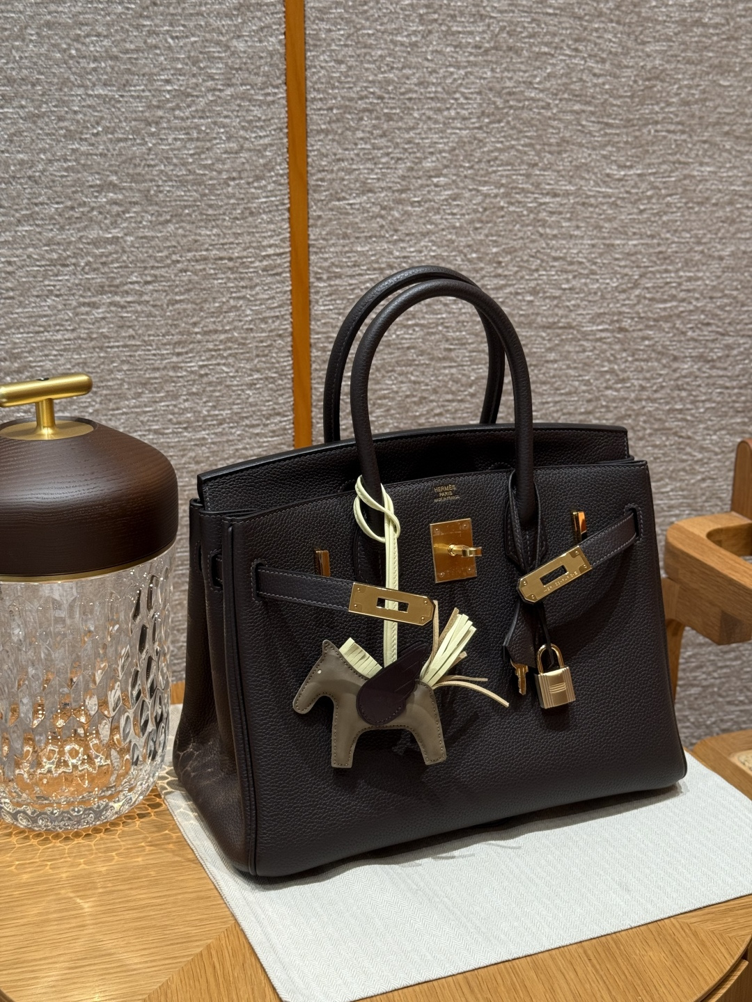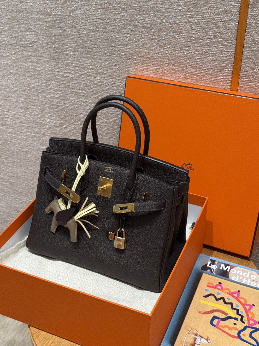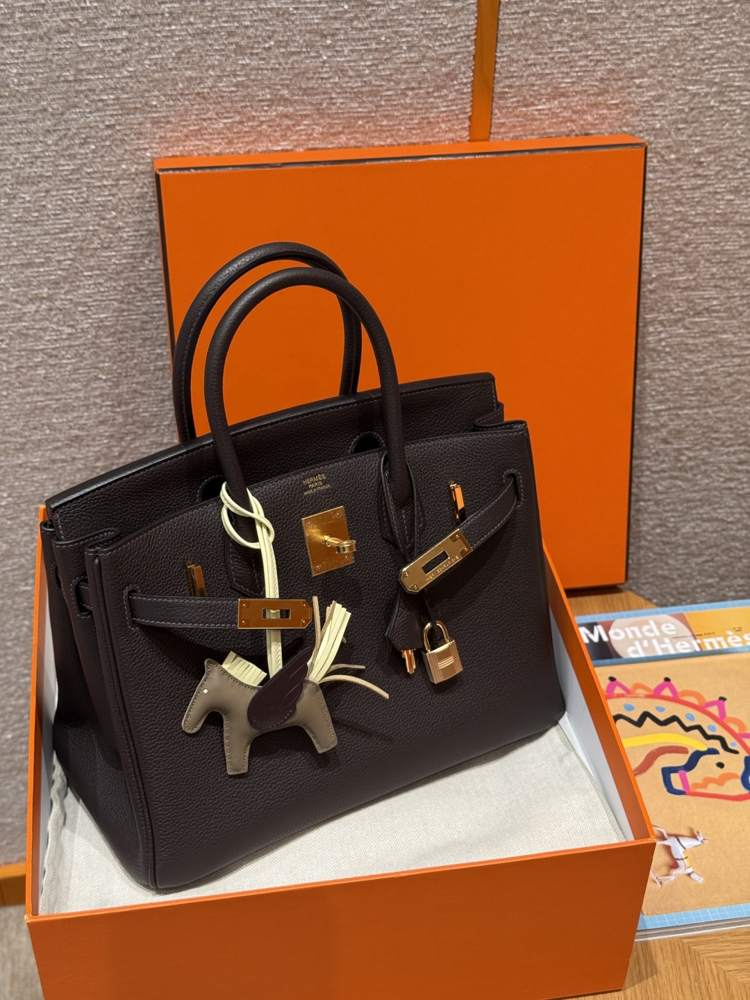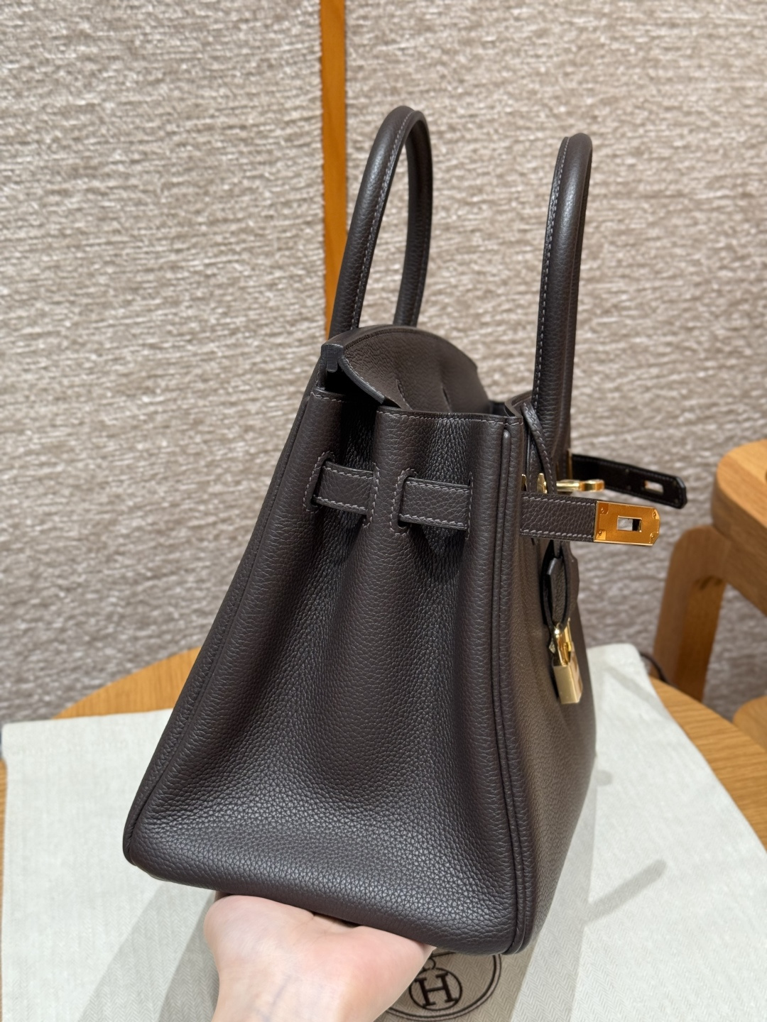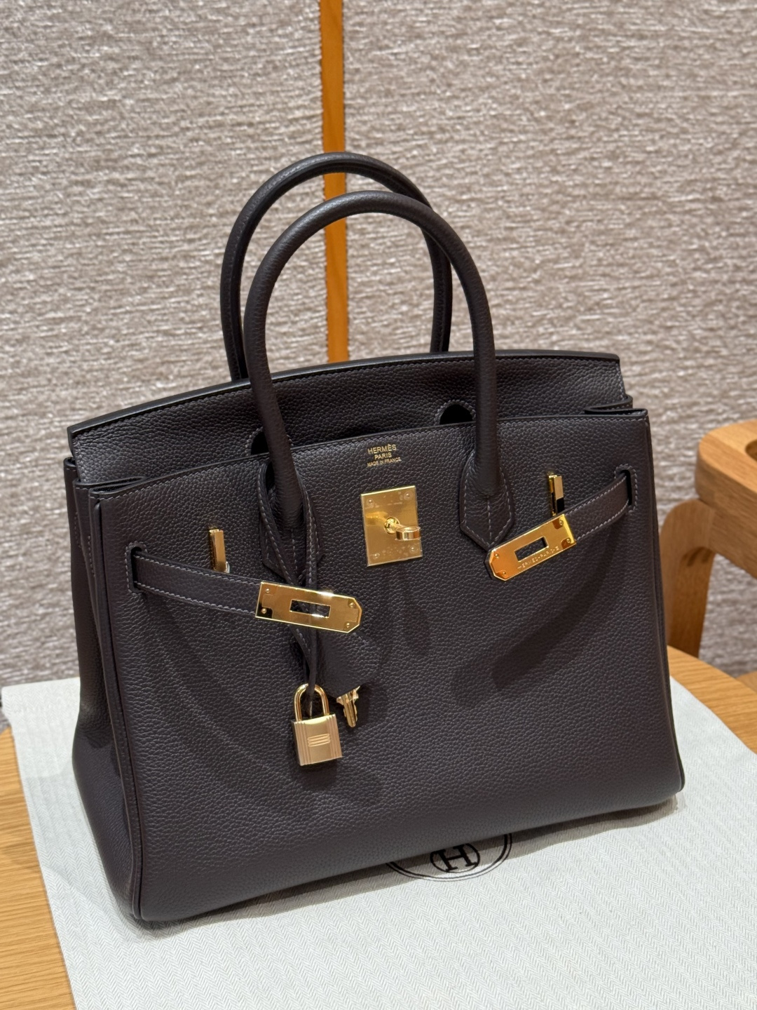 Birkin 30cm, ebony color, Togo leather, original French imported cowhide, gold hardware, premium fully handmade custom.