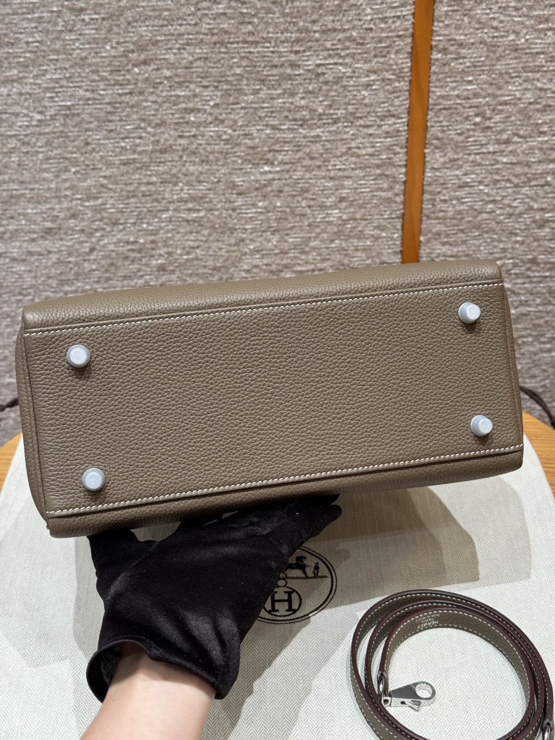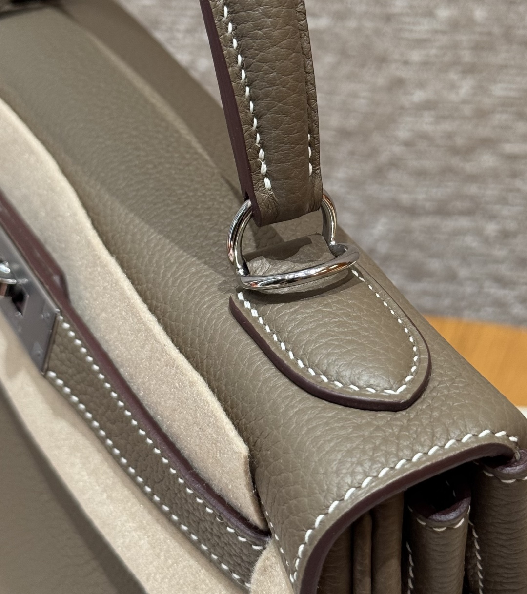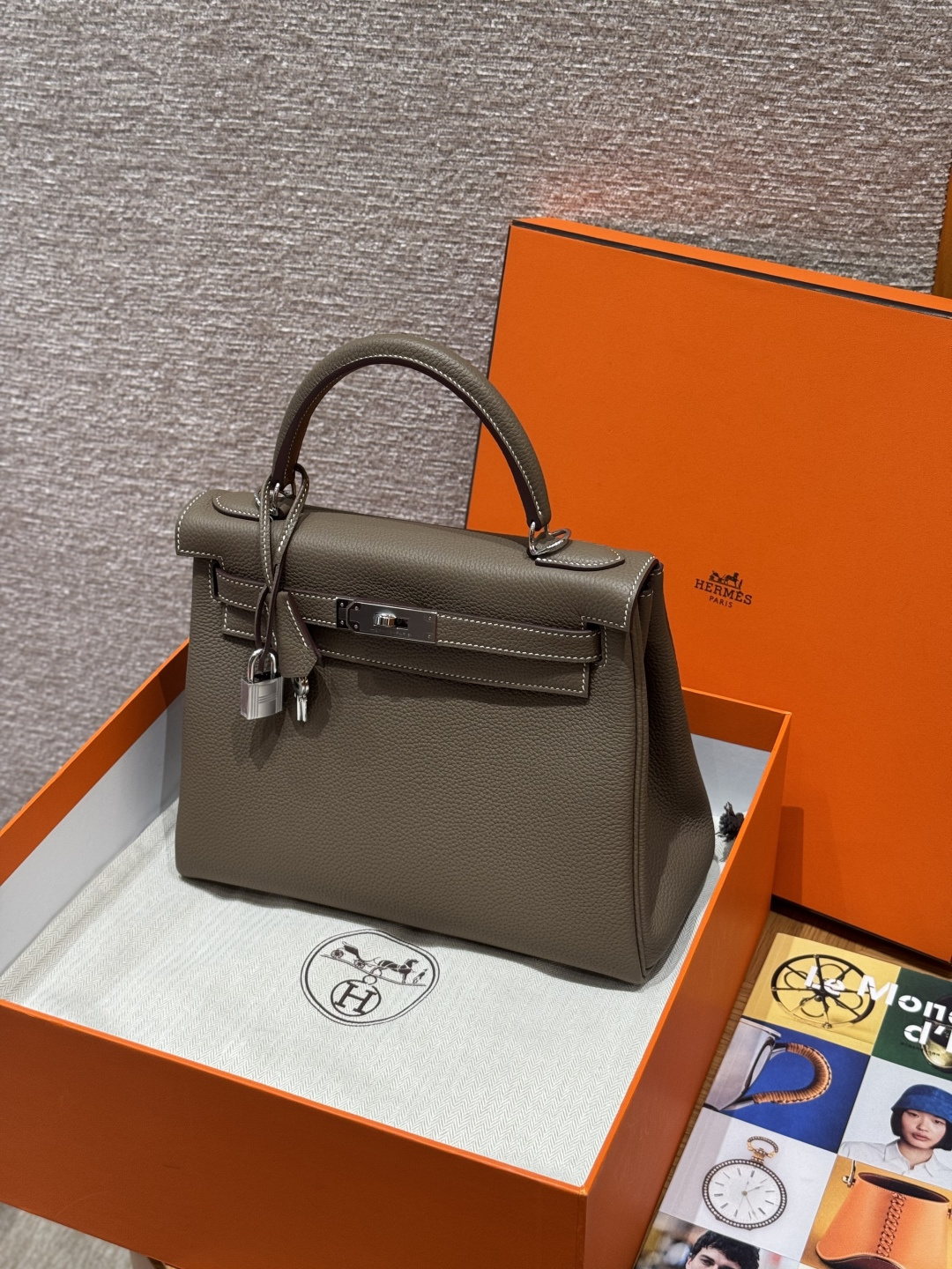 Kelly 28, elephant grey, French imported cowhide, silver clasp, advanced fully handcrafted exclusive customization.