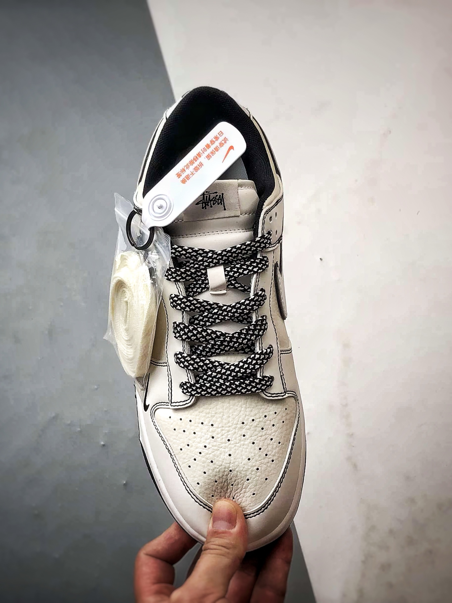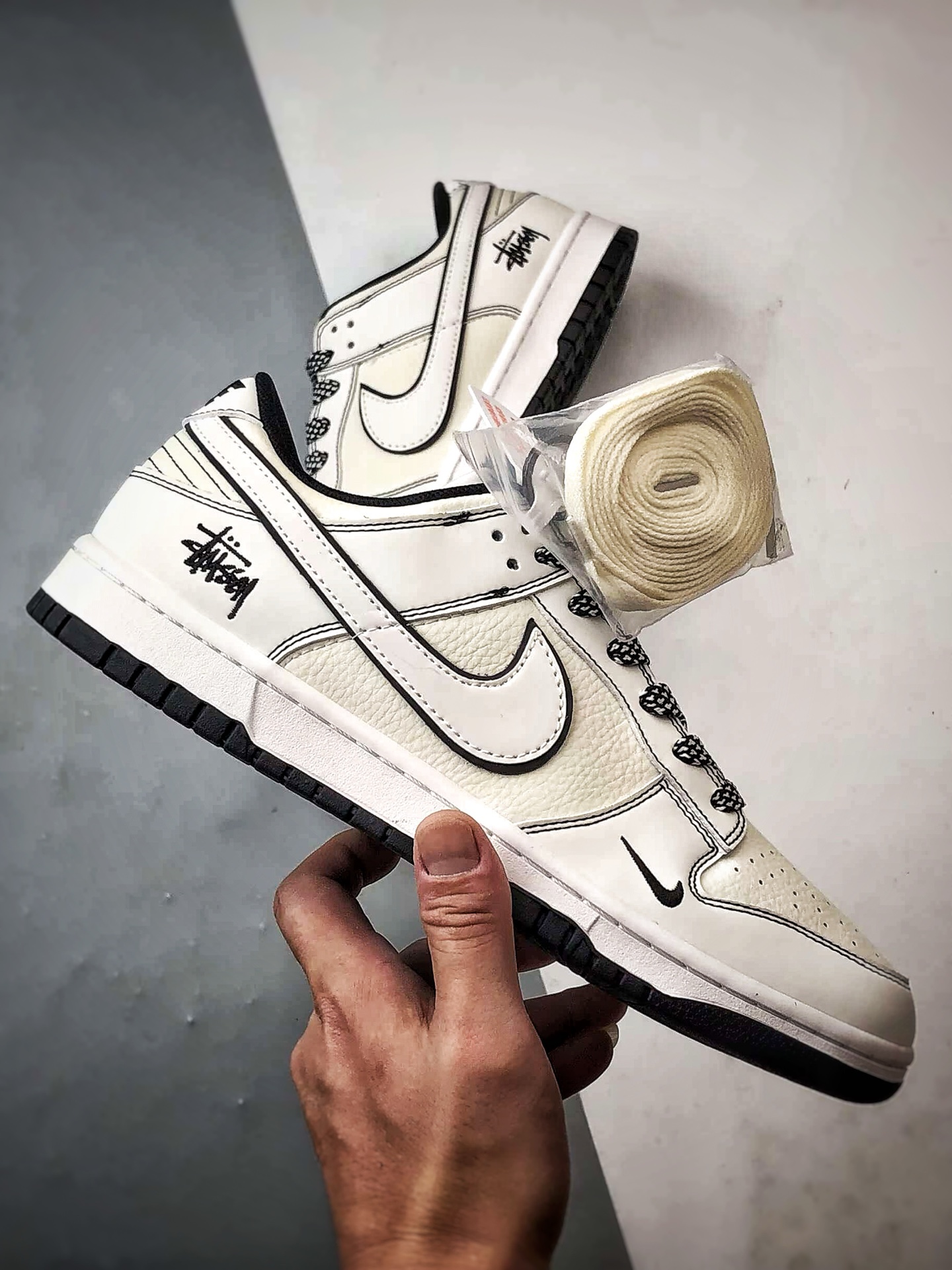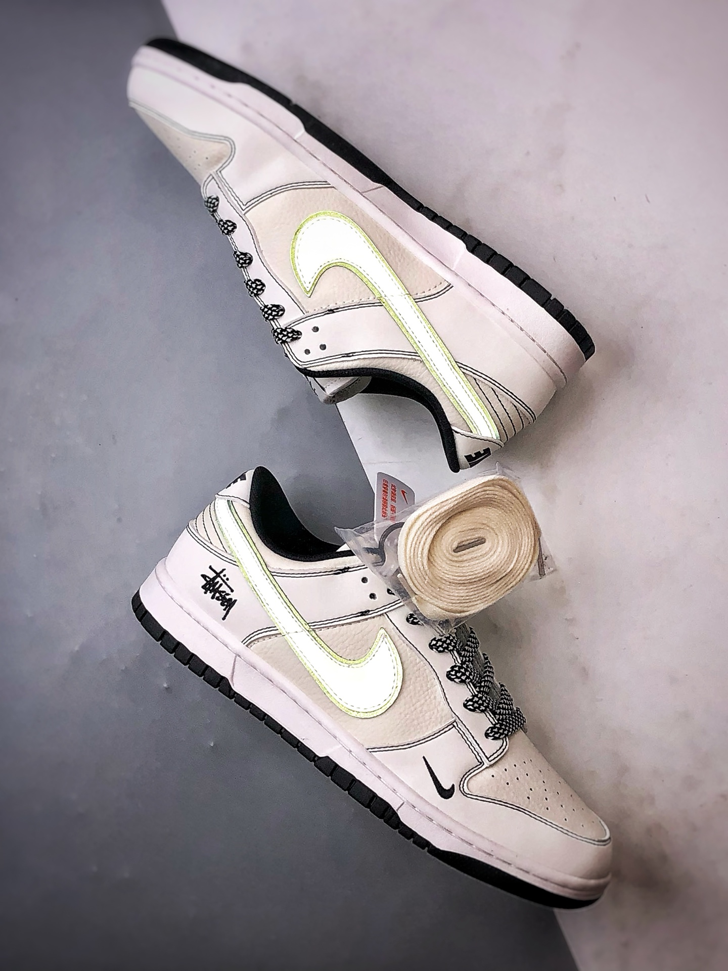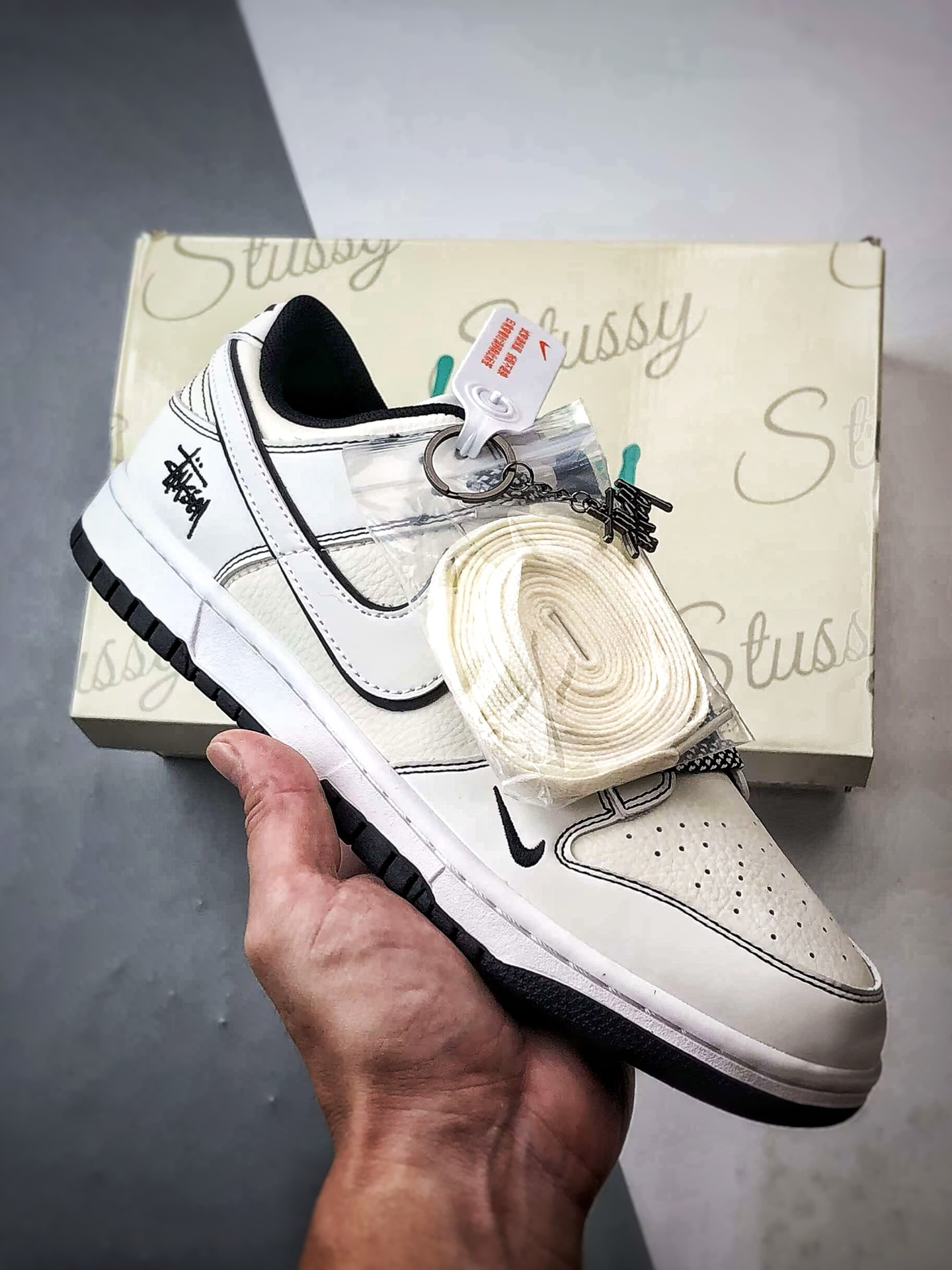 Stussy White and Black Small Swoosh Low-Top Casual Sports Sneakers