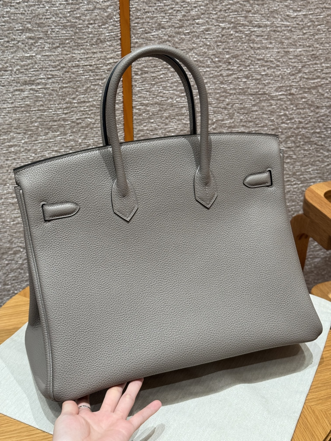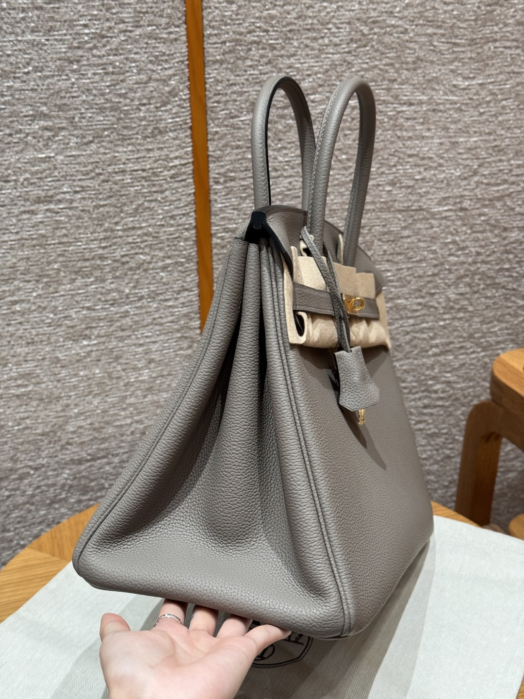 Platinum 35cm, asphalt gray, imported cowhide from France, gold buckle, advanced full manual exclusive customization.