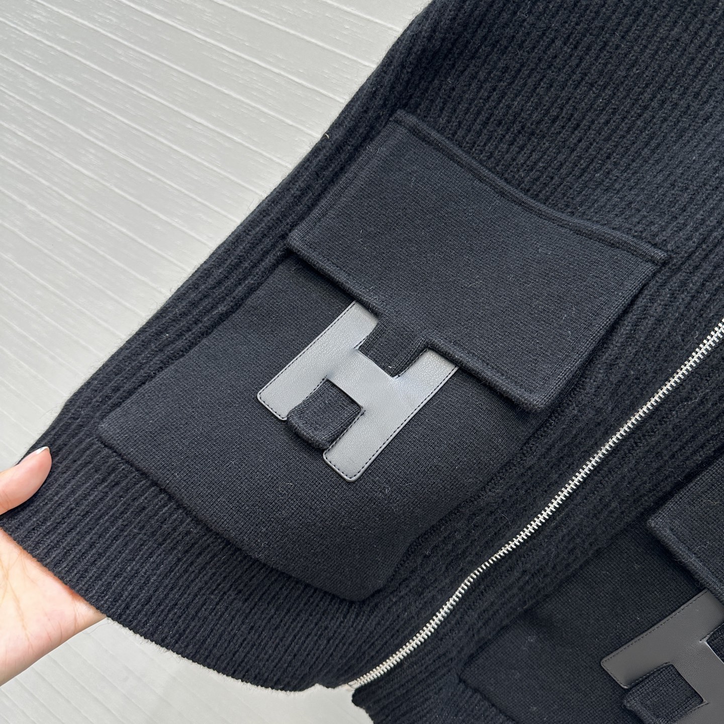 Exclusive First Release Original Quality, H High-Intelligence Casual Wear Mid-Length Cashmere Knit Zipper Jacket! H Buckle with Leather Patch Pocket Design, Swiss Weaving Technique, Simple and Elegant! Classic Loose Fit, Flattering and Versatile! Stylish and Elegant, Highly Recommended Must-Have Item! Perfect Craftsmanship and Quality, See Details. Now Available in Two Colors, S-L Sizes. Large Orders Welcome! S Size, Dropped Shoulder, Bust 110, Length 64.