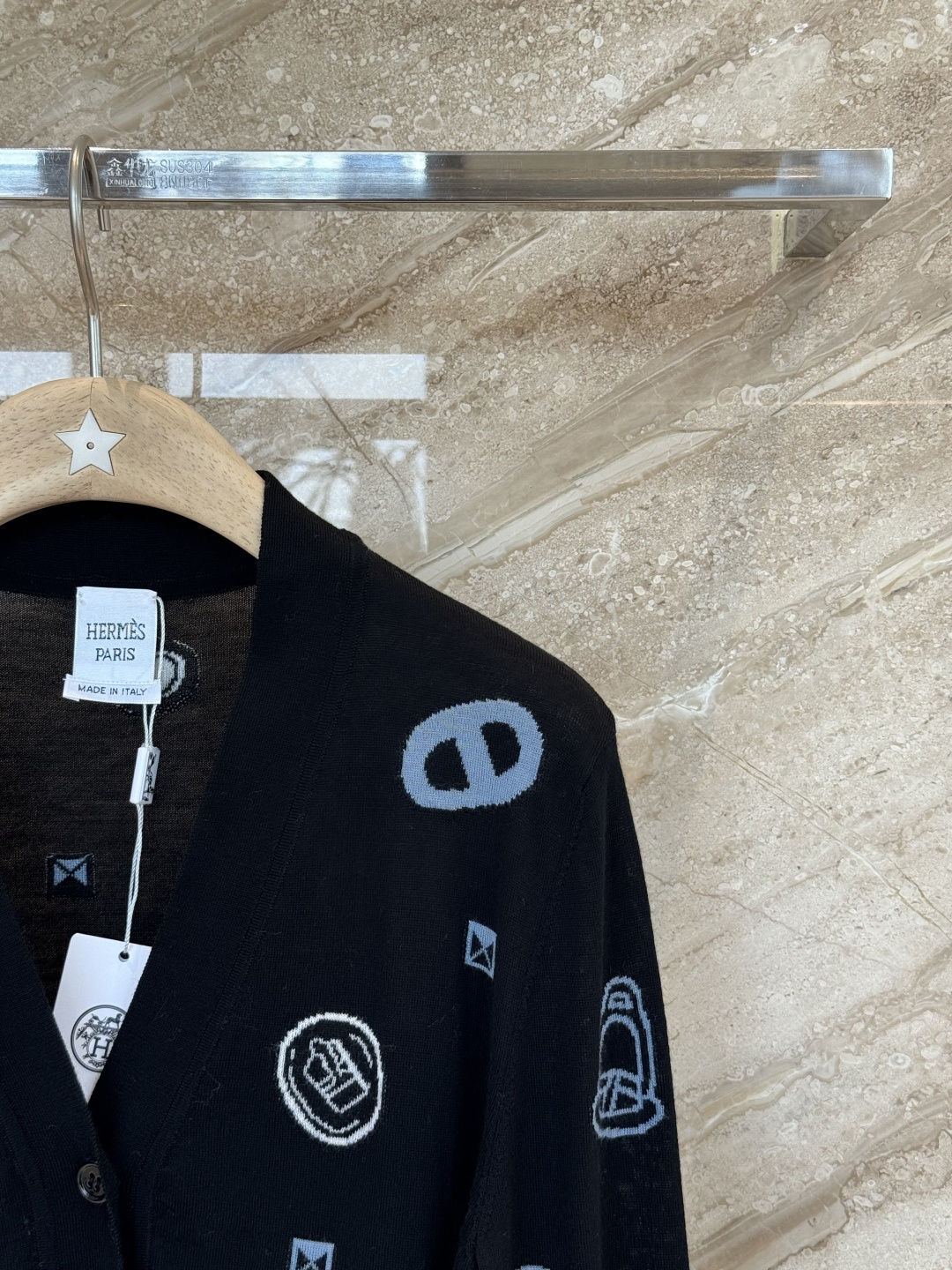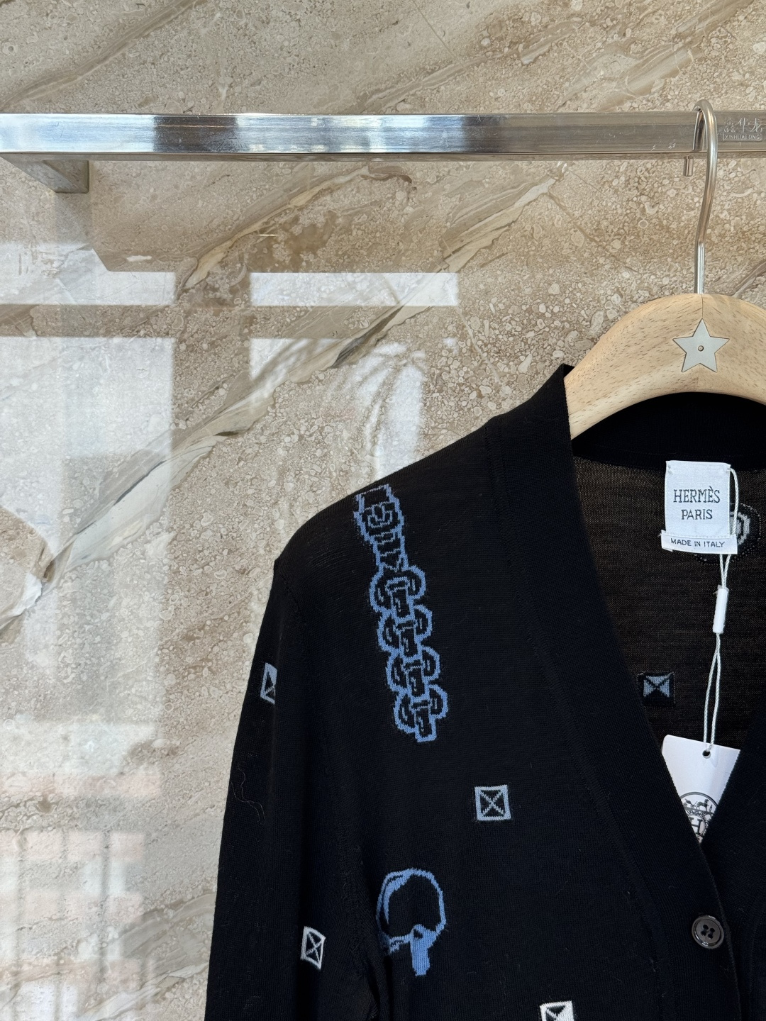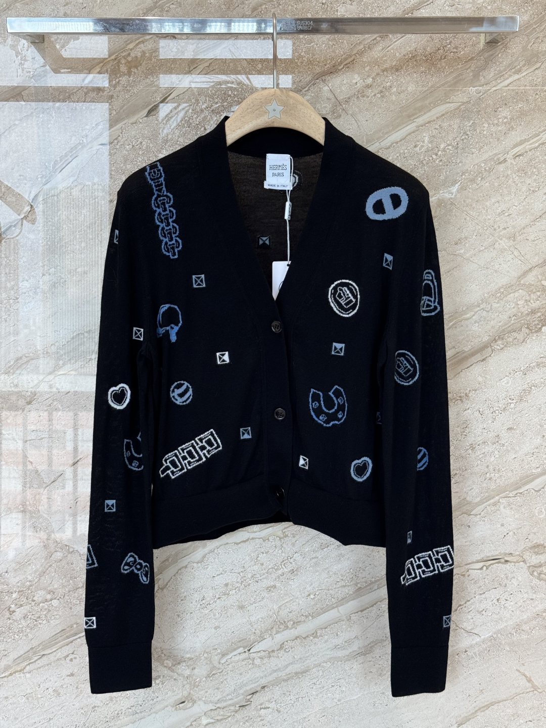 This cardigan is from the Hermès Tablier Sellier collection, featuring a black main tone + brand logo jacquard, understated yet recognizable. Wool blend material, soft and comfortable, perfect for autumn and winter wear! Short design + cuff pockets, practical and stylish, pairs well with high-waisted pants or skirts~ Suitable for daily commuting and casual occasions, it's a versatile staple in the wardrobe!