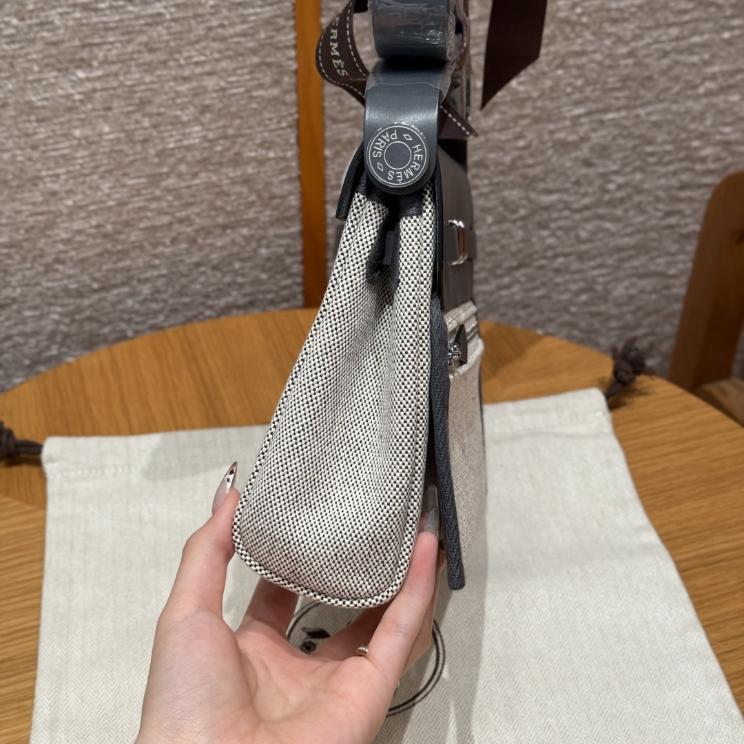Mini herbag, light beige/glacier blue/slate gray, canvas and cowhide shoulder bag, silver buckle, high-end fully handcrafted exclusive custom.