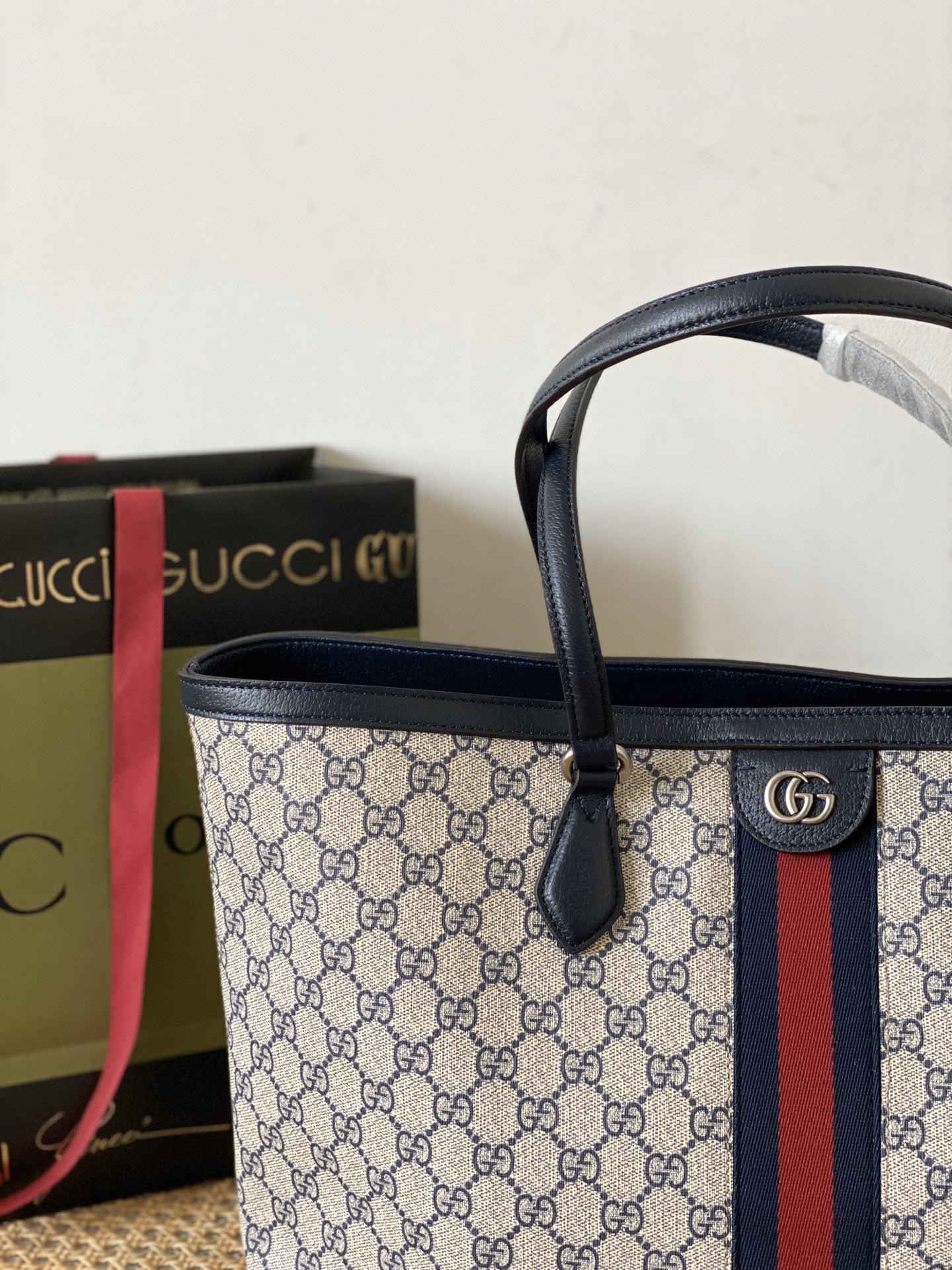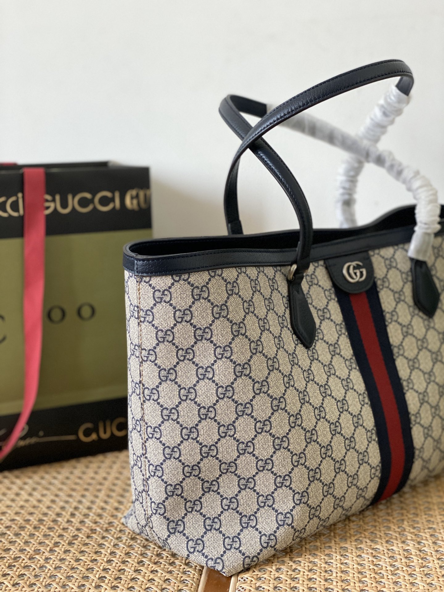 | GG Jacquard Navy Blue Tote Shopping Bag