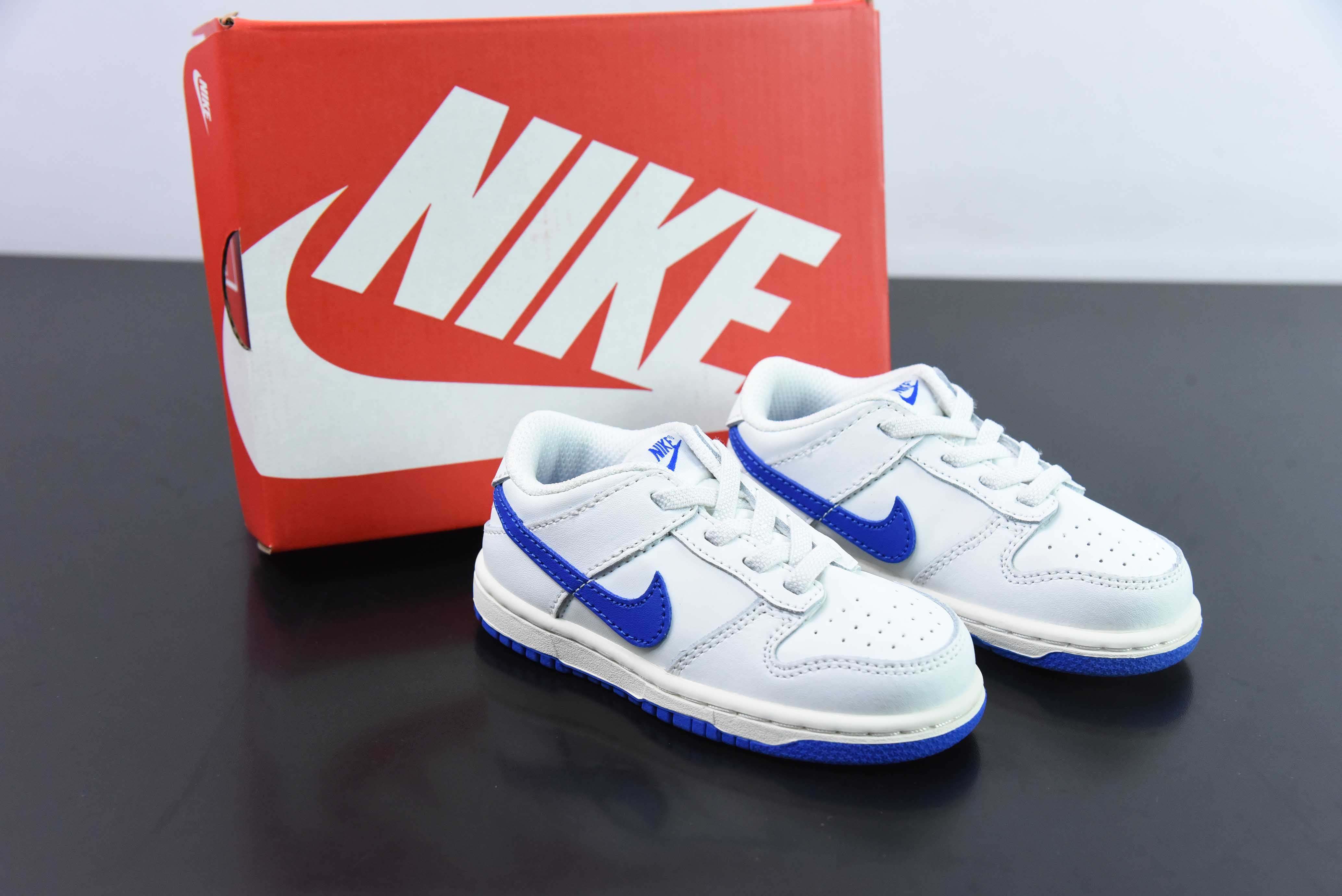 RLA29139829 NK Dunk Low White Blue SB Low-Top Casual Children's Shoes Product Code: DH9761-105 Sizes: 22-35